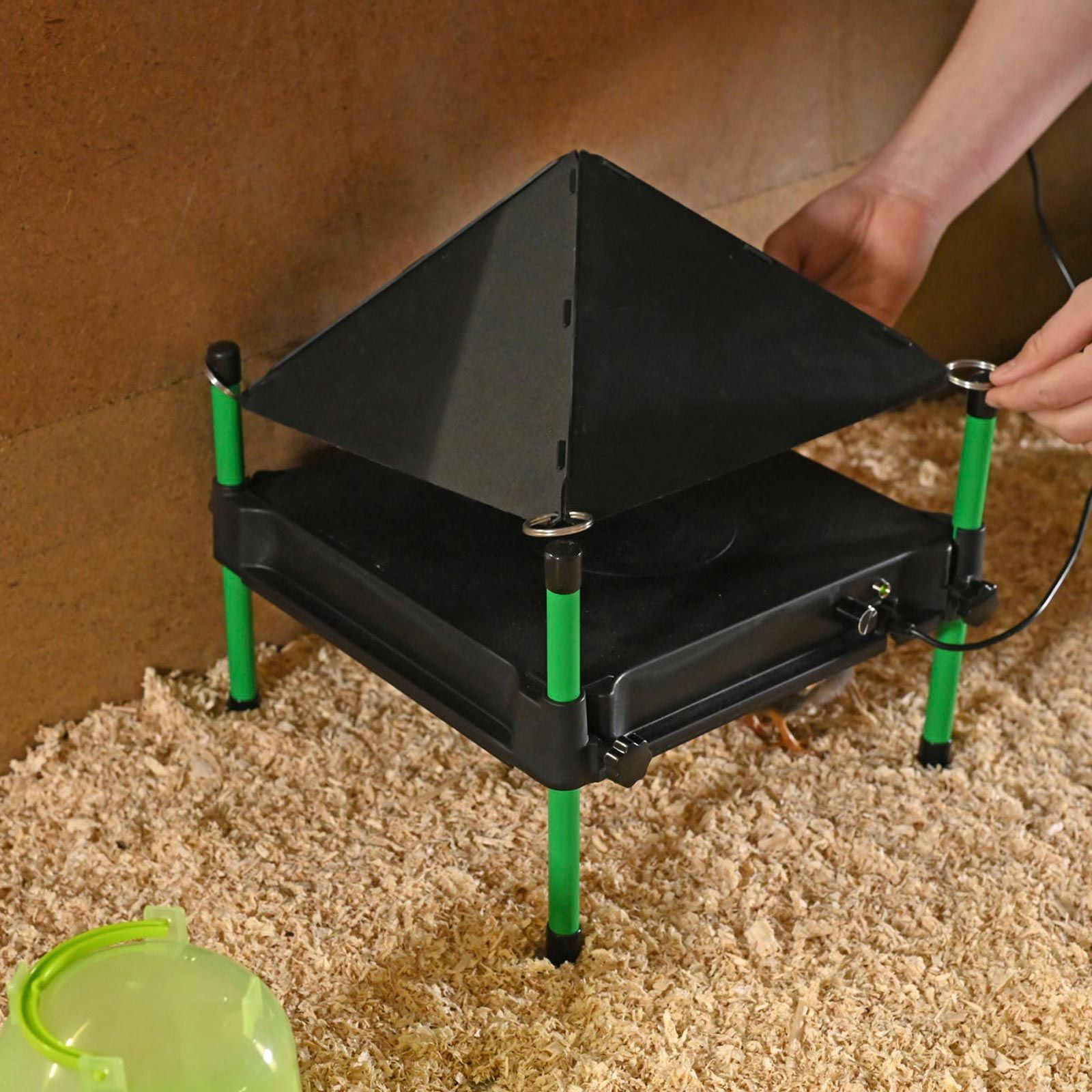 Placă de încălzire CosyHeat pentru pui, inclusiv termostat 25 W, 30 x 30 cm Înlocuitorul ideal al găinii pentru creșterea puilor: căldură confortabilă pentru până la 25 de pui cu placa de încălzire CosyHeat. După eclozare, puii au o nevoie specială de căldură. În perioada de creștere naturală, aceștia se încălzesc sub penele găinii-mamă (mama găină). Căldura se acumulează acolo, iar puii se bucură de o temperatură confortabilă. Placa noastră de încălzire CosyHeat funcționează exact așa: placa de încălzire radiază căldura în jos, creând o pernă de căldură. Puii clocesc sub placa de încălzire și se odihnesc în căldura confortabilă. La fel ca penele mamei găină, puii se pot cuibări lângă placa de încălzire fără pericol de supraîncălzire. Cu ajutorul unui control rotativ integrat , temperatura poate fi ajustată în mod continuu la cerințele de căldură ale puilor. Termostatul, care este de asemenea integrat, asigură o temperatură constantă sub placă. Acesta se încălzește până când se atinge temperatura dorită și o menține. Deoarece placa de încălzire nu se încălzește în permanență, aceasta economisește semnificativ mai multă energie și, prin urmare, este mai economică decât încălzitoarele radiante convenționale. Pentru ca nu doar găinile să se poată bucura de căldura confortabilă, placa de încălzire CosyHeat are picioare reglabile în înălțime. Astfel, este ușor de ajustat emițătorul de căldură la dimensiunea puilor. De asemenea, este ideal pentru puii de prepeliță, rațe și alte rase de păsări de curte. În pachetul de livrare este inclusă o unitate de alimentare pentru conectarea la o sursă de alimentare de 230 V. Prezentare generală: Oferă căldură confortabilă pentru până la 25 de pui Înlocuitor ideal al găinii în creșterea puilor Ideală pentru multe rase de păsări de curte Adecvată și pentru începători și deținătorii de hobby-uri Picioare reglabile în înălțime Reglarea temperaturii prin intermediul regulatorului de putere integrat Izolație pentru disiparea direcționată a căldurii în jos Mai economică și mai eficientă din punct de vedere energetic decât încălzitoarele convenționale Este posibilă funcționarea sigură la 24 V Cu unitate de alimentare pentru conectarea la o sursă de alimentare de 230 V Notă pentru controlul corect al temperaturii: Setarea corectă a temperaturii: puii rămân sub placa termică și sunt liniștiți. Ei părăsesc placa de încălzire doar pentru a mânca și a bea. Setare incorectă a temperaturii: dacă puii sunt agitați sub placa de încălzire, se adună, trag cu ochiul și nu ies de sub ea, temperatura este setată prea jos. Puii sunt prea reci. Măriți temperatura cu ajutorul butonului de control de pe placă. Dacă temperatura este setată prea mare, puii vor sta doar pe marginea plăcii de încălzit sau chiar chiar afară. Reduceți temperatura cu ajutorul butonului de control de pe placă pentru ca puii să nu se încingă prea tare. Notă: temperatura poate fi controlată și indirect cu ajutorul picioarelor. Dacă temperatura este prea scăzută, placa trebuie setată mai jos, iar dacă este prea ridicată, placa trebuie setată mai sus. Dacă puii dvs. sunt de mărimi diferite și au cerințe diferite de căldură, puteți seta placa înclinată. Pentru a face acest lucru, așezați picioarele plăcii de încălzire mai sus pe o parte decât pe partea opusă. Date tehnice: Tensiune: 24 V Putere termică: 25 W Lungime: 30 cm Lățime: 30 cm Înălțime maximă: 16 cm Număr maxim de păsări: 25 pui Lungimea cablului de la placă la unitatea de alimentare: 310 cm Lungimea cablului de la unitatea de alimentare la priza Schuko: 105 cm Greutate: 1,88 kg Livrarea include: 1x Placă de încălzire CosyHeat pentru pui, inclusiv termostat 25 W, 30 x 30 cm.