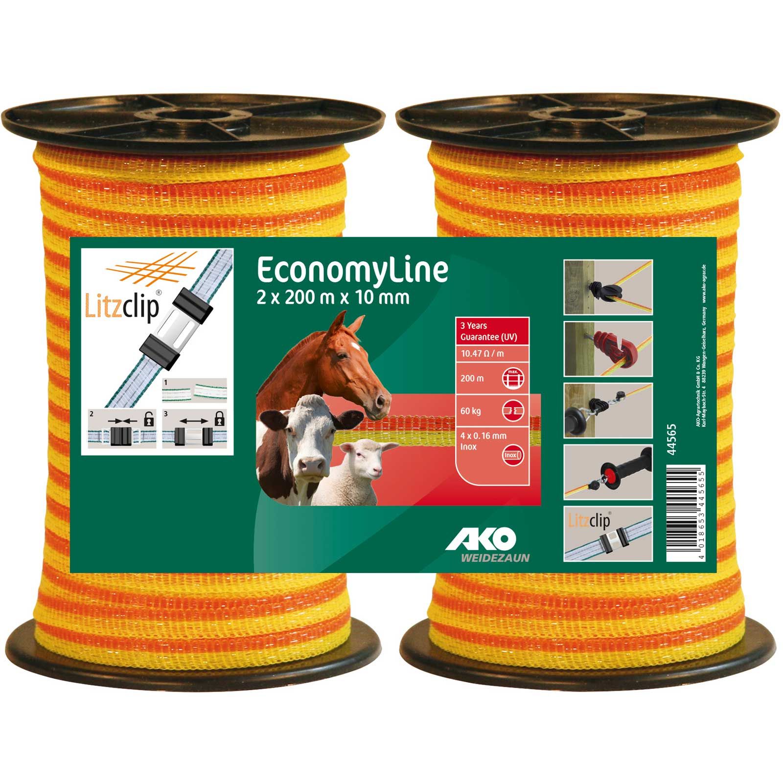 AKO bandă de gard electric pentru pășuni EconomyLine 2x 200 m