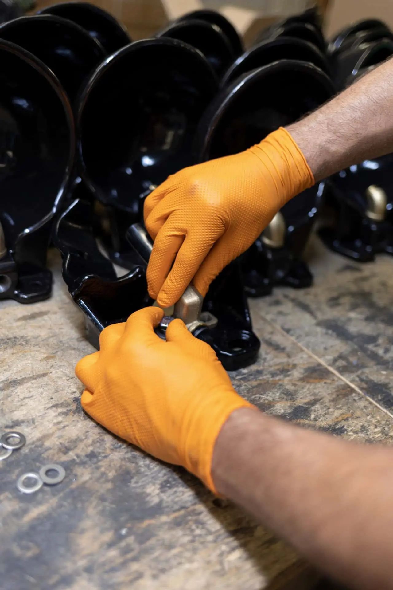 - Mănuși de unică folosință din nitril rezistent la abraziune, ulei și substanțe chimice