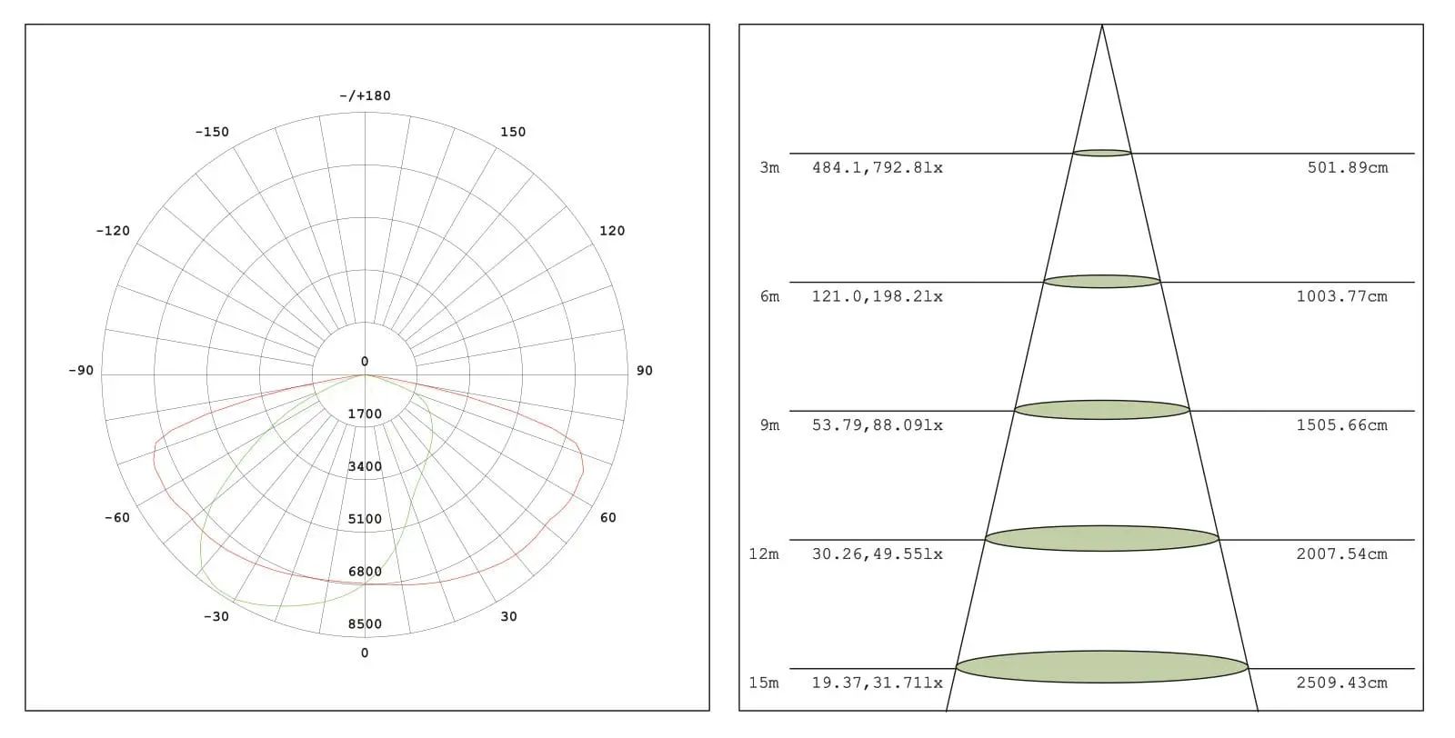 - Lentilele optice integrate asigură o radiație extrem de largă și direcționată înainte