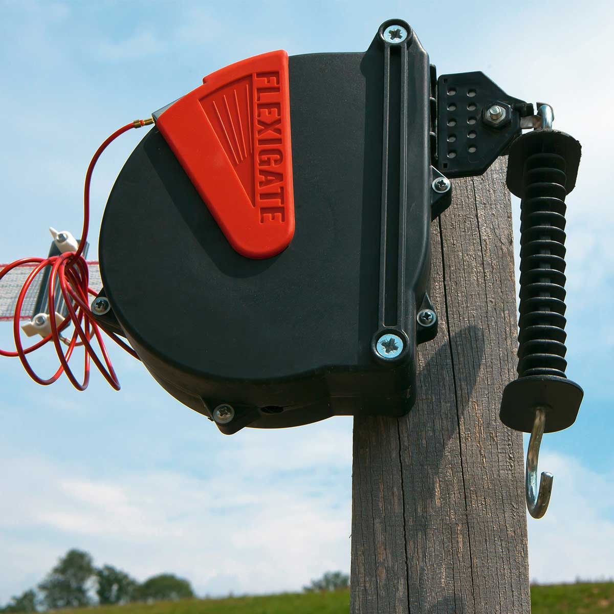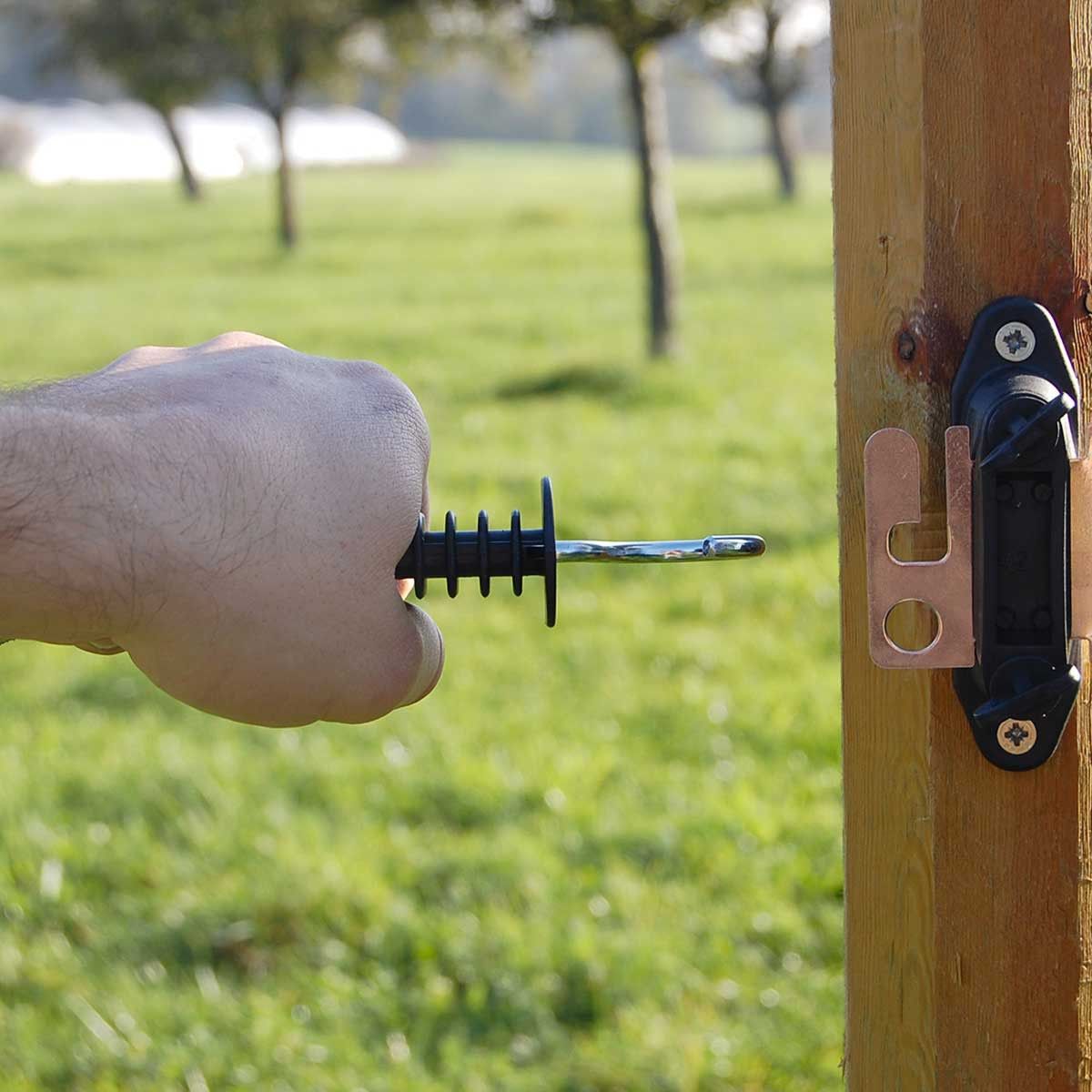 Cu flexigate puteți electrifica ușor și comod intrările de cuplare. De fiecare dată când poarta este deschisă, banda electrică este introdusă de un arc de oțel.