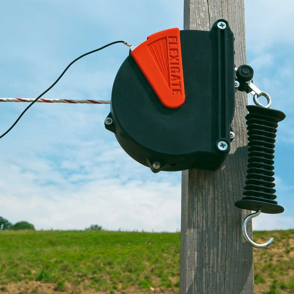 Coarda de poartă flexibilă este un sistem de poartă de la AKO. Cu ajutorul flexiGate, puteți electrifica ușor și comod intrările de cuplare. De fiecare dată când poarta este deschisă, cablul electric este înfășurat de un arc de oțel.
