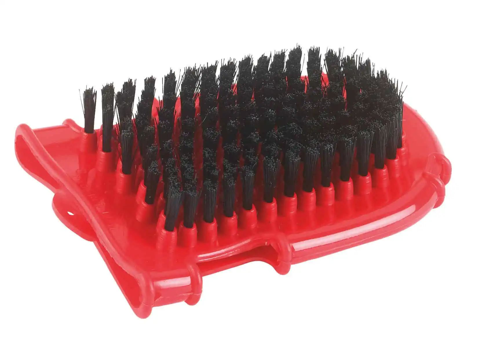Mănușa din plastic din plastic, roșie, este folosită pentru curățarea și menținerea eficientă a blănii de cal. Îndepărtează murdăria și părul liber eficient și poate fi, de asemenea, utilizat pentru masaj.