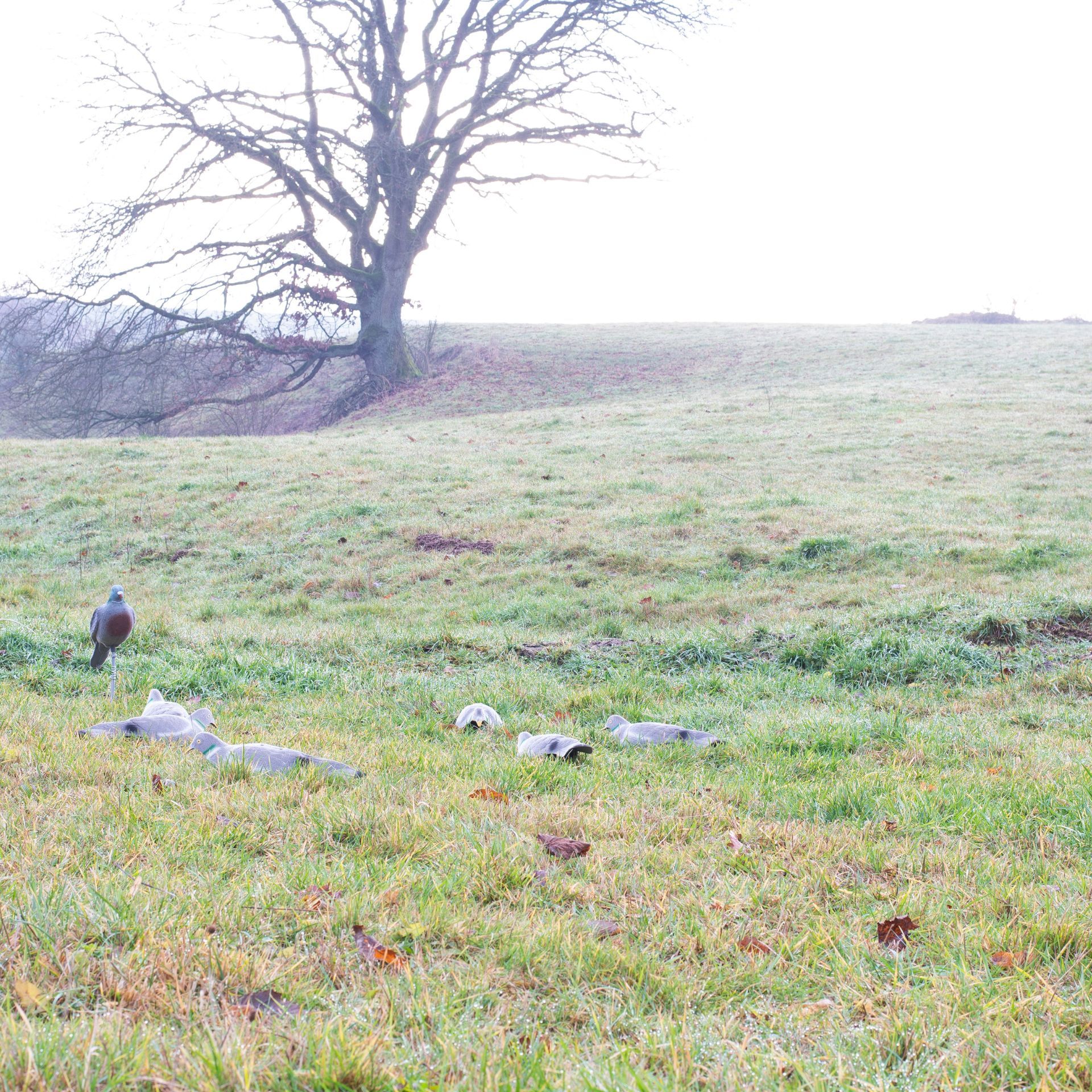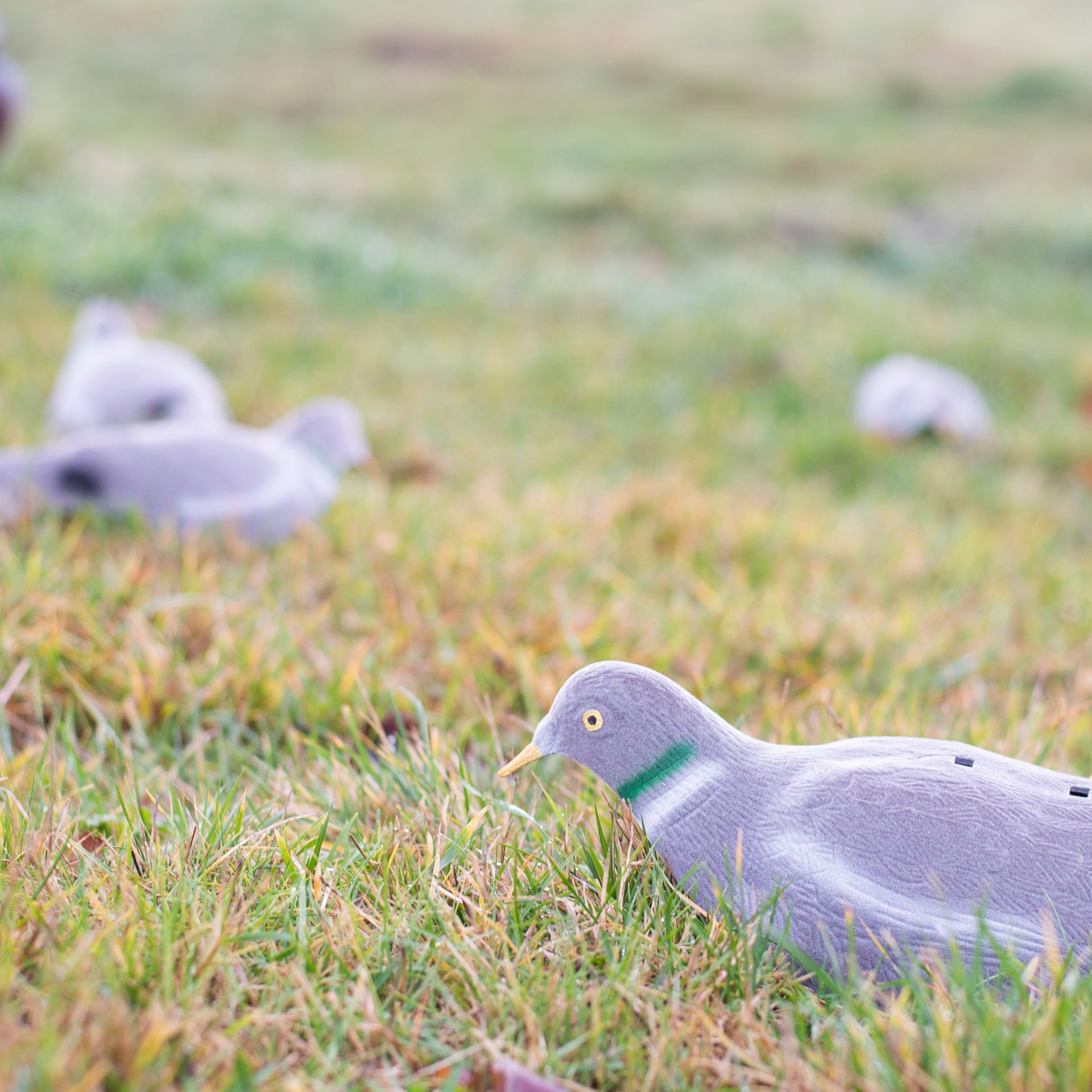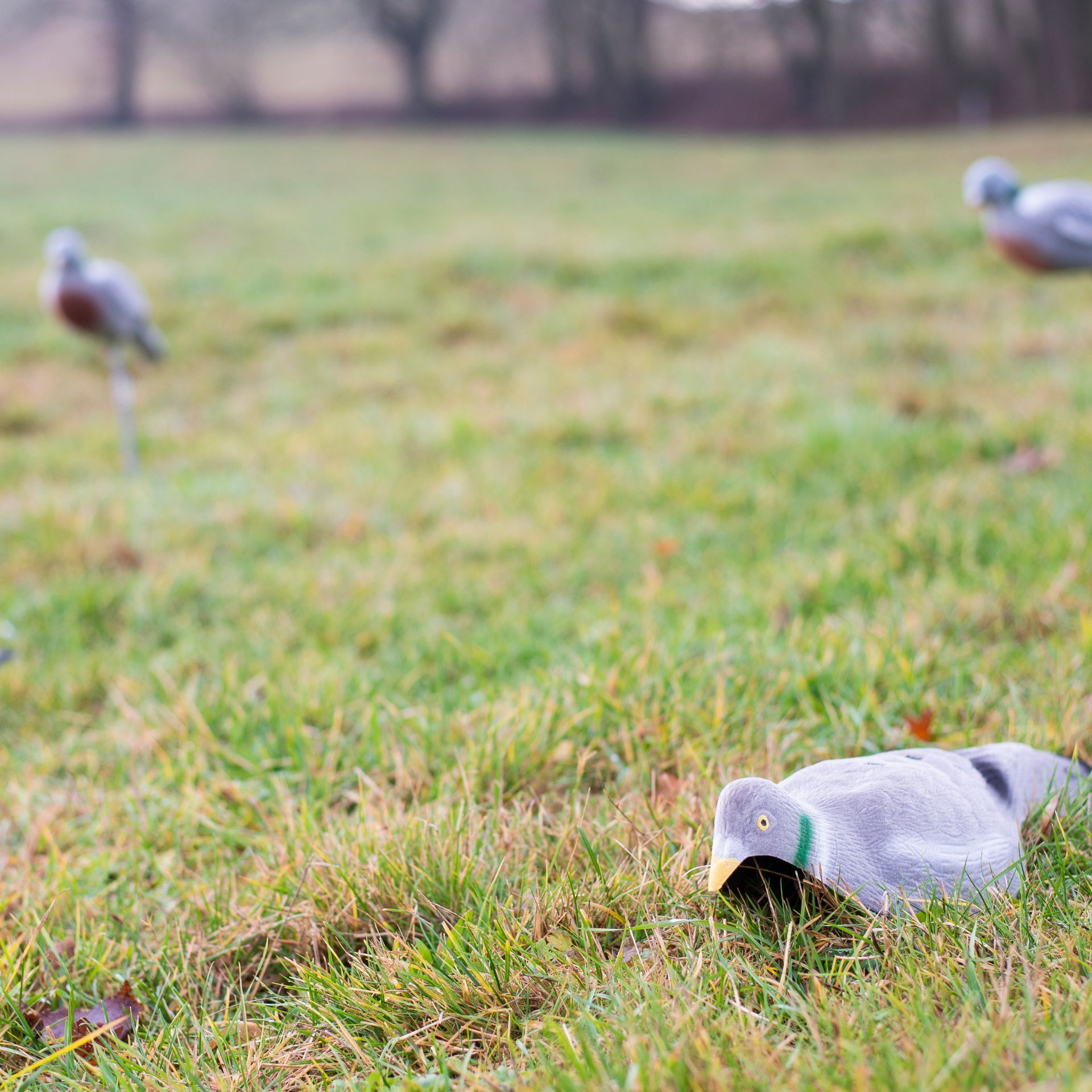 jumătate -shell Lucktabe oferă flexibilitate pe ecran, deoarece frigamentul de la sol poate fi introdus într -una dintre cele două deschideri de pe spatele porumbelului. Acest lucru permite imitarea diferitelor situații, cum ar fi consumul de porumbei. Pentru o scenă eficientă, trebuie utilizate cel puțin 10 păsări de punte - cu cât se folosesc mai multe păsări de descompunere, cu atât este mai mare efectul cret.