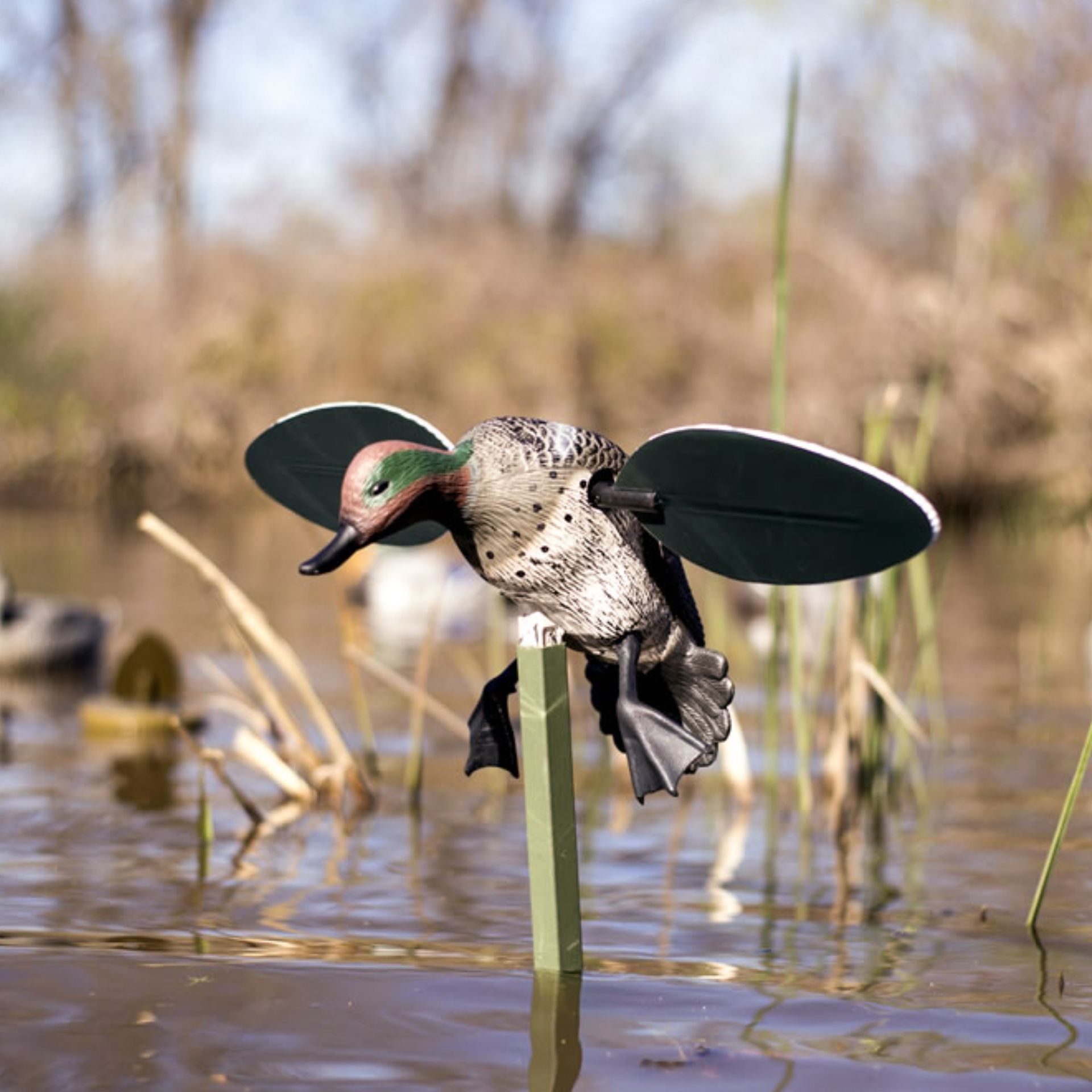 Mojo prezintă complet nou Mojo Teal cu Super Fast Wings - un concept complet nou în vânătoarea de rațe! Experiențele au arătat că rațele, gnat-urile, greierii, fluierele, scafandrii și toate celelalte specii de rațe reacționează mult mai mult la efectul mai rapid de stroboscop al unei păsări de blocare a aripii. Mojo Teal este un dent de crick cu aspect realist, cu aripi care se rotesc până la două ori mai repede decât tipic Block Block Block pe piața de astăzi.