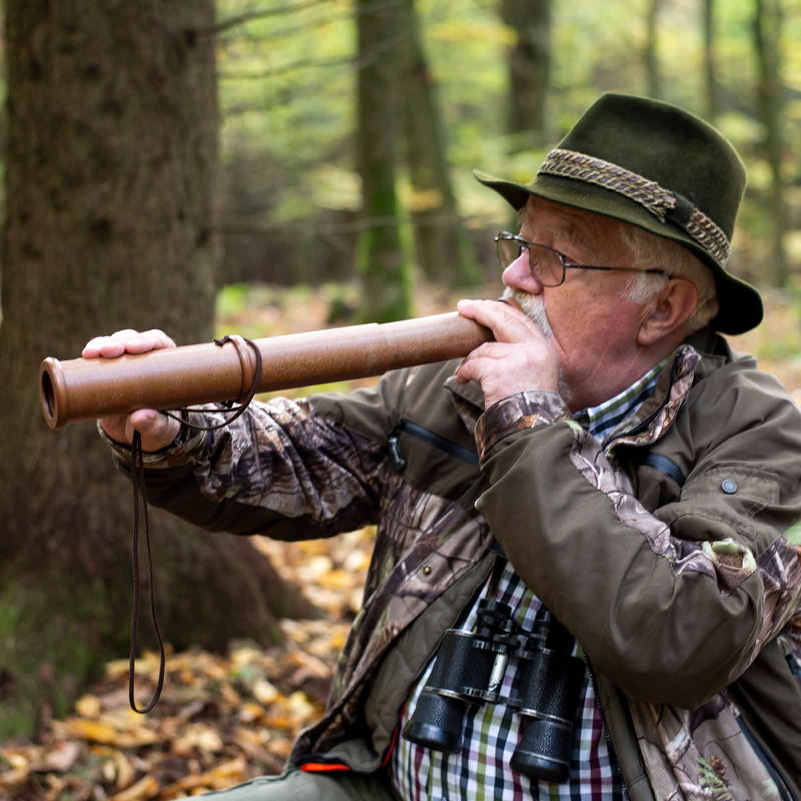 Weisskirchen Eifelhircof este versatil și poate imita o varietate de sunete de cerb; De asemenea, este util să atrageți mistreții. Designul său telescopic cu trei secțiuni vă permite să obțineți un sunet mai profund și mai divers. Închis, măsoară 21 cm, dar se poate extinde până la 50 cm, ceea ce le permite să se adapteze la diferite situații de vânătoare.
