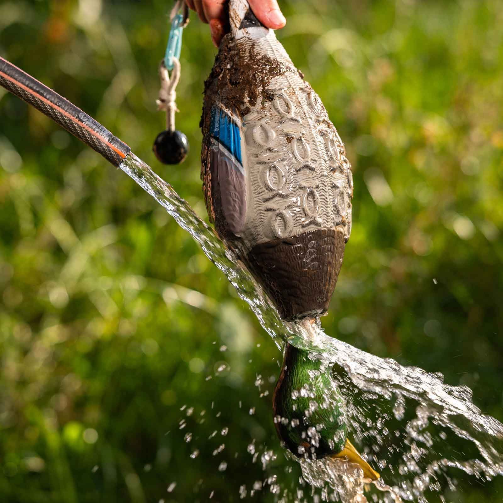 rața stick cântărește 320g și măsoară 40 x 11,5 x 9,5 cm. Are un cap rotativ care este atașat de corp cu un cordon. Până la urmă există o bilă de plastic neagră pentru o mai bună aruncare, ceea ce permite rațelor de băț să arunce pe distanțe mai mari.