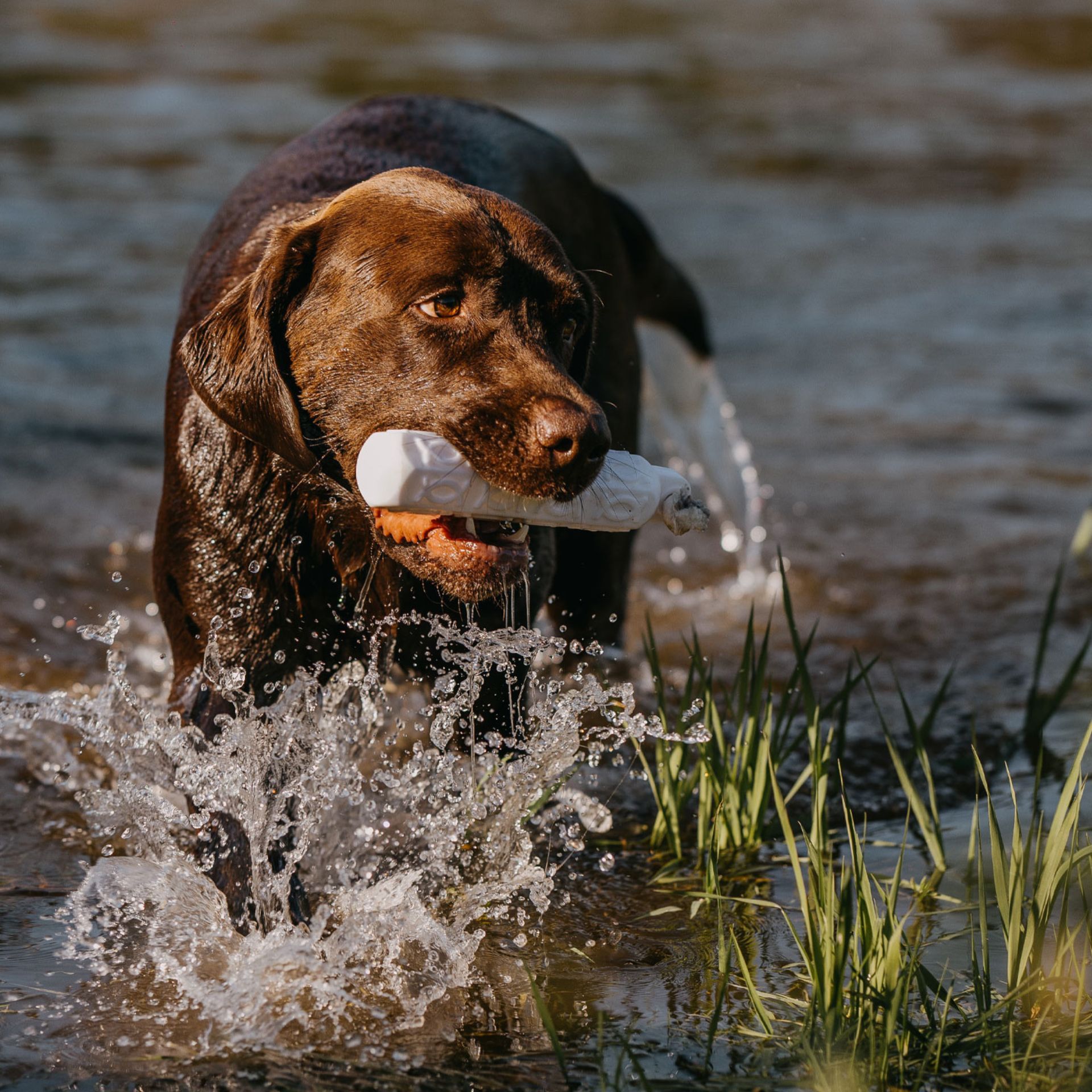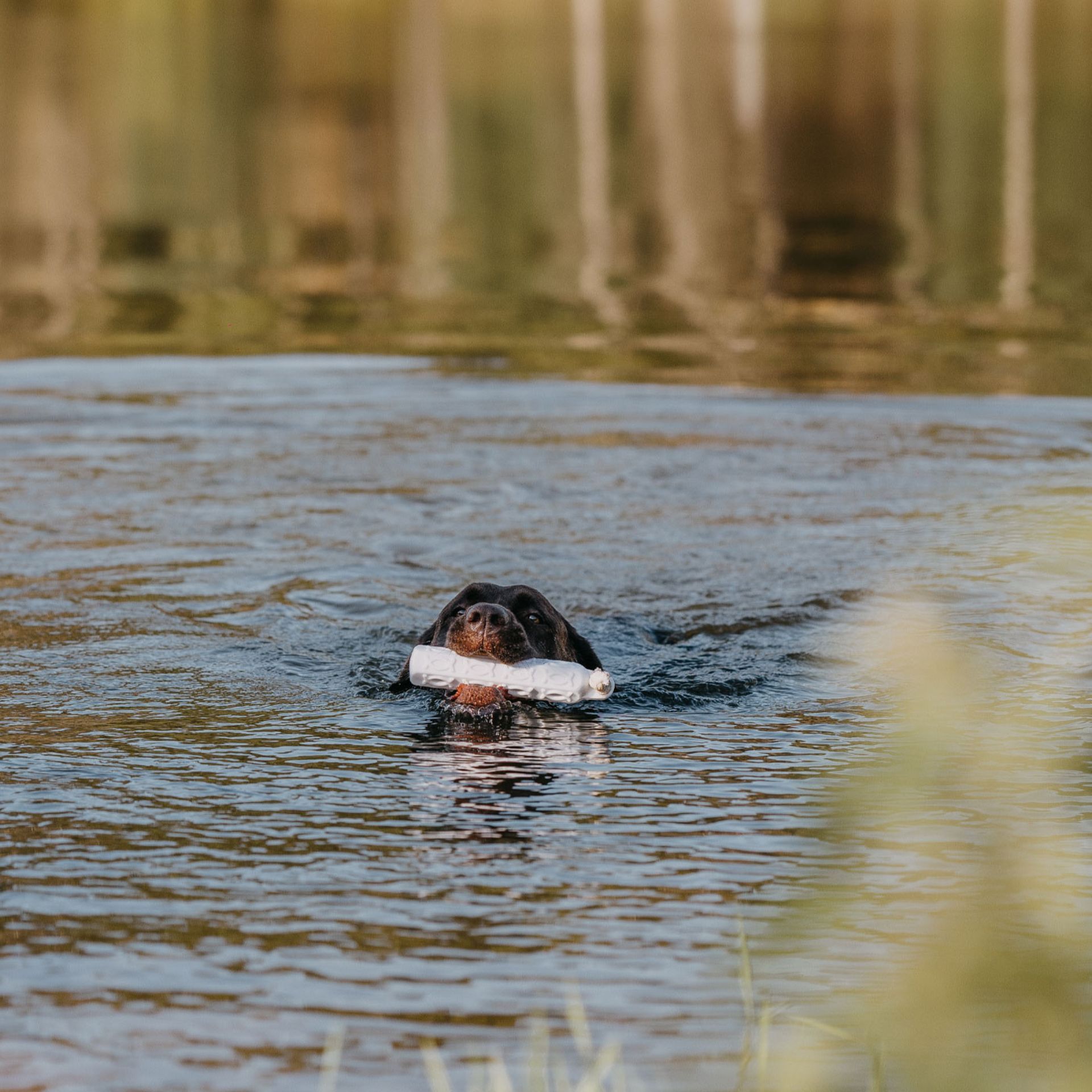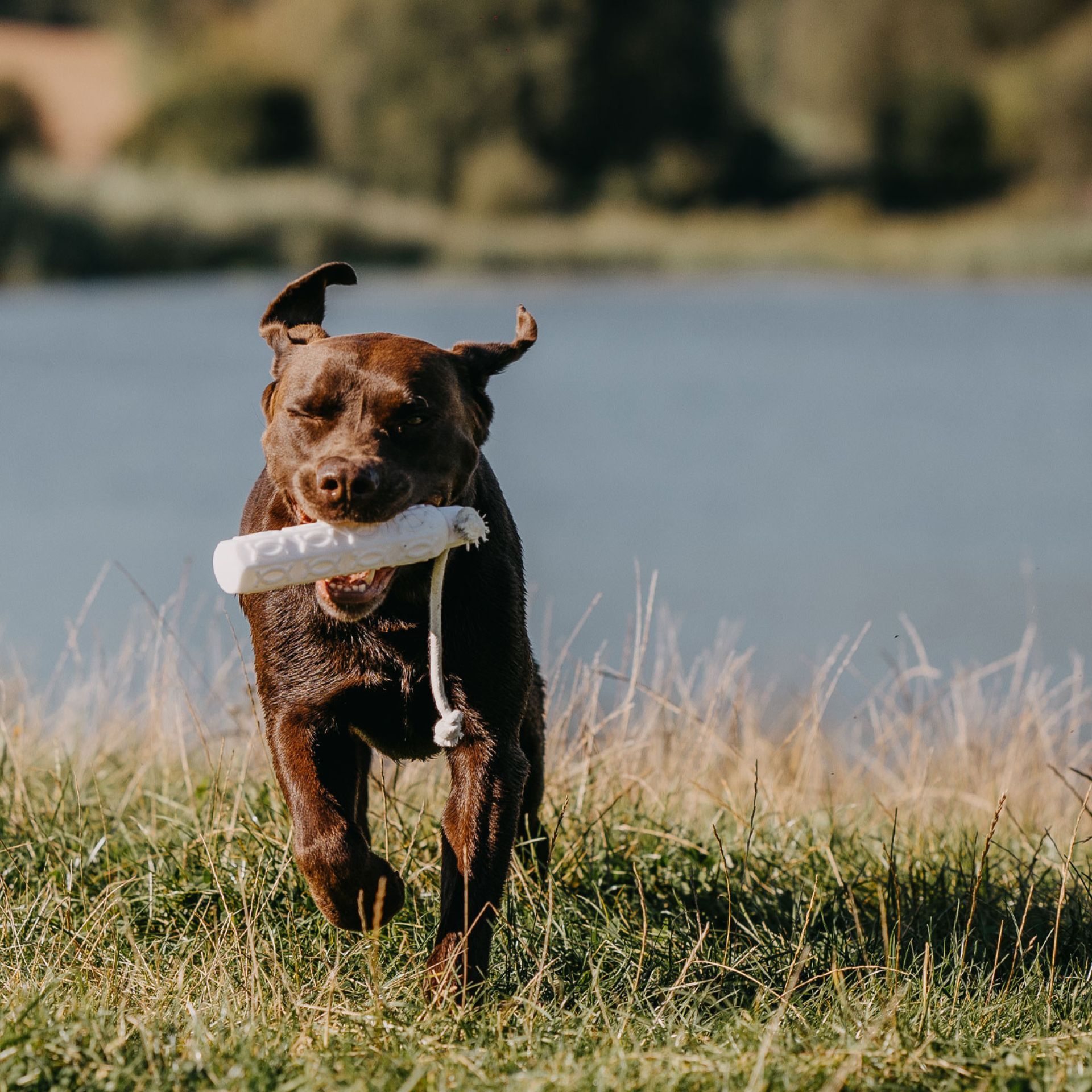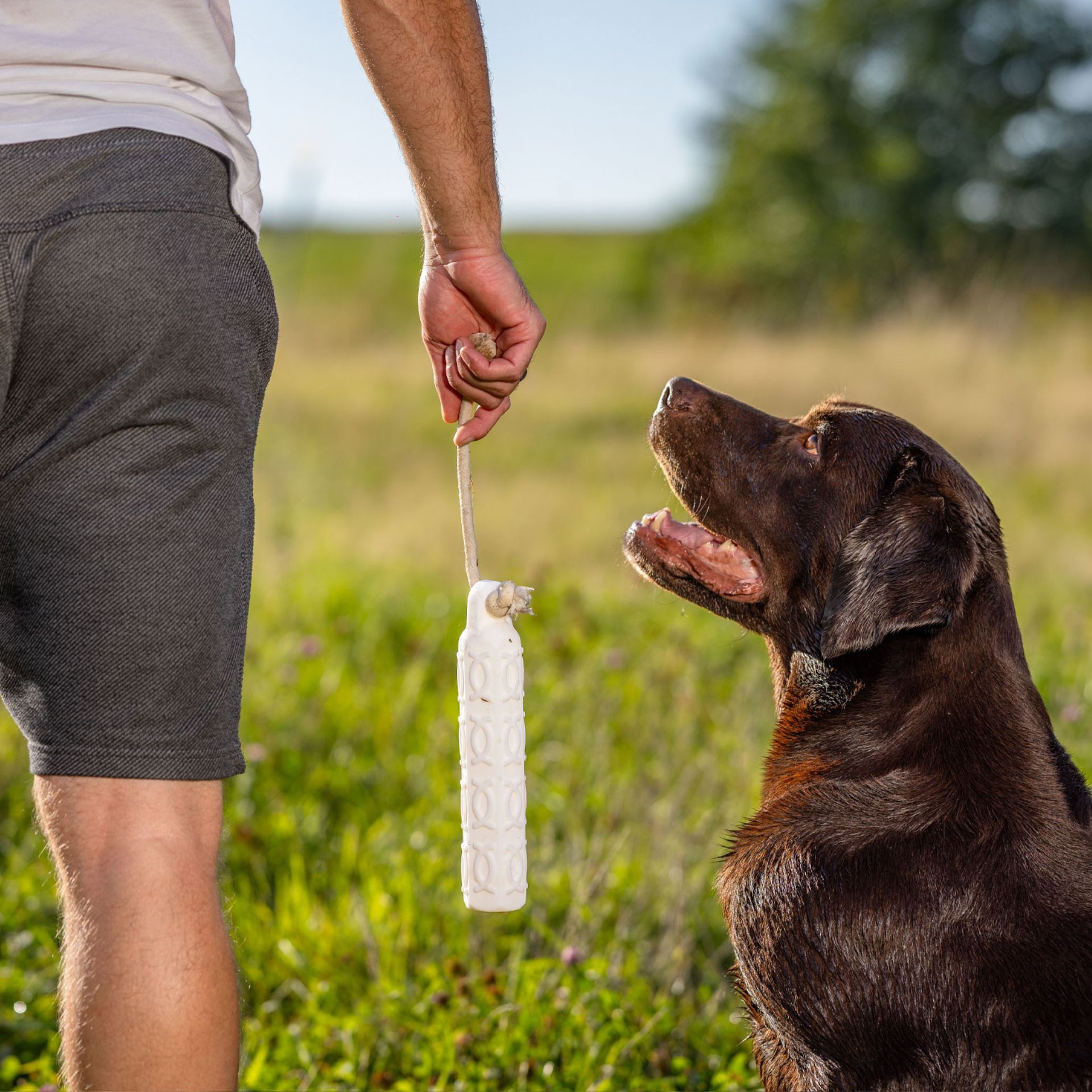 Da, datorită formei hexagonale și a modelului de relief, câinele poate apuca și ține bine manechinul.