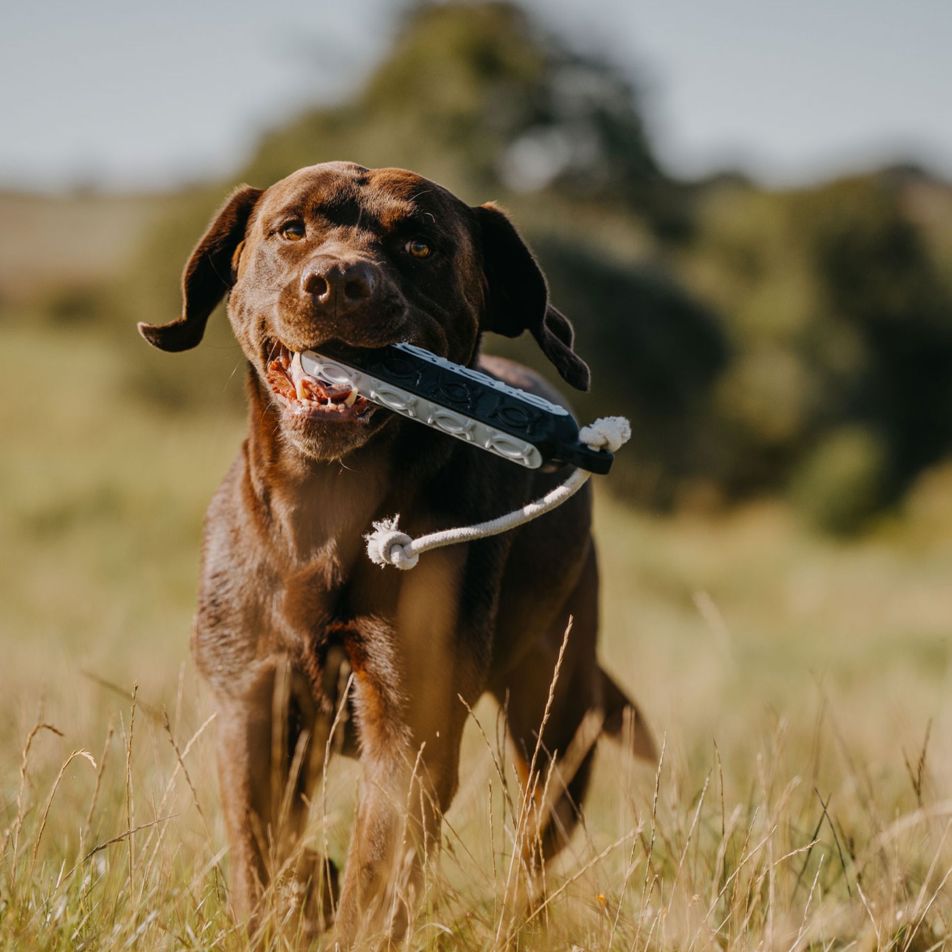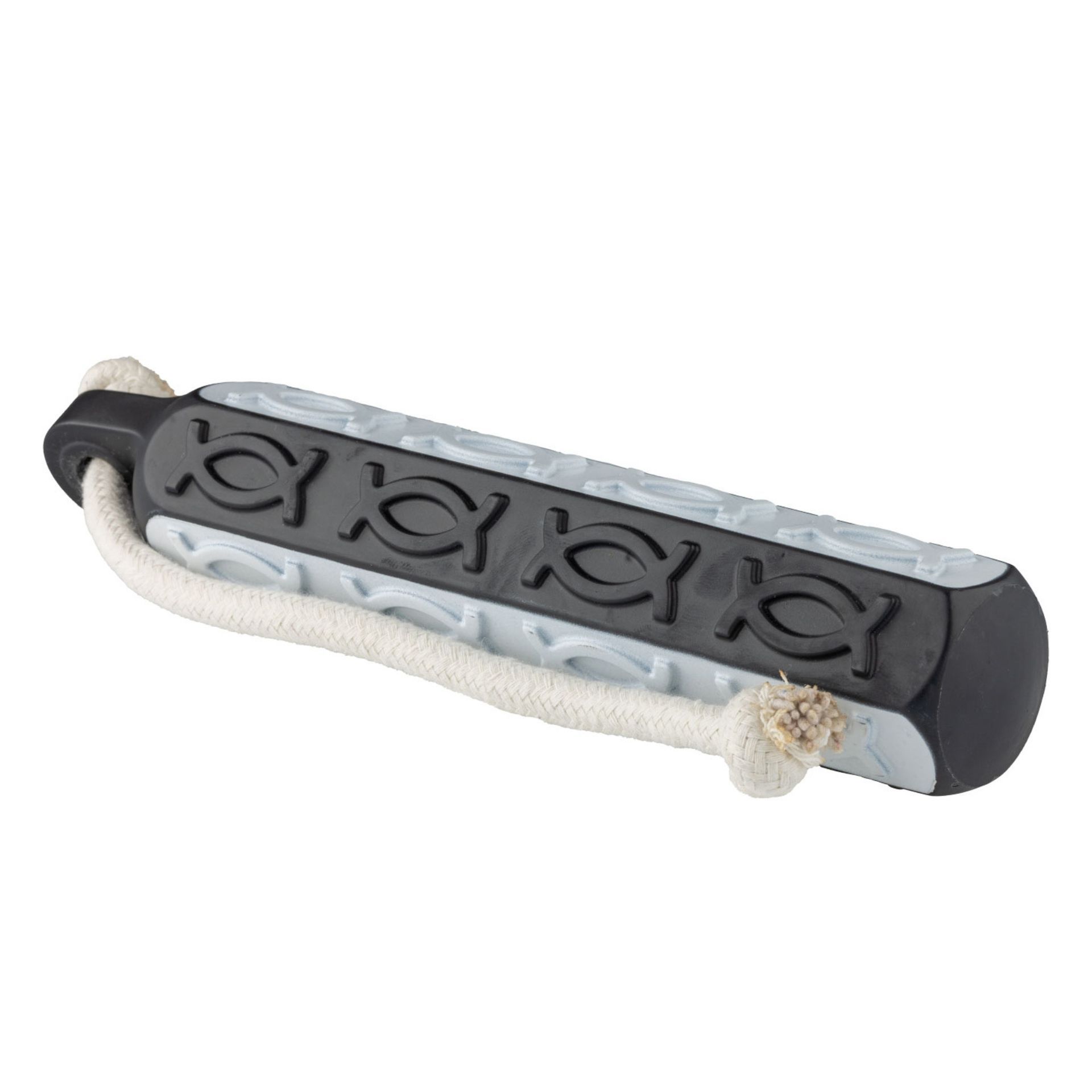 Da, datorită formei hexagonale și a modelului de relief, câinele poate apuca și ține bine manechinul.