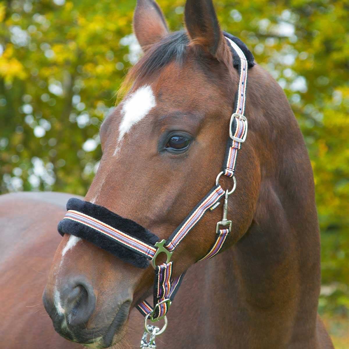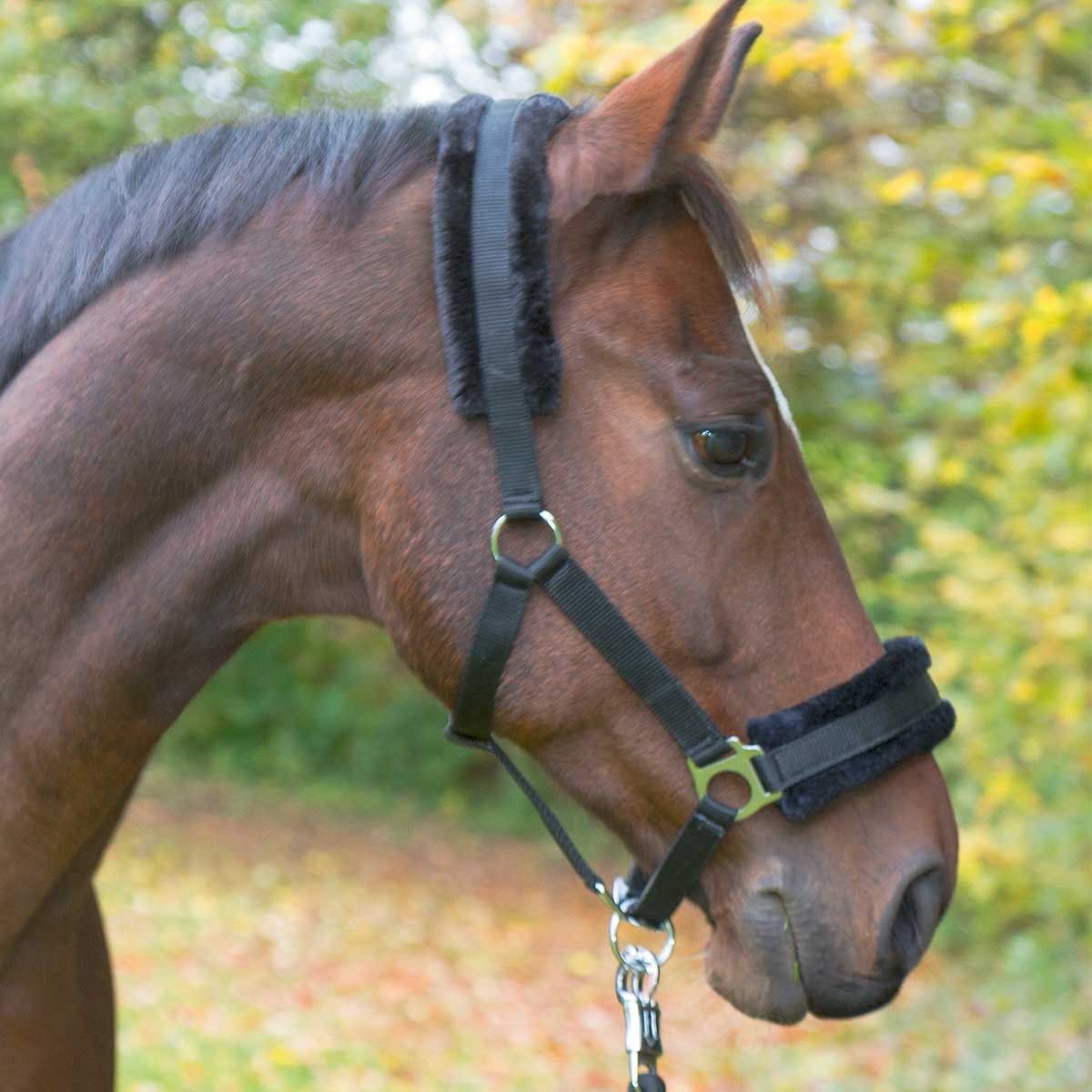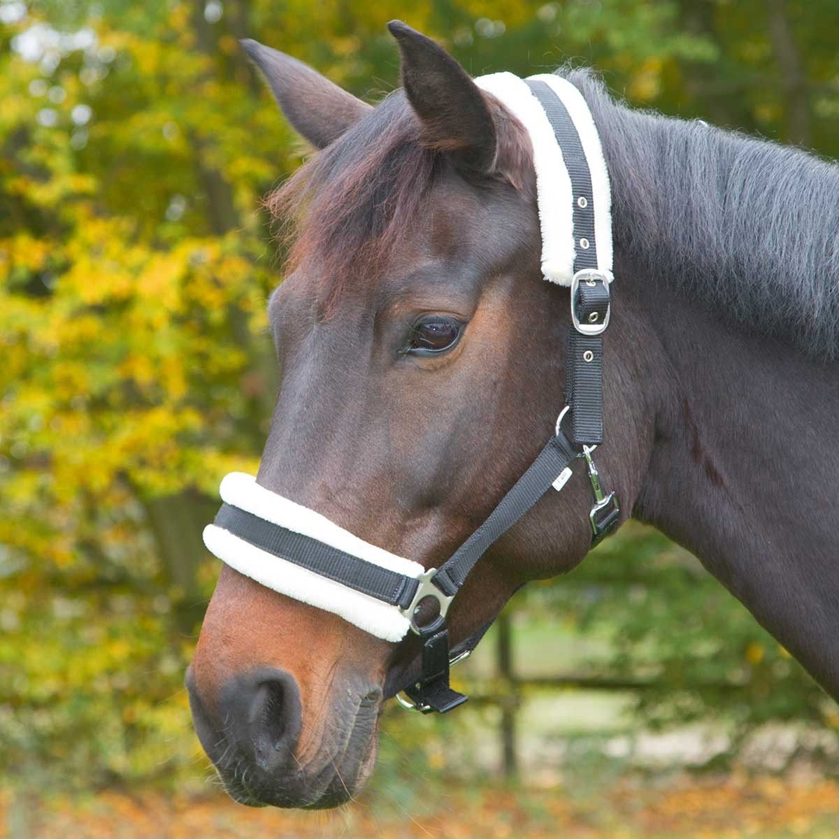 Această halebardă este ideală pentru caii sensibili și are o căptușeală din blană țesută înlocuibilă în alb și negru.