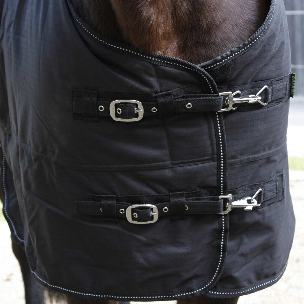 Pătura pentru cai Covalliero RugBe 200 este pătura optimă pentru cai pentru zilele umede și reci de toamnă și iarnă. Pătura pentru cai combină o potrivire optimă și o libertate de mișcare suficientă. Pătura de iarnă impermeabilă menține calul uscat la exterior și, în același timp, asigură egalizarea temperaturii. Centura pentru piept nou dezvoltată permite, pe de o parte, mișcări largi ale calului și, pe de altă parte, asigură o potrivire optimă.