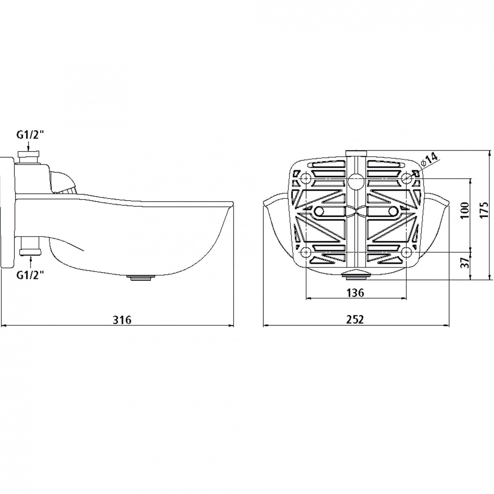 Adăpător K75 din plastic - jgheab de cu conexiune de 3/4"