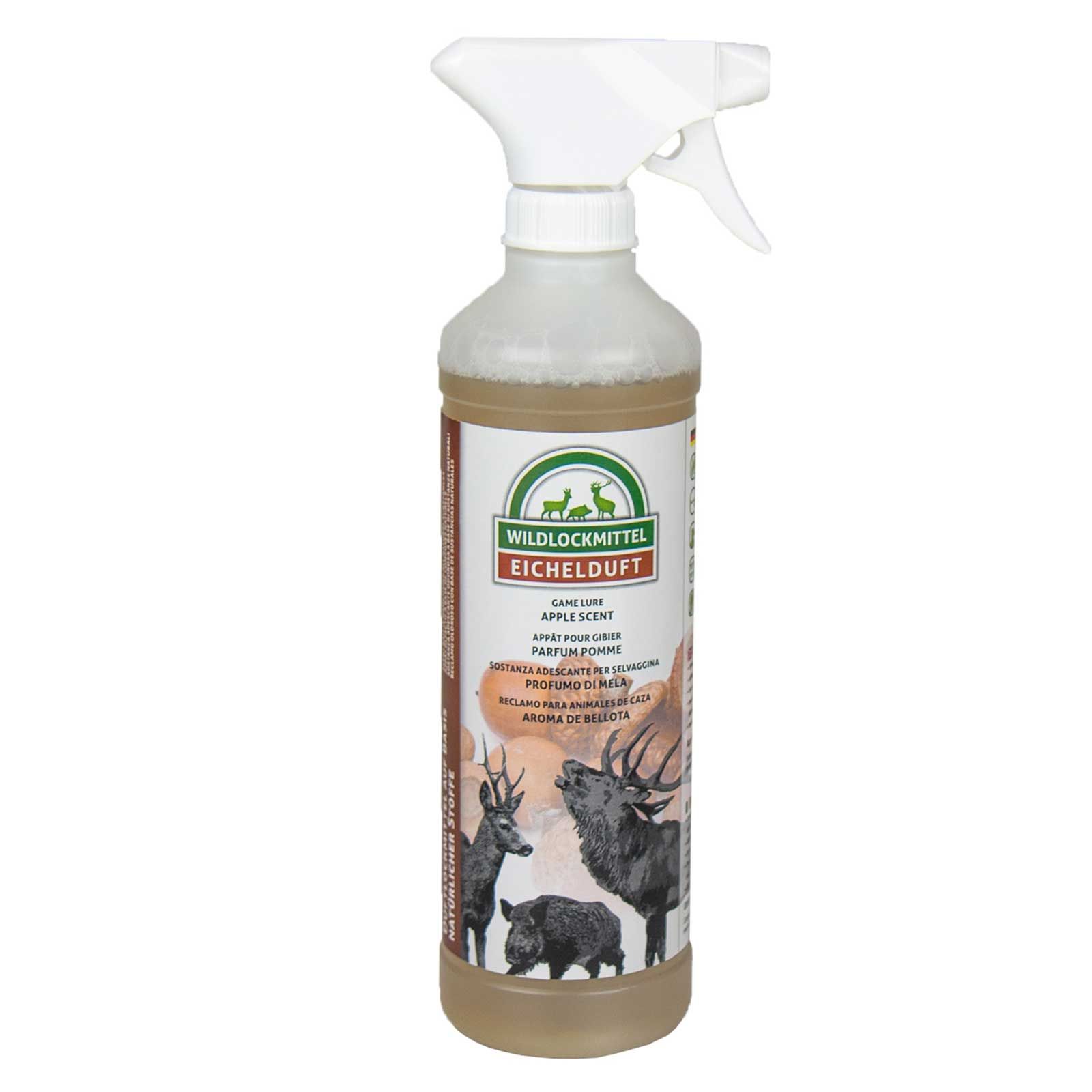 The Acorn Parfum 500 ml Produs în Germania este un agent progresiv Wildlock. Datorită celei mai recente tehnologii, permite atracția eficientă a diferitelor animale sălbatice, cum ar fi căprioarele, mistrețul, cerbul și cerbul. Datorită aromei sale de ghindă, acest spray cret evocă interesul instinctiv al acestor animale și reprezintă astfel momeala ideală pentru animale de copită și alte animale sălbatice.
