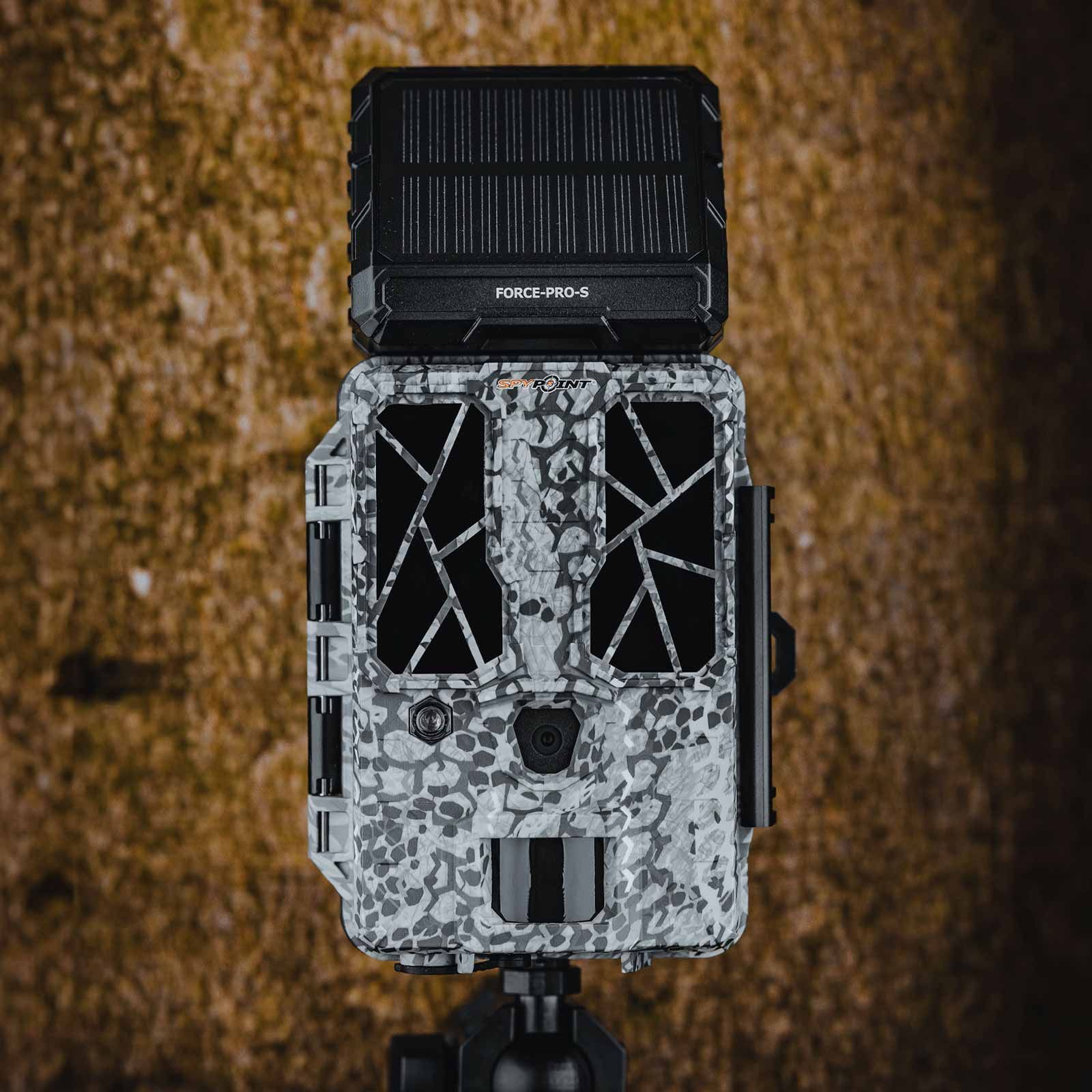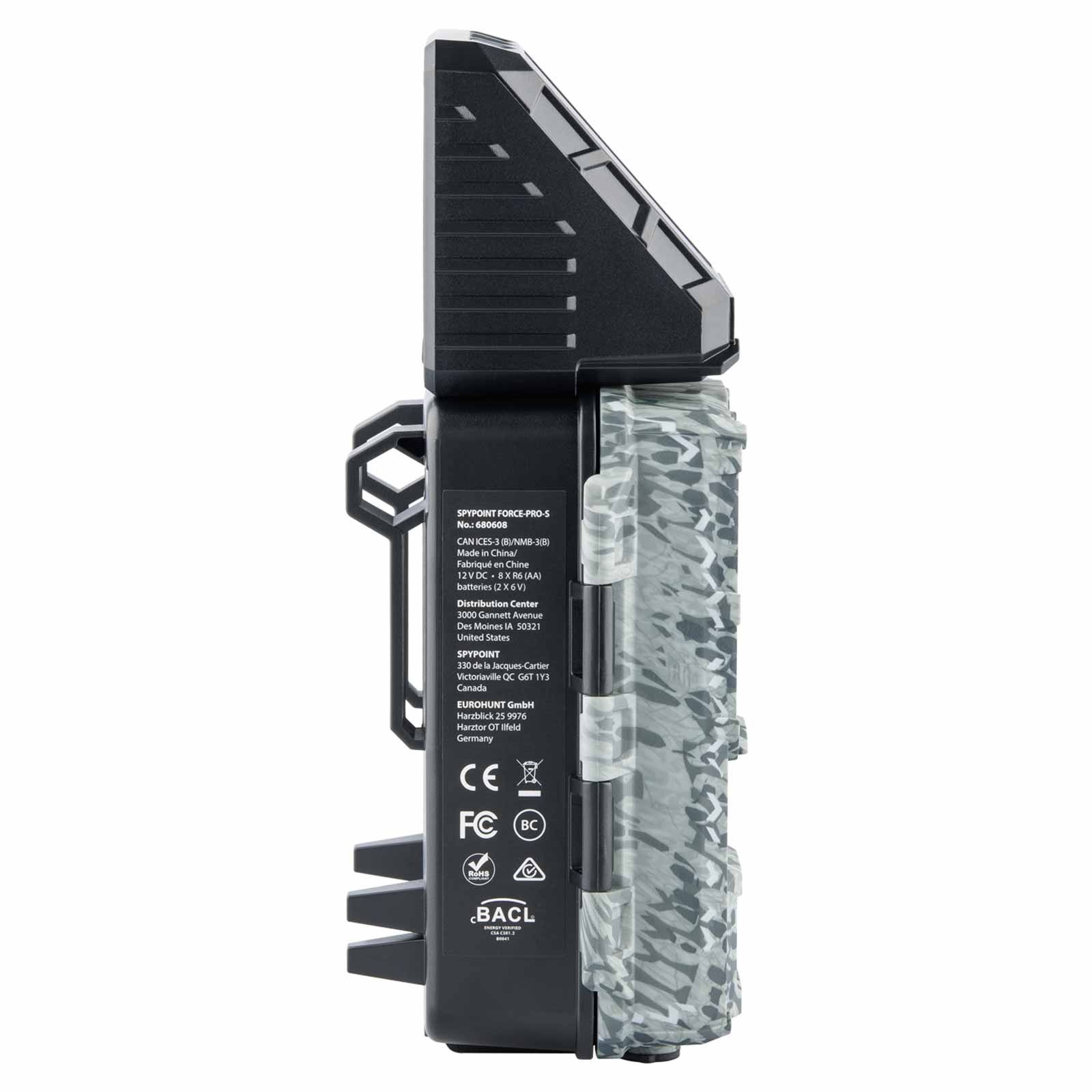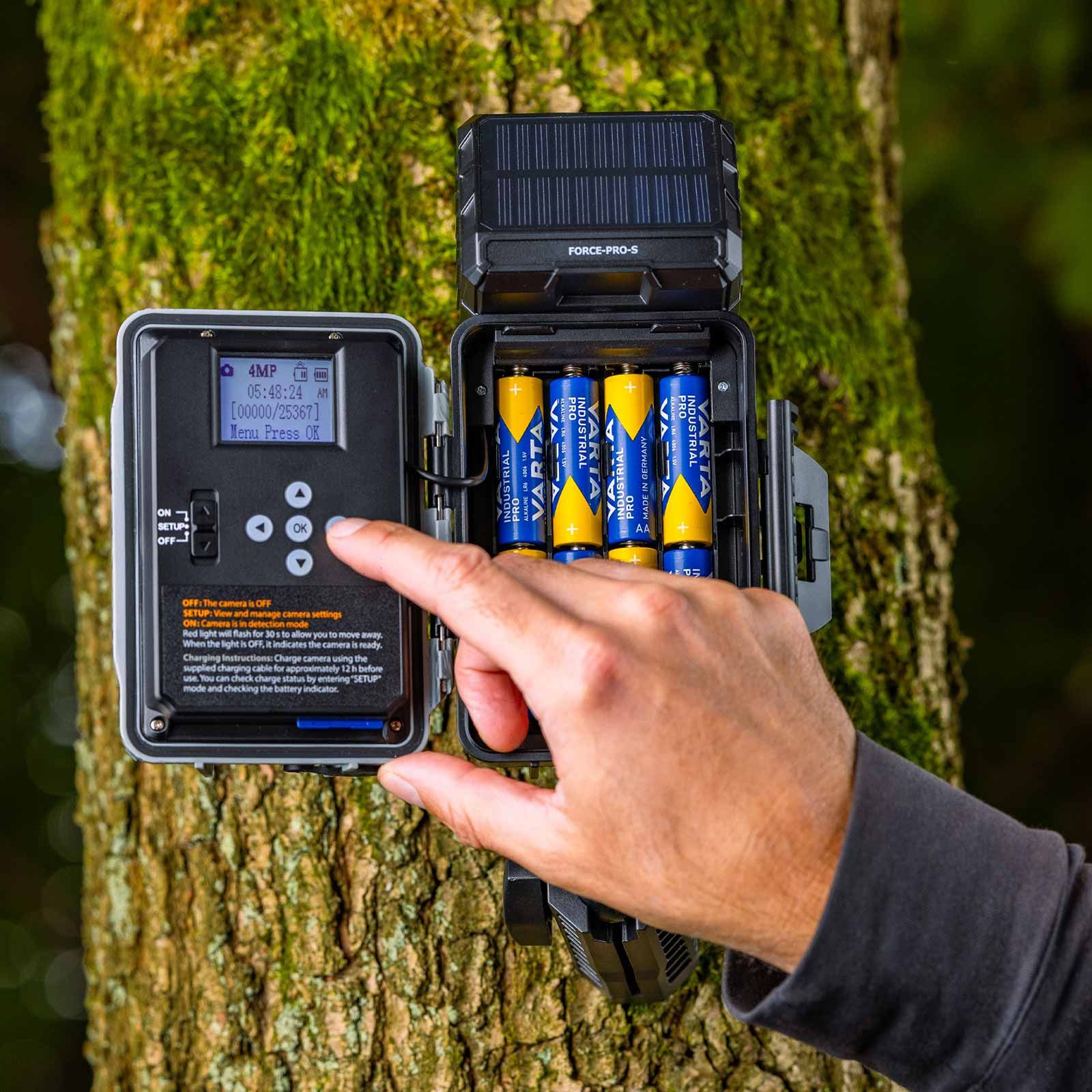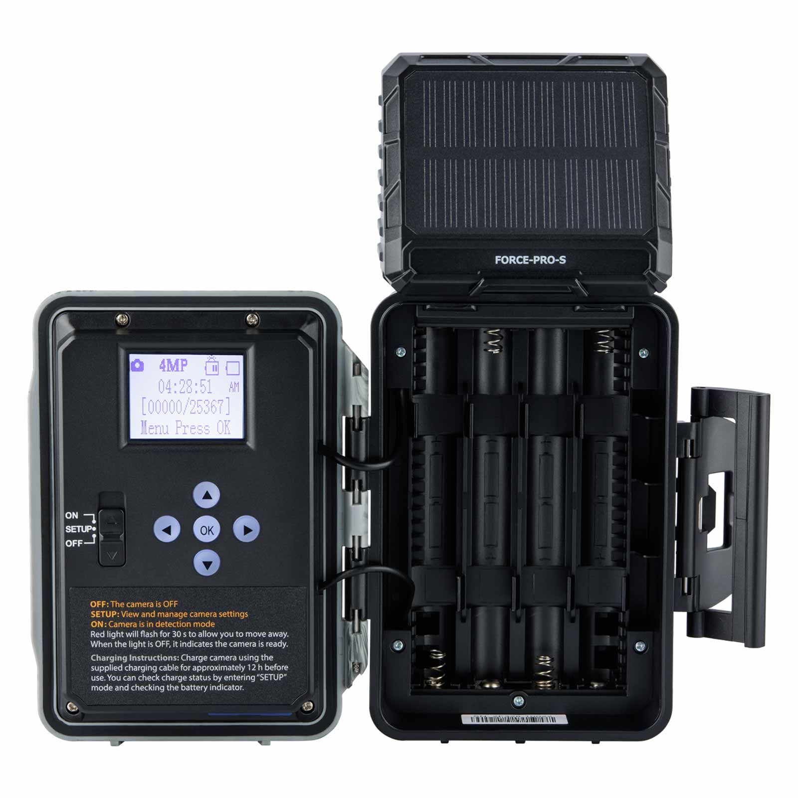 Spypoint Wild Camera Force-Pro-S este echipat cu o baterie de litiu-ion încorporată și panoul solar . Prin urmare, bateriile nu sunt necesare. În situațiile în care este necesară o energie suplimentară, însă, opțiunea este de a introduce 8 baterii AA . Un ecran de configurare 1,5 'PRACTIC facilitează setările de pe site. Camera oferă o funcție unică de 1 senzor pentru înregistrarea de 5 zone și vine cu un card de memorie SDHC preinstalat 16 GB .