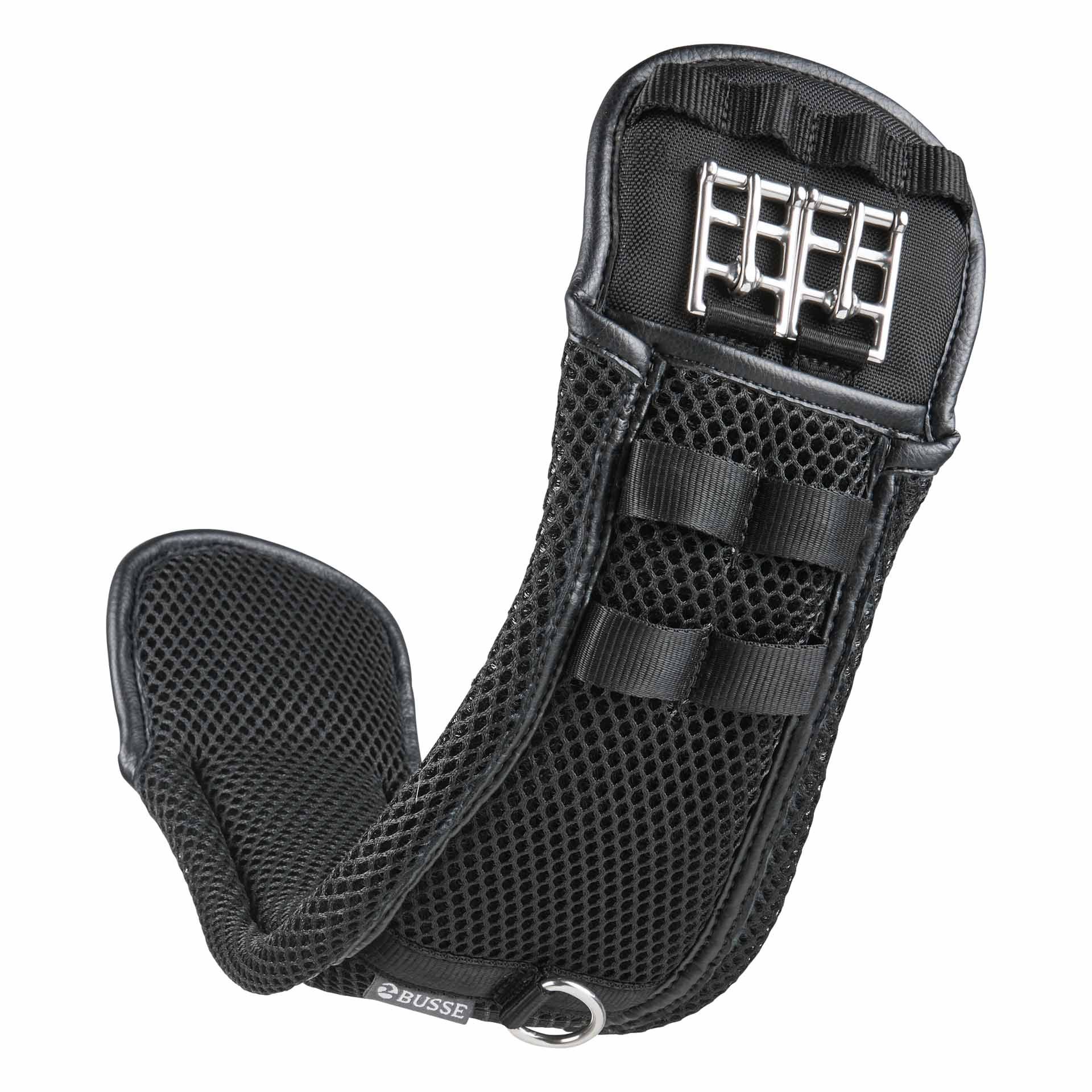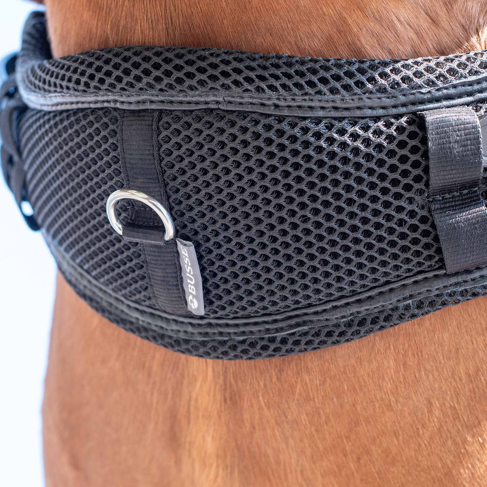 Efectul de aer 3D Subcondiția Busse este echipată cu un inel central pentru o atașare rapidă a frâielor auxiliare și o direcție optimizată pentru curelele de șa pentru o poziționare ideală cu diferite sisteme ale curelelor de șa. Cataramă de expert-schnalle, din oțel inoxidabil cu roți ultra-rezistente fără sudare, protejează curelele de șa și permite o fixare foarte plată datorită inciziei lor.
