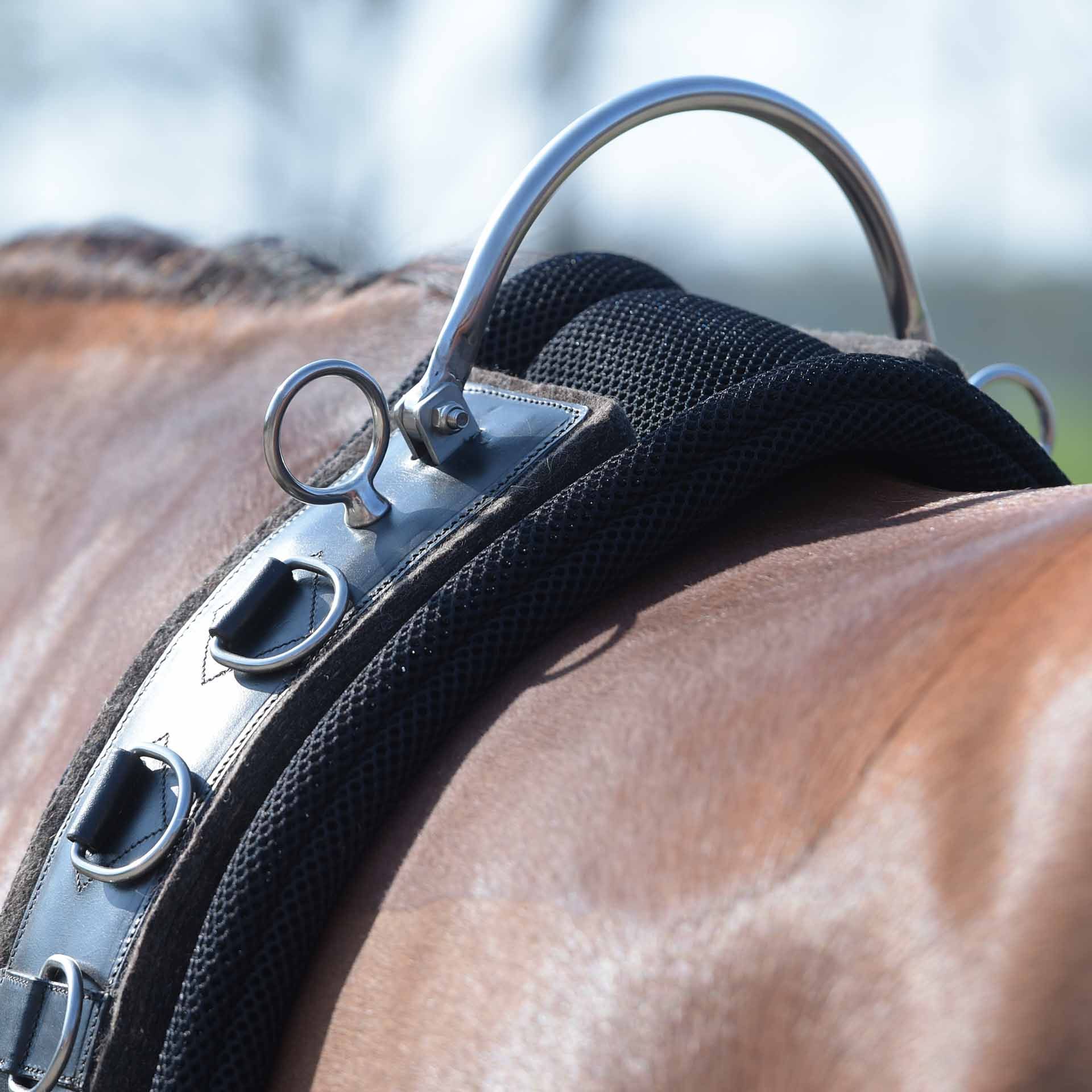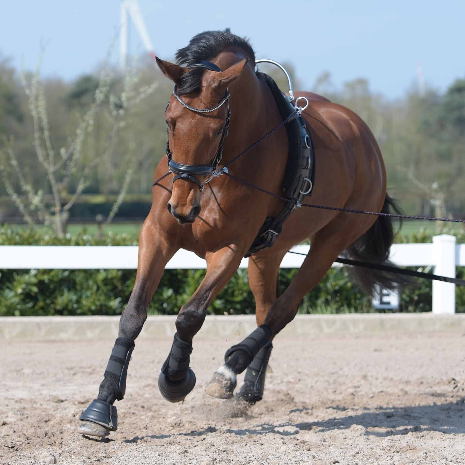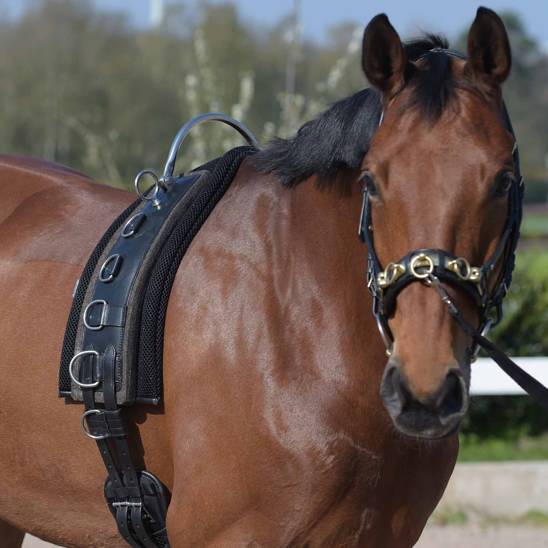 - poate fi folosită cu suportul de șa și toate șantioanele convenționale de lungeing, pot fi, de asemenea, legate peste o șa