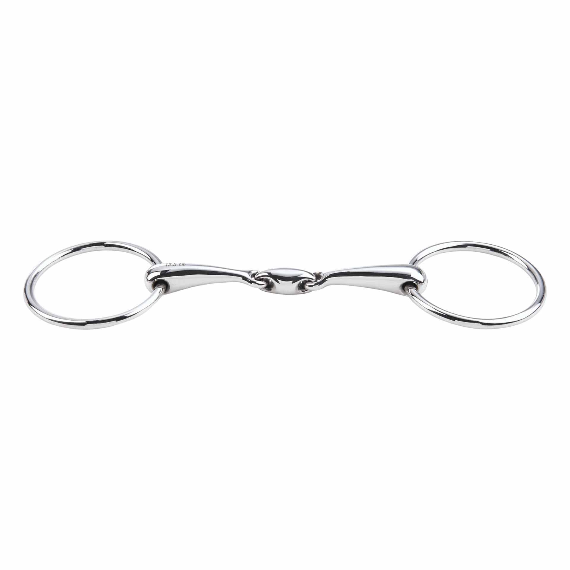 produs din oțel inoxidabil de înaltă calitate, mușcătura este robustă și de durată, asigurând utilizarea prelungită în timp. Designul dual butuc cu o piesă centrală eliptică se adaptează perfect la dimensiunea și puterea mușcăturii calului, oferind un control dulce, dar precis.