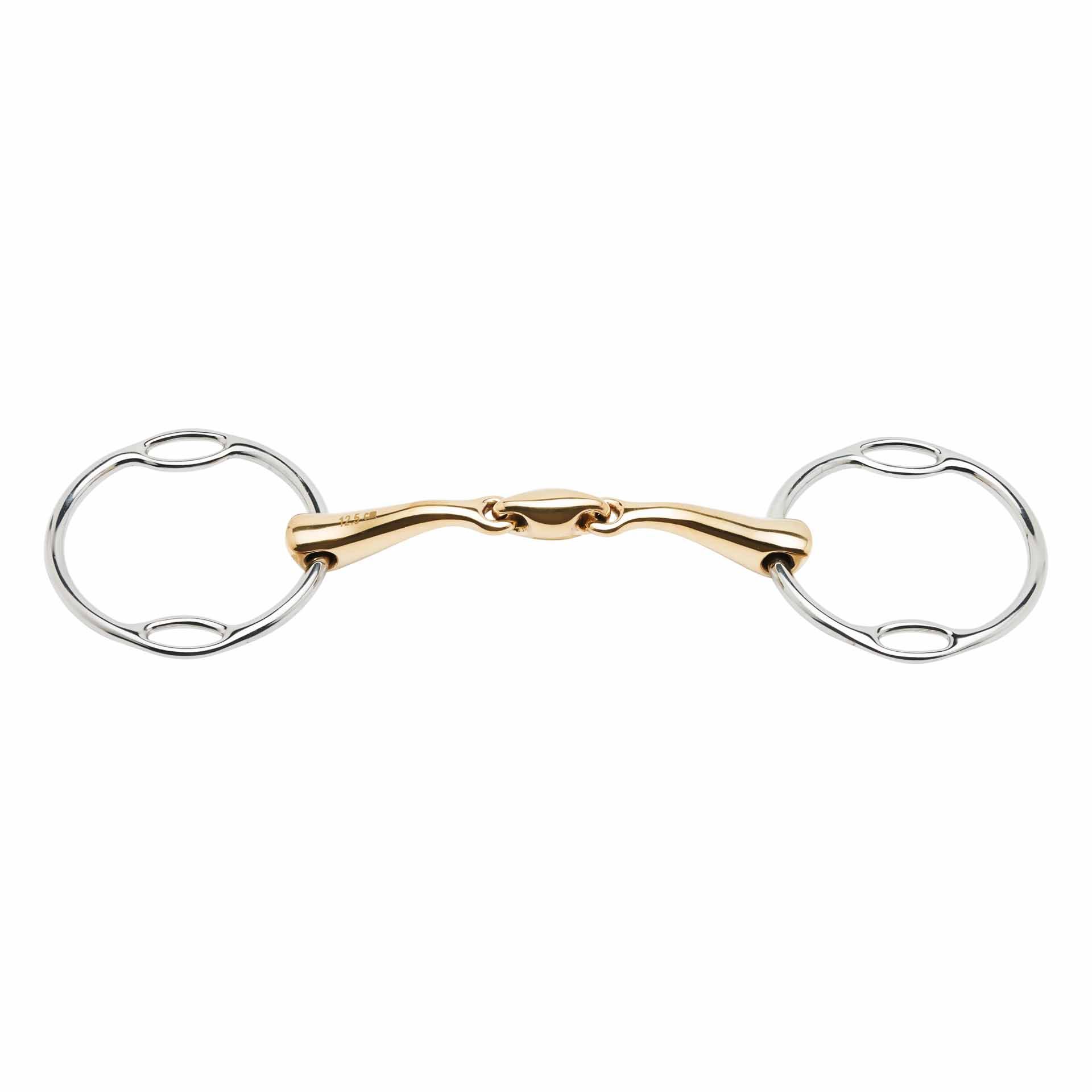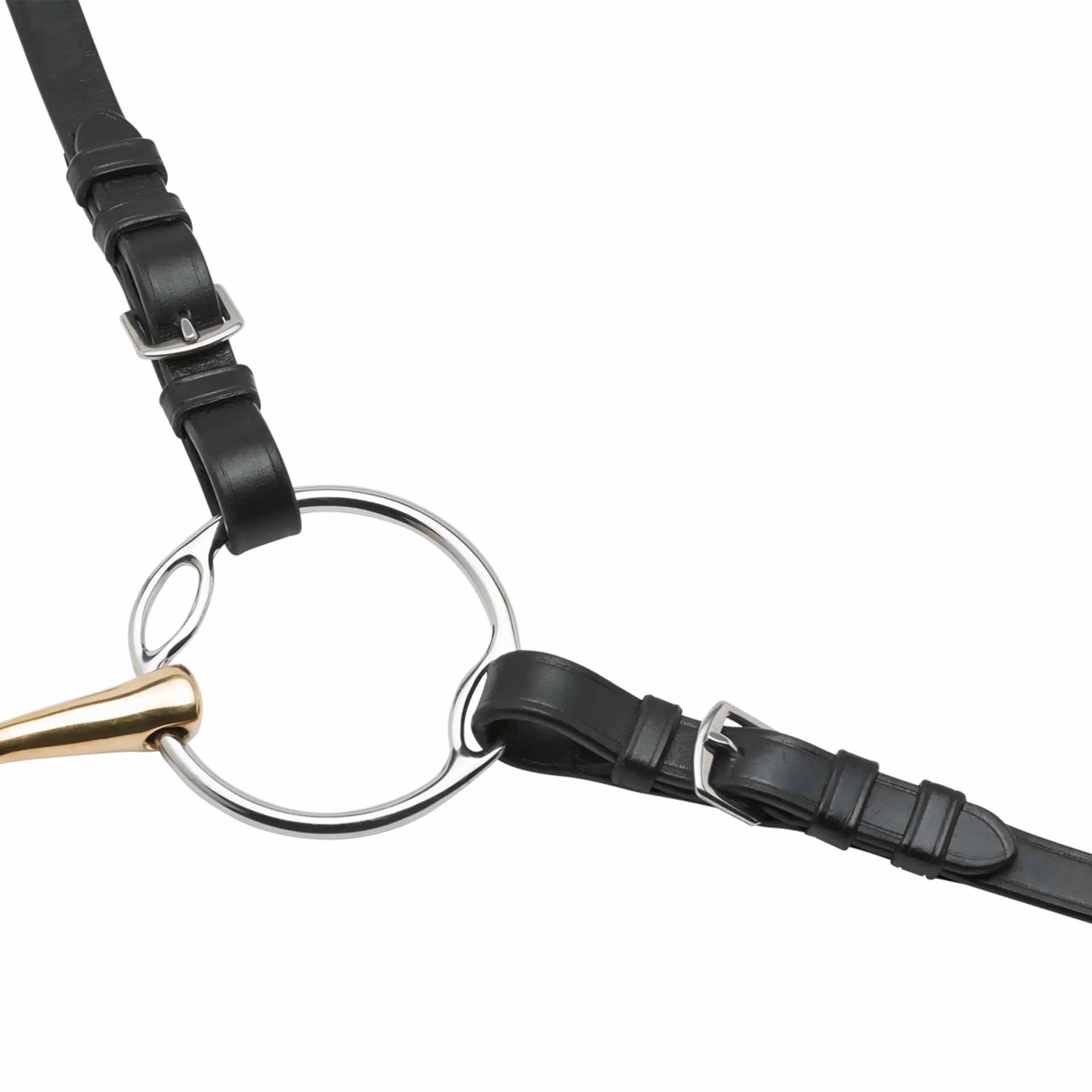 Structura de file solidă asigură o poziție stabilă în gură, în timp ce materialul Kouan® al articulației promovează salivația, crescând acceptarea calului. Dar adevărata noutate este versatilitatea sa: cu inelele mici integrate în inelul principal, puteți alege între trei posibilități de fixare diferite, pe baza nivelului de antrenament al calului. Această flexibilitate vă permite să personalizați experiența de călărie în funcție de nevoile dvs.