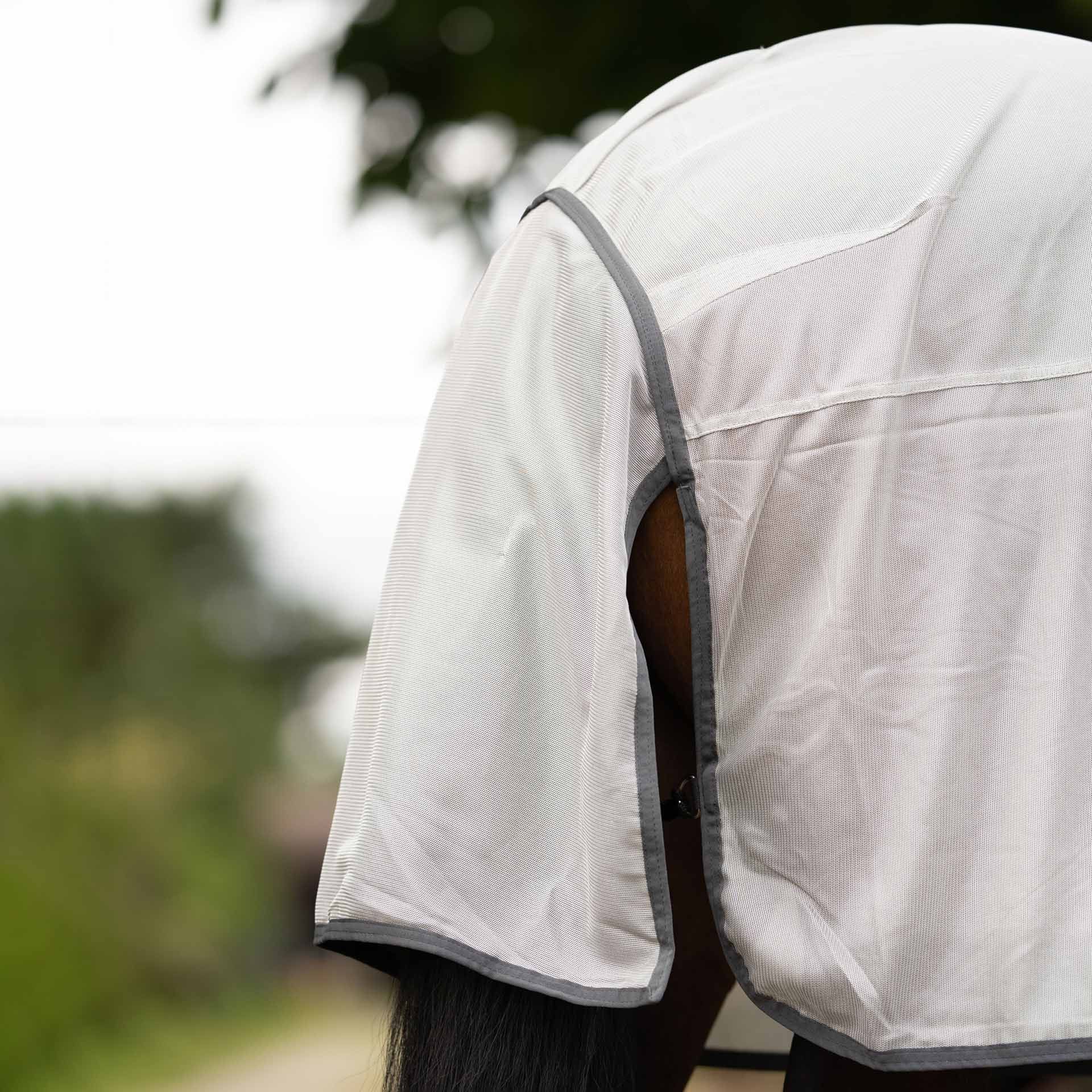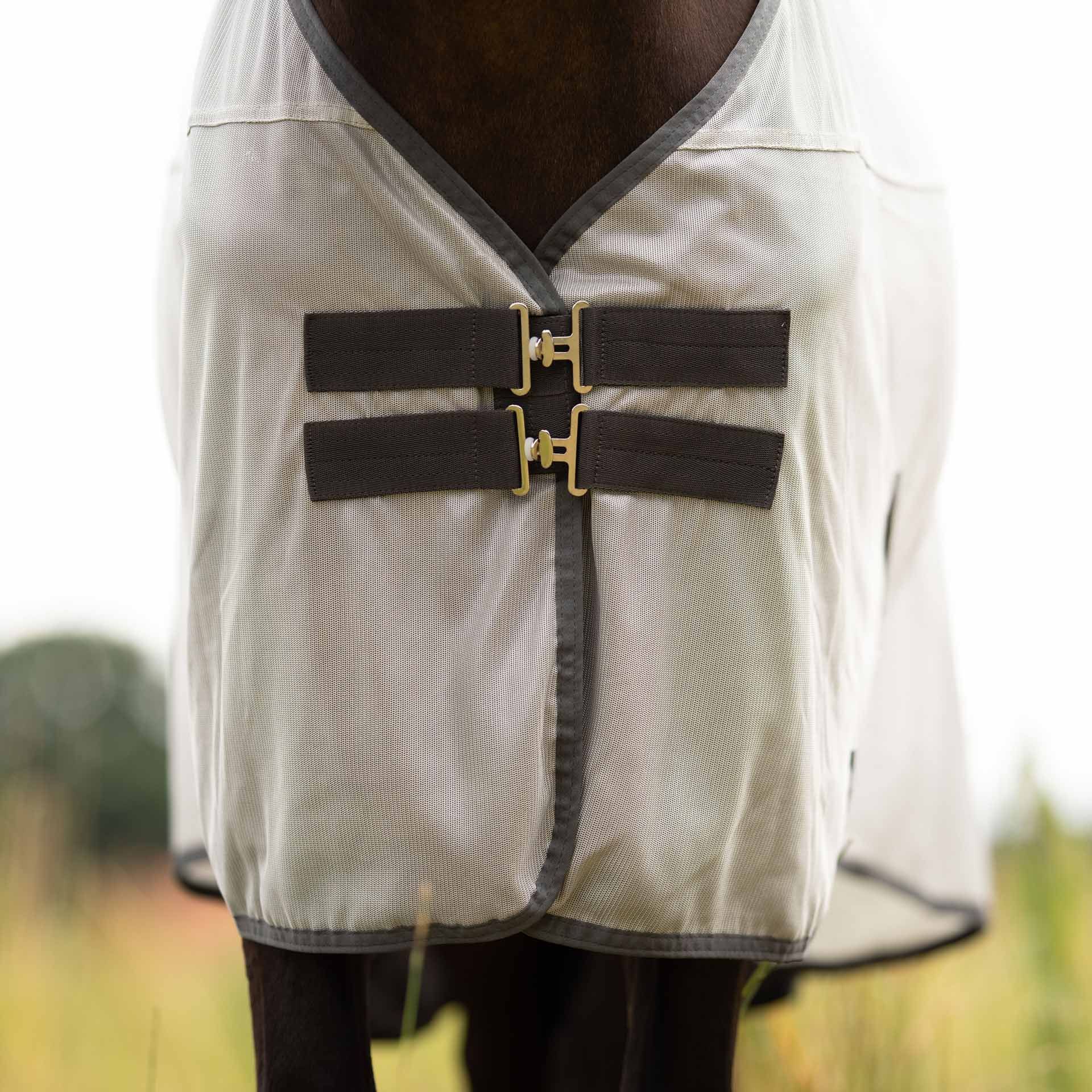 Acest material ușor nu numai că îți protejează eficient calul de insecte, dar este, de asemenea, uscare rapidă și respirabilă. Zona gâtului, coada, pieptul și garreza sunt întărite în continuare cu o acoperire netedă din satin. Această pătură nu numai că garantează confort, dar oferă și toate caracteristicile de care calul tău trebuie să se simtă confortabil în zilele de vară.