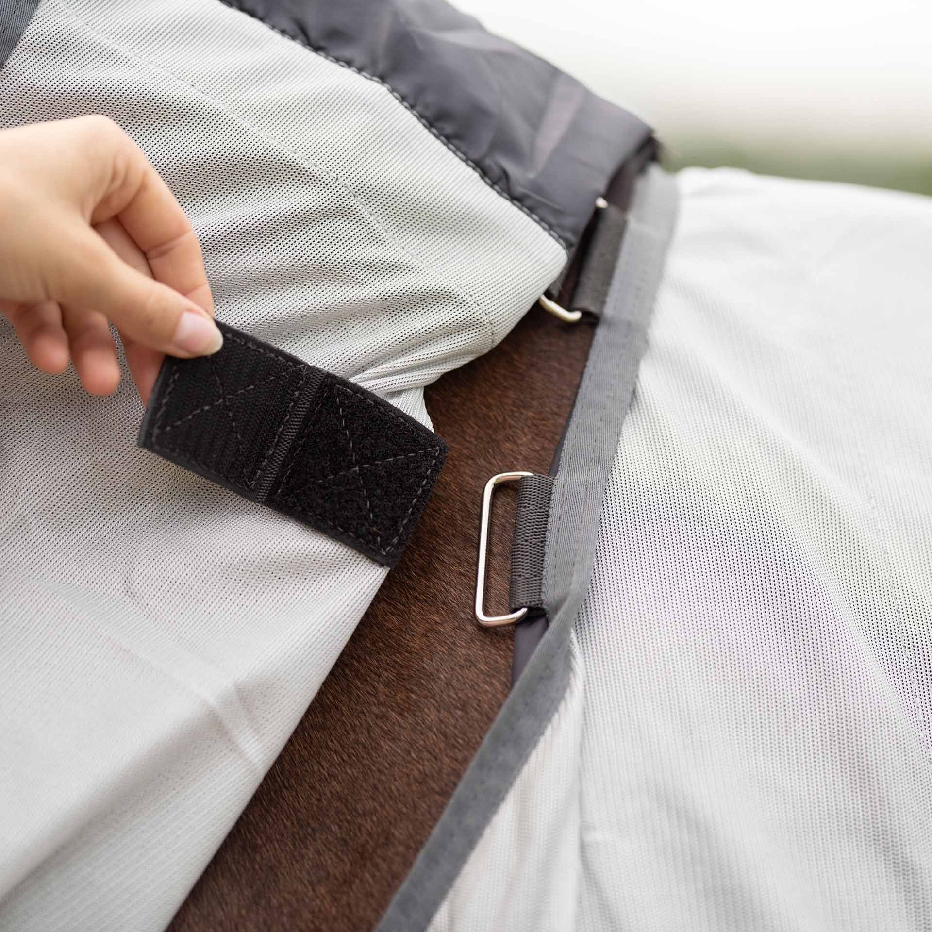 For the final adjustment of a horse blanket, the adjustment options on the product should be used, as incorrect application can lead to damage. Even with optimal adjustment, regular checks of the fit are essential. Check that the blanket fits correctly, the Velcro fasteners are clean (to avoid chafing) and the blanket is intact.