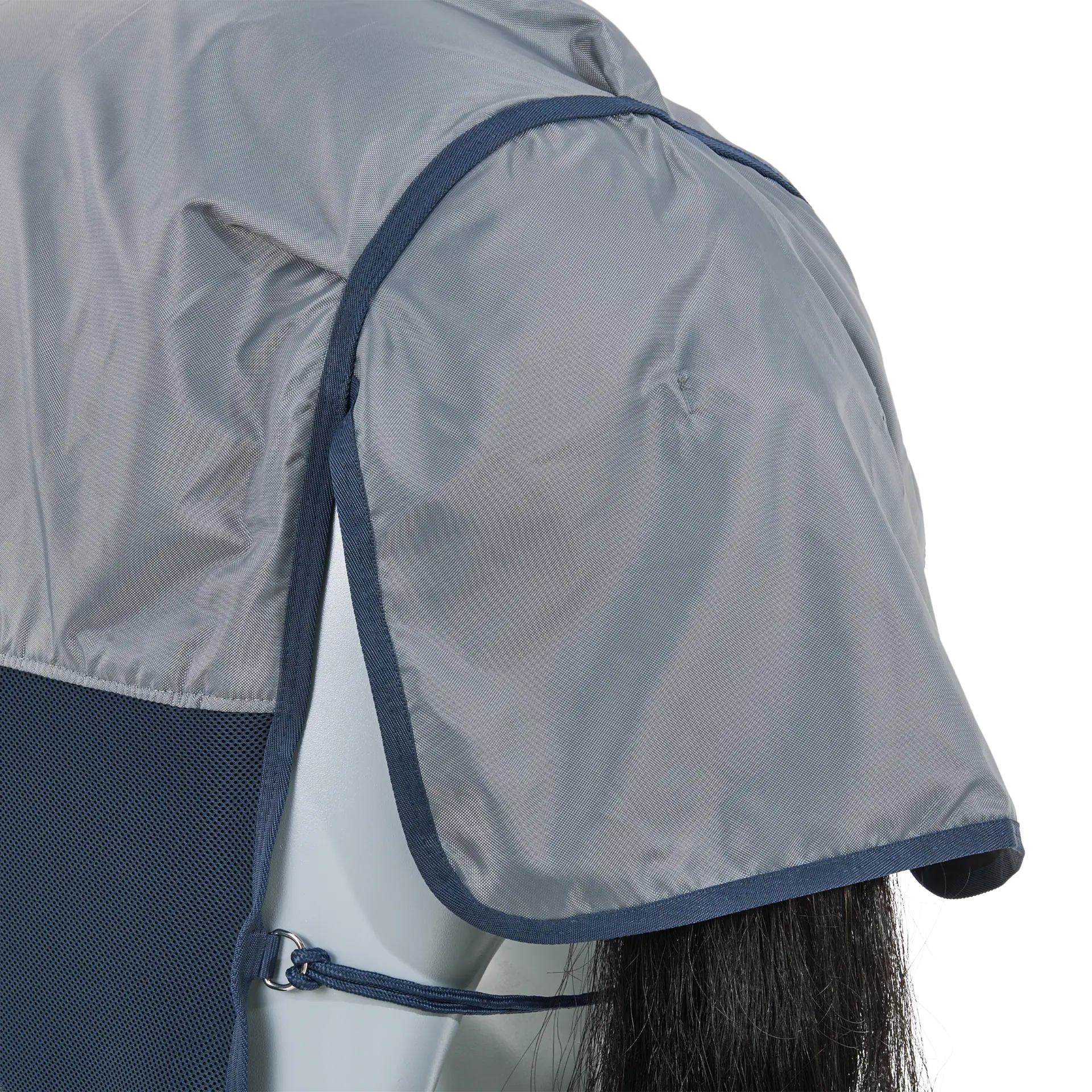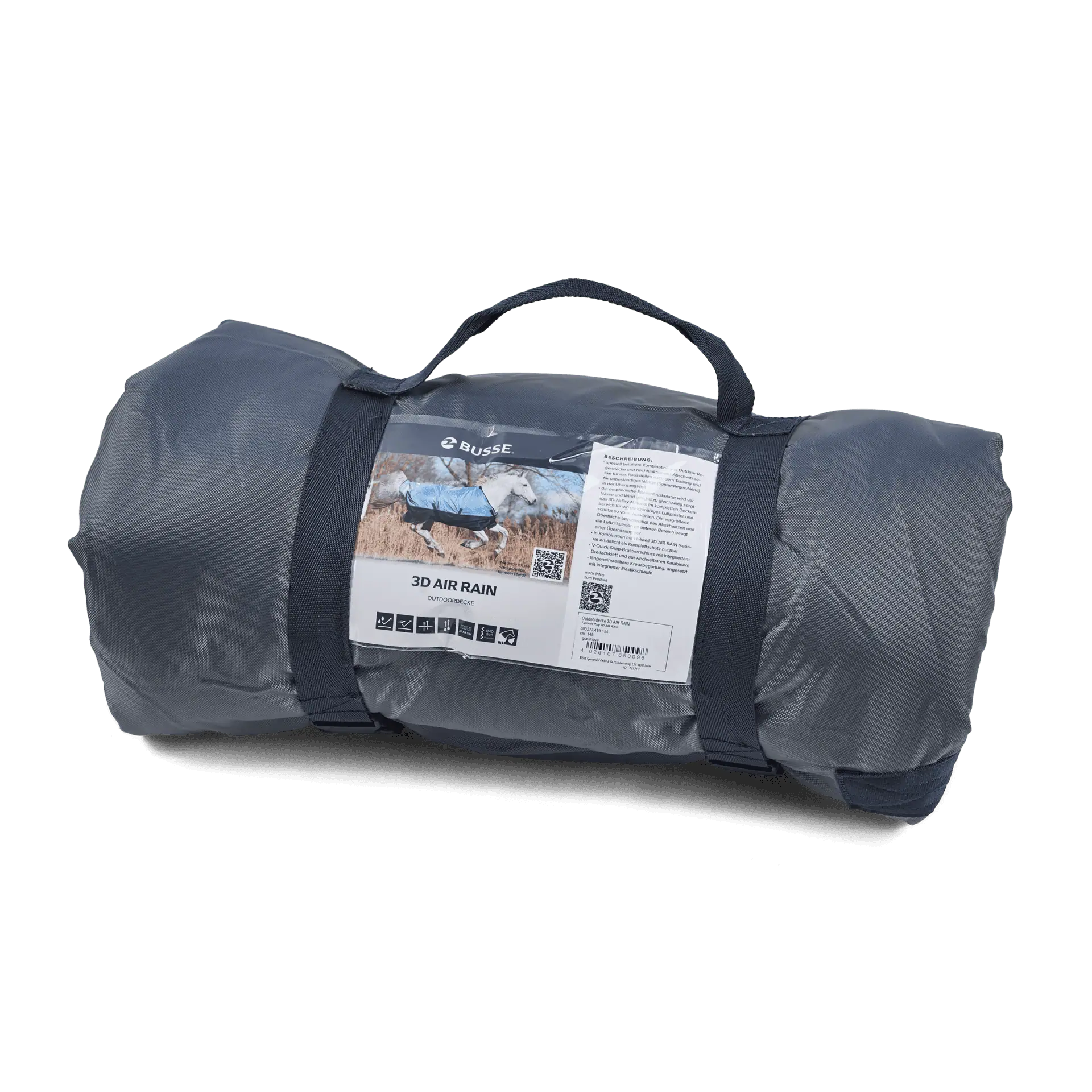 Materialul uscat 3D Air® utilizat la producerea păturii accelerează transportul umidității datorită suprafeței mărită a țesăturii de poliester 3D, permițând o uscare delicată a calului. Combinația cu zona impermeabilă din spate face ca pătura de ploaie de aer 3D să fie foarte eficientă în prevenirea riscurilor de transpirație post -exercițiu. Deși se pare că calul pare uscat după antrenament, cu o pătură tradițională, ar putea începe să transpire din nou, riscând astfel supraîncălzire, răcire și eșecul de a regla climatul corpului.