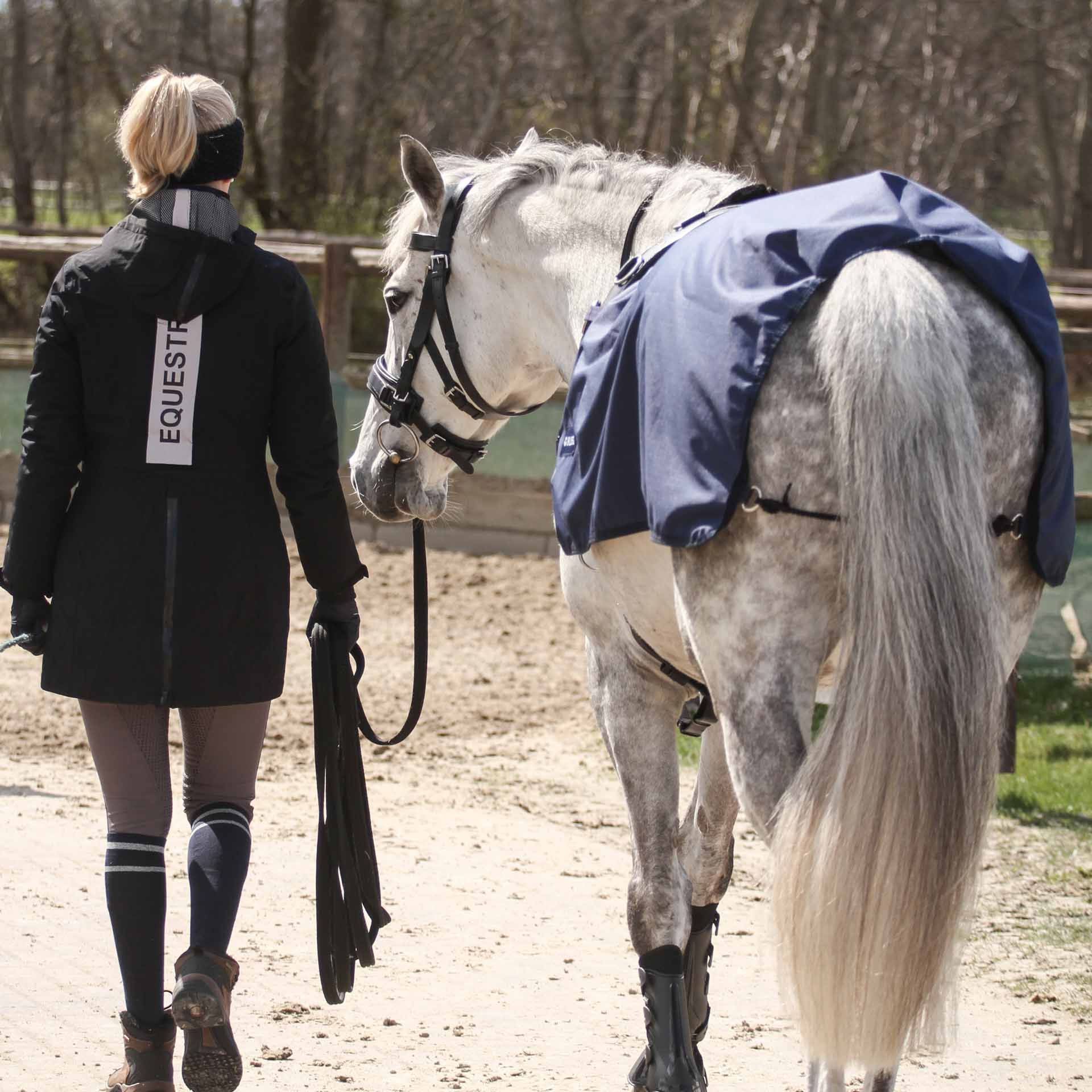 busse acoperit cu ploaie de muncă 50 oferă o protecție optimă împotriva vântului, ploii și frigului în punctele cruciale ale corpului calului în timpul antrenamentului pe pământ sau a muncii în Longia. Ușor de fixat pieptul calului, este în siguranță chiar și atunci când este utilizat într -un ritm susținut.