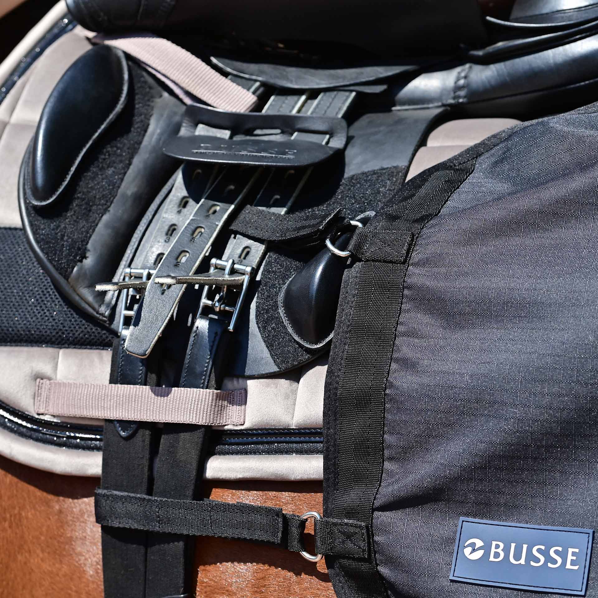 busse acoperit cu ploaie 50 de antrenament este pătura ideală pentru a vă proteja calul de vânt, frig și ploaie în timpul antrenamentului. Această pătură acoperă zonele cruciale ale corpului calului, inclusiv rinichii, cultura și șoldurile și poate fi fixată în siguranță pentru utilizare chiar și cu pași mai mari sau în timpul saltului.