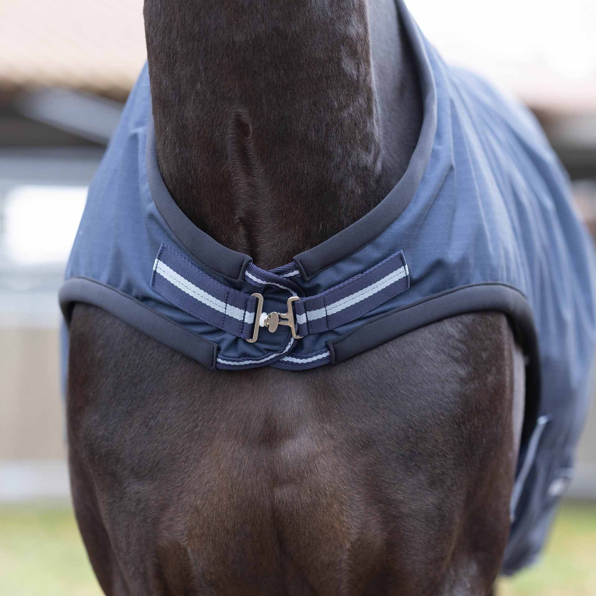 For the final adjustment of a horse blanket, the adjustment options on the product should be used, as incorrect application can lead to damage. Even with optimal adjustment, regular checks of the fit are essential. Check that the blanket fits correctly, the Velcro fasteners are clean (to avoid chafing) and the blanket is intact.