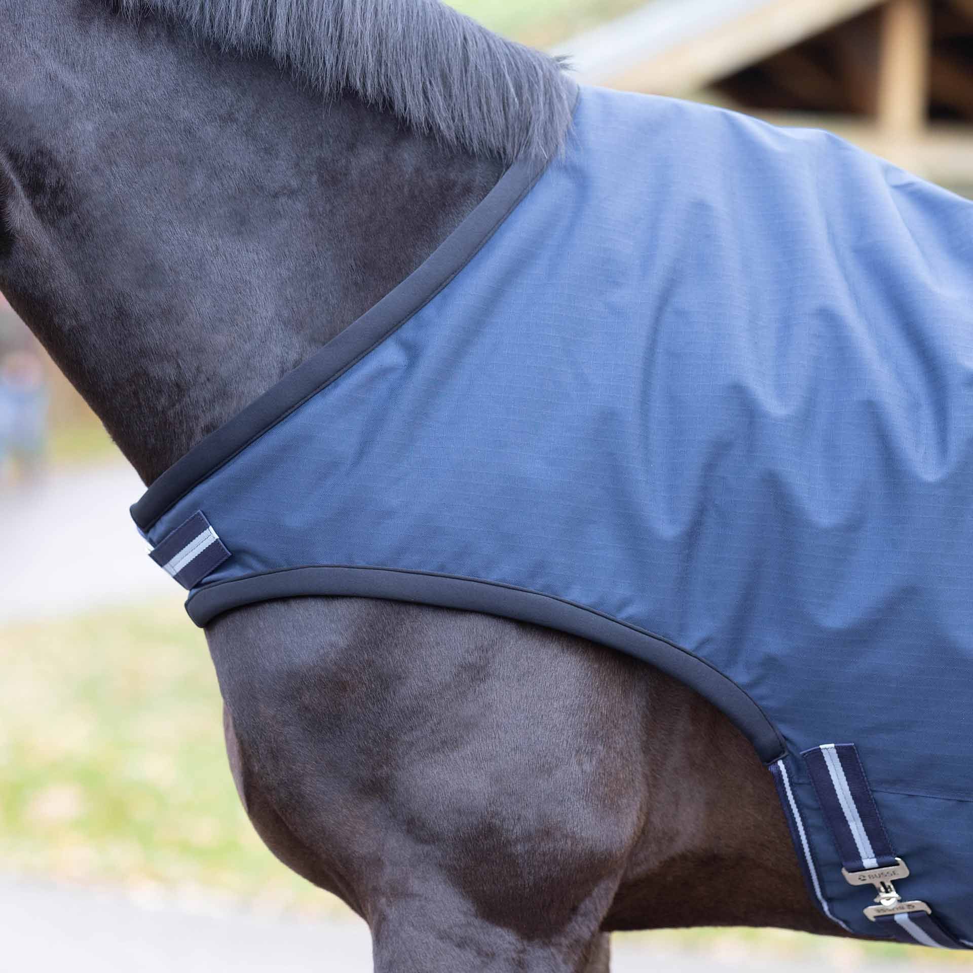Depending on the weather conditions, the right blanket model should be chosen to protect the horse from overheating or cold. Waterproofing can be crucial if necessary - you can find information on this in our guides. When kept in groups, the ideal fit of the blanket can be jeopardized by members of the same species. We recommend adjusting the ceiling control distances accordingly.