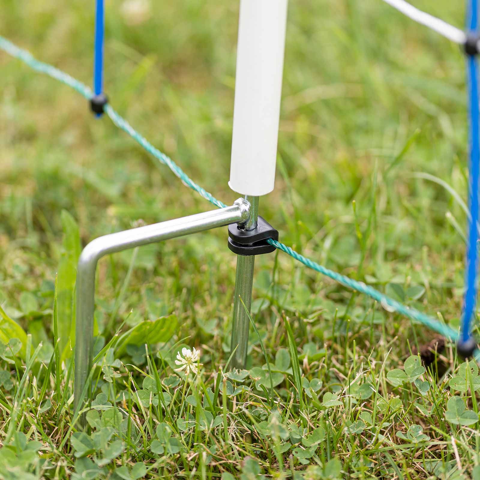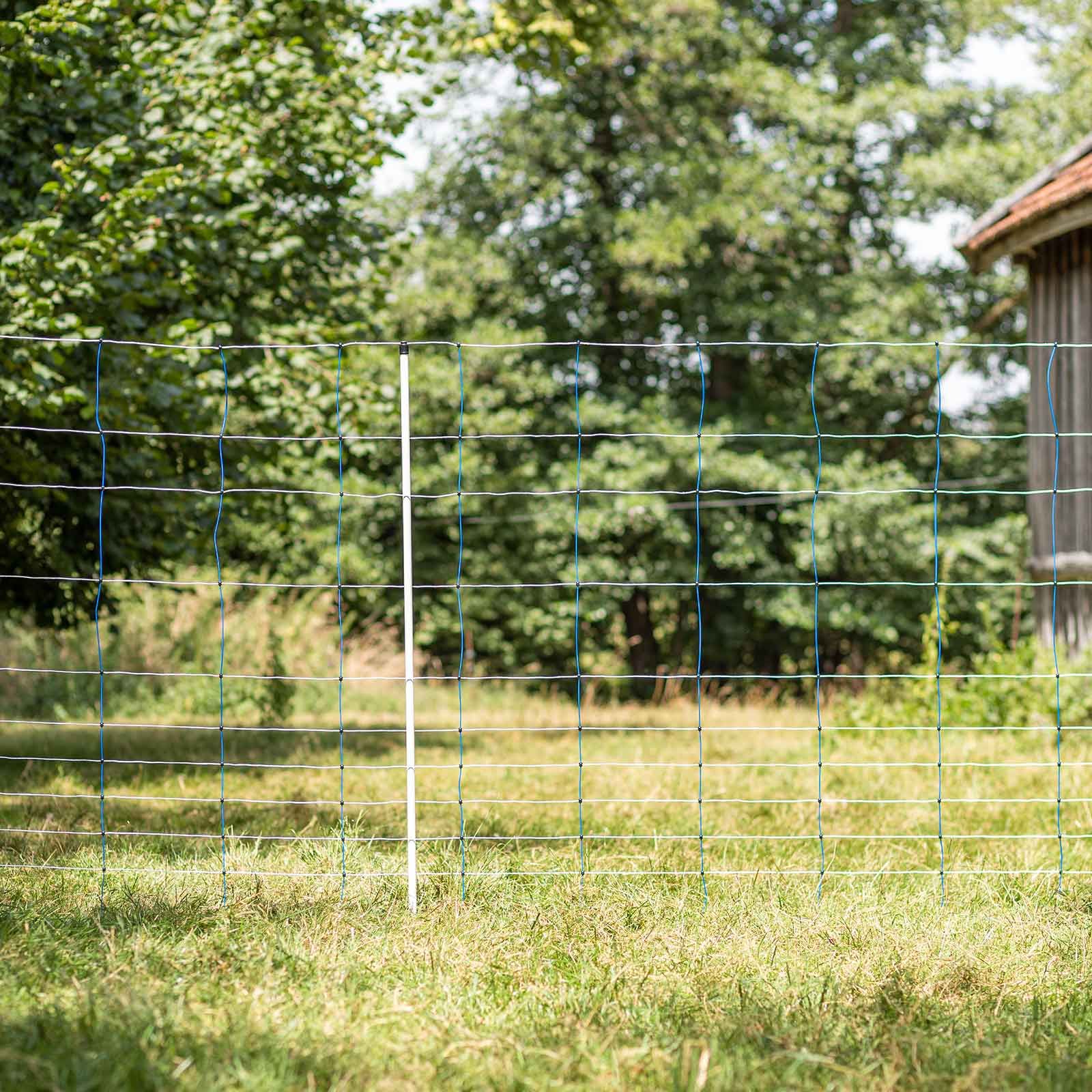 Rezistența acestei rețele se datorează mize extra robuste în PVC cu diametrul de 19 mm, cu un vârf dublu de oțel galvanizat pentru o poziție sigură și stabilă. Datorită înălțimii sale, plasa este ideală și ca barieră pentru cai, ponei, măgari sau alpaca. Ajutorul important provine din parantezele verticale atemporale care garantează poziționarea stabilă în soluri accidentale sau deluroase.