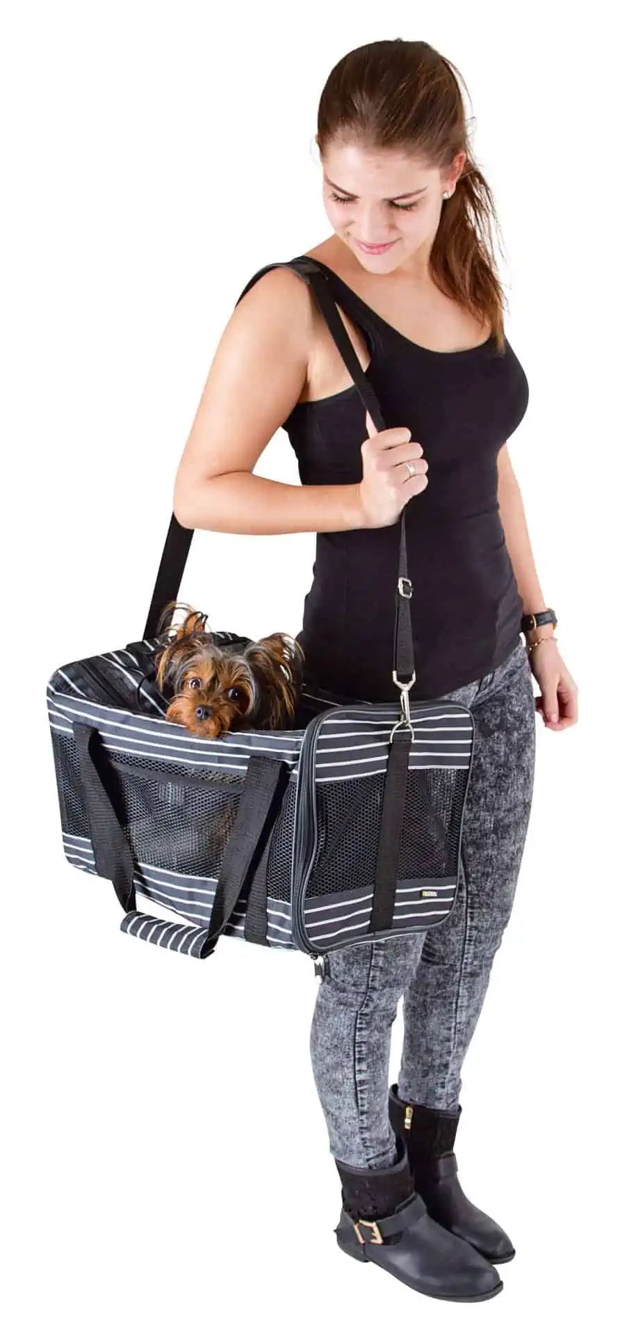 Sac de transport pentru câini Cuba 40x26x28 cm, negru/alb