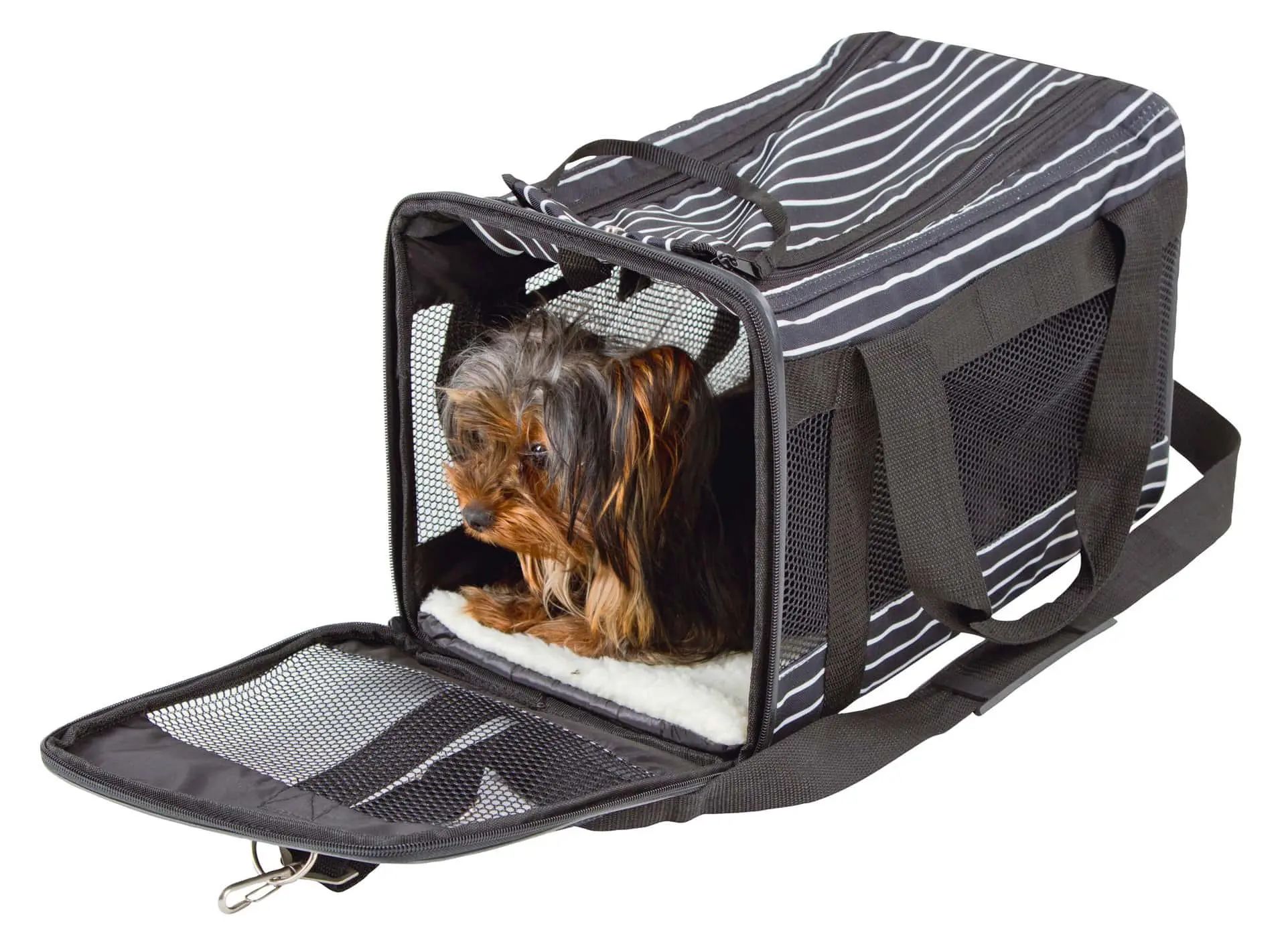 pungă de purtător Cuba 40x26x28cm, negru/alb - confort și siguranță pentru animalul dvs. de companie în călătorie