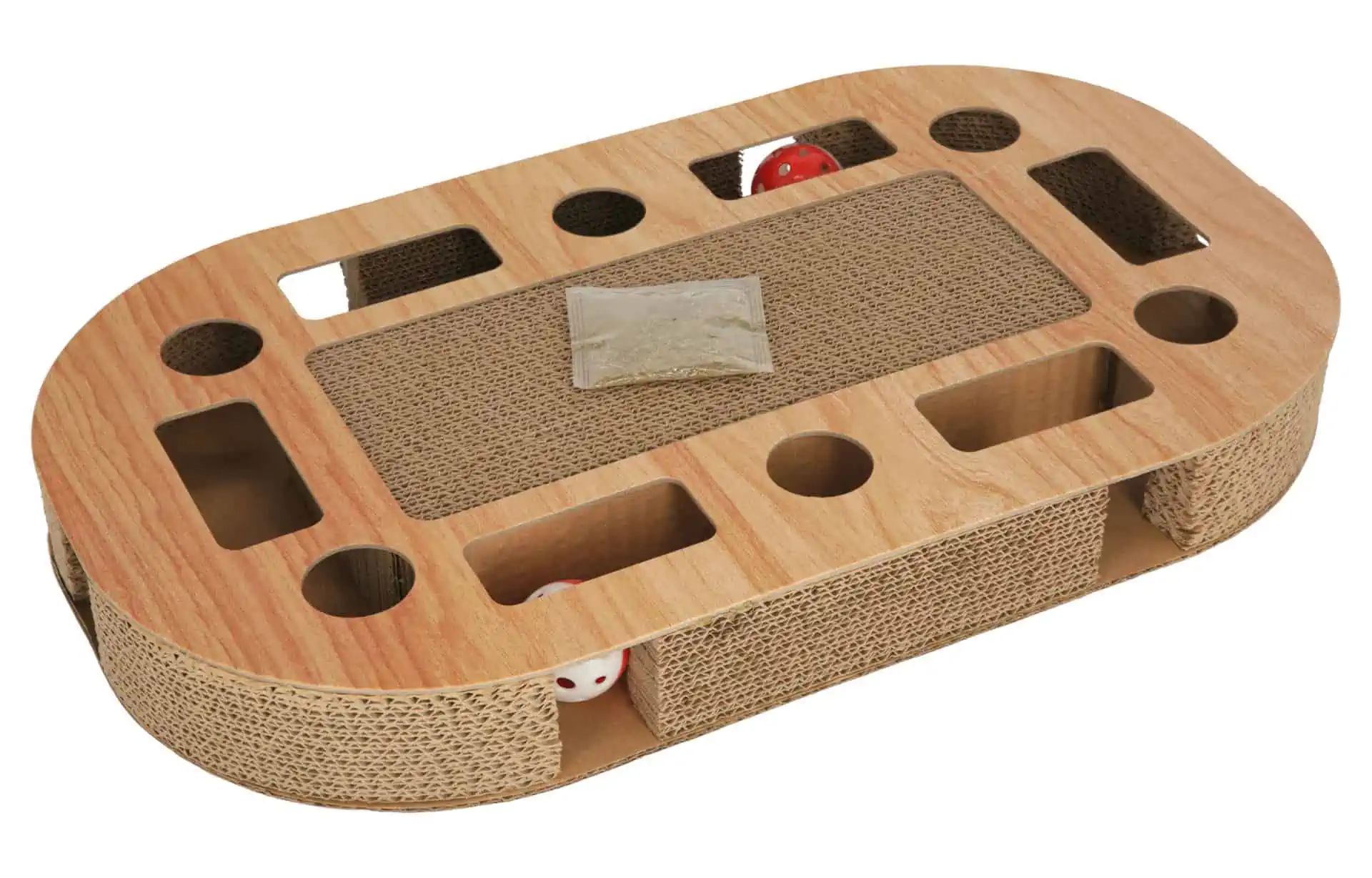The Cat Scratch Board Ovalo este o jucărie multifuncțională care nu numai că vă ajută pisica să își trăiască instinctele naturale de zgârieturi, dar le menține și pentru ore întregi. Bile de plastic construite cu clopote cer pisicii să se joace și să se zgârie și să ajute la promovarea sănătății fizice și mentale.