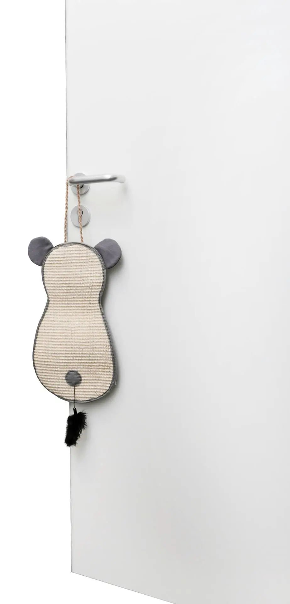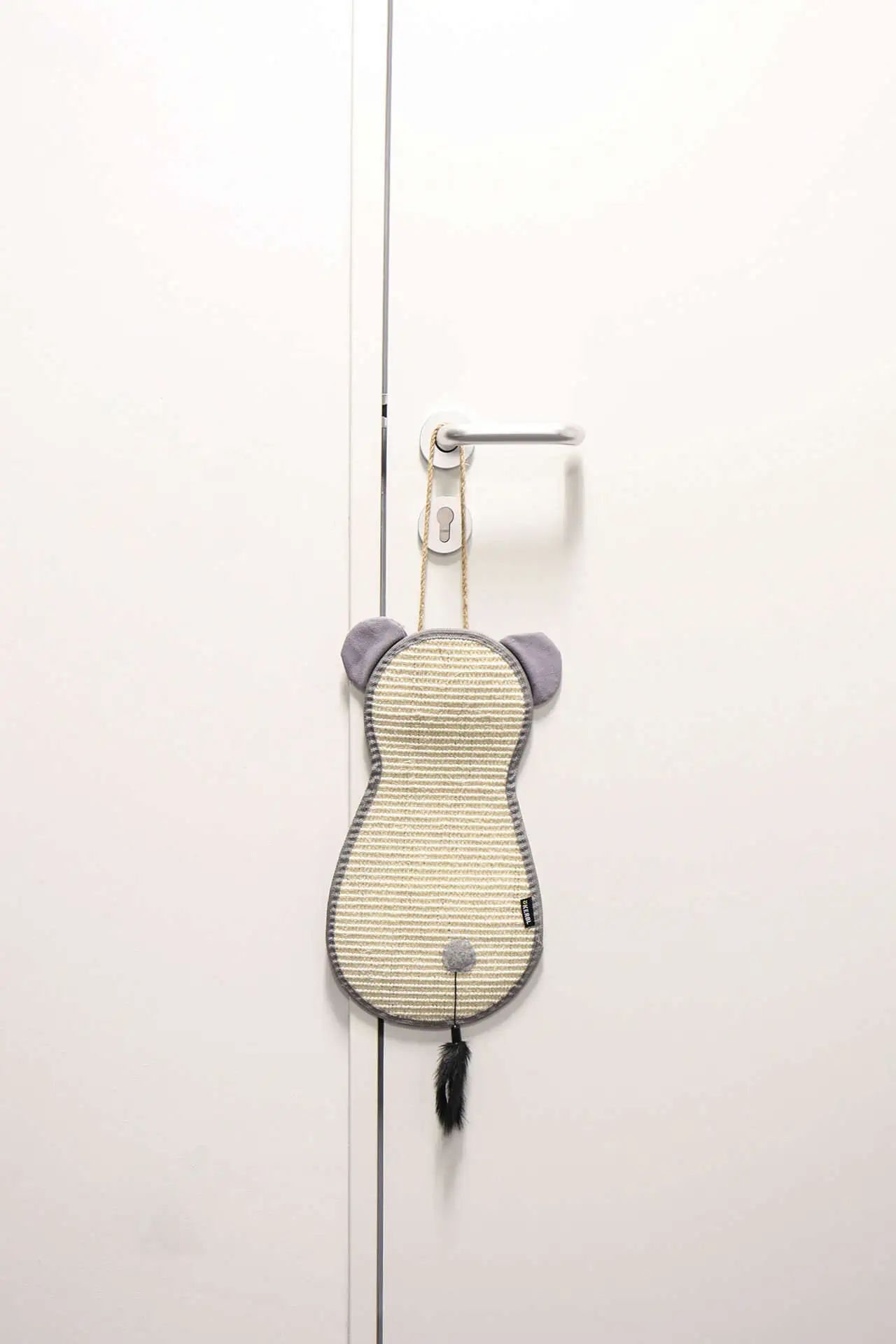 Covorașul de zgârieturi pentru mânerul ușii de la Sisal vine cu un cablu de fixare pentru mânerul ușii și un arc de jucărie care oferă distracție și interacțiune suplimentară pentru pisica ta.