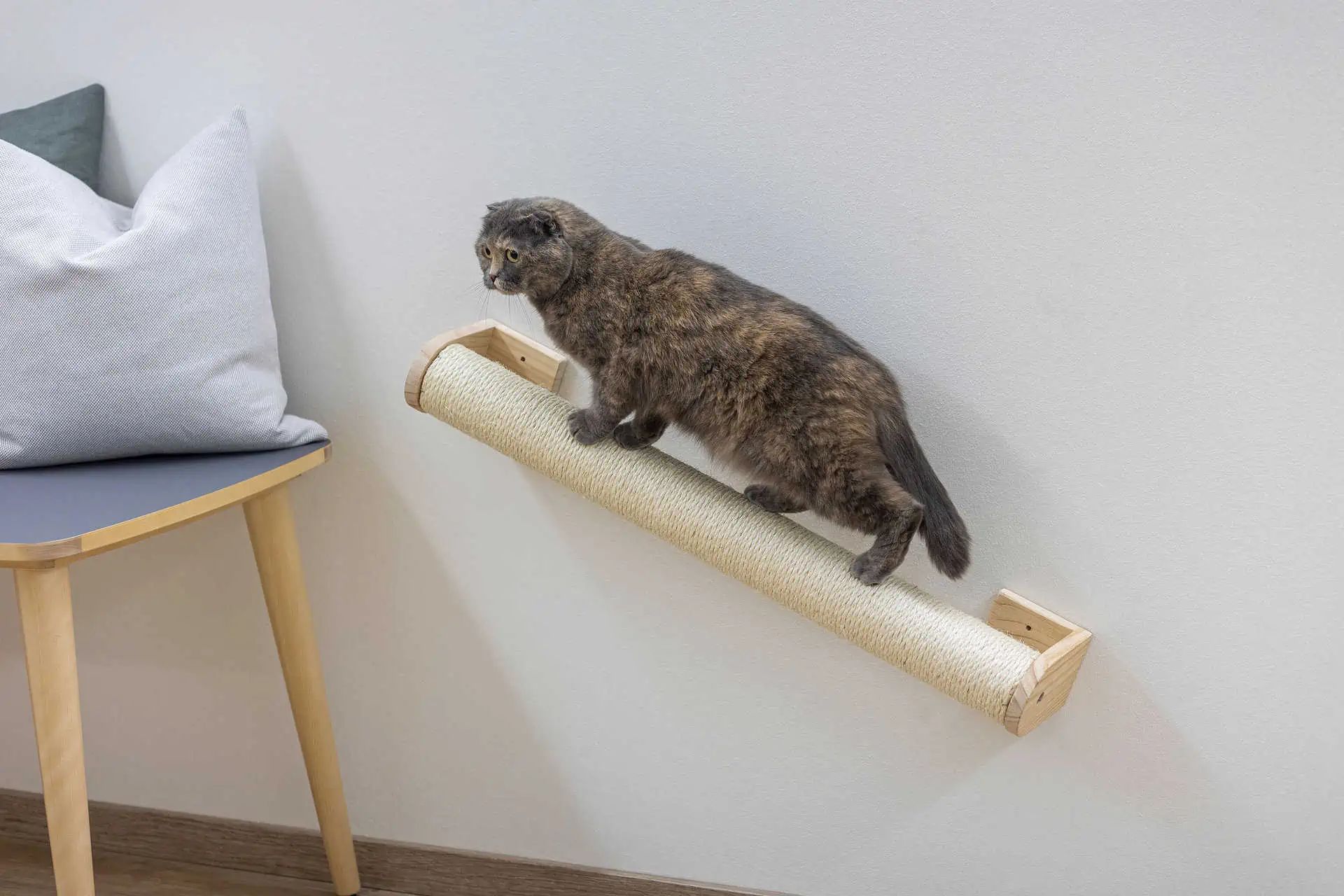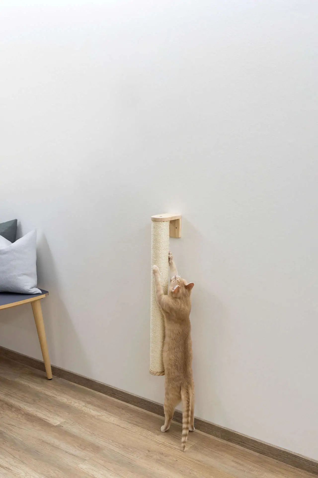 stâlpul de zgârieturi de perete este acoperit cu frânghie naturală, care oferă o suprafață remarcabilă pentru zgârieturi și contribuie la sănătatea ghearelor pisicii tale. Poate fi atașat individual pe perete, fie că este vertical sau orizontal și oferă astfel flexibilitate în adaptarea la designul său interior.
