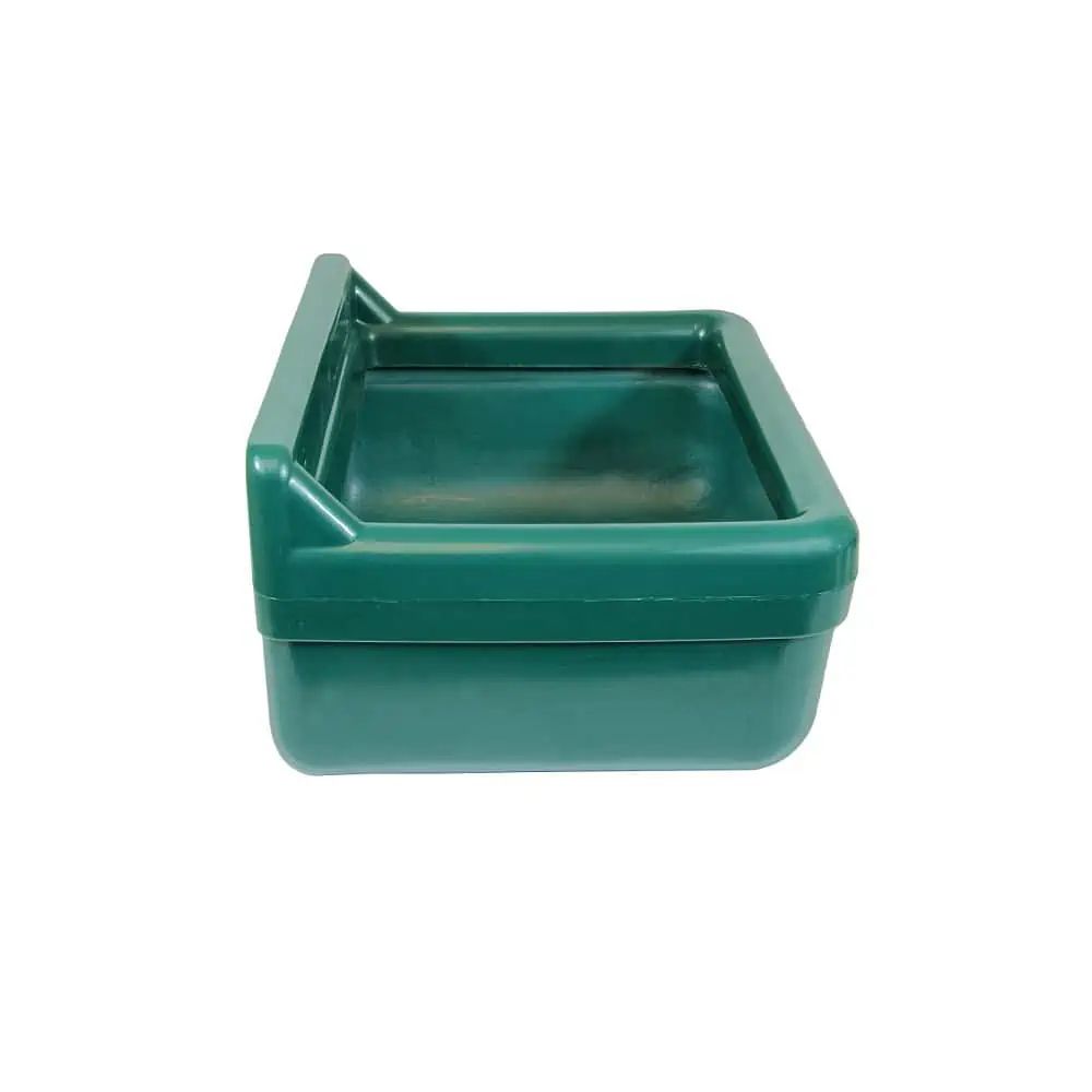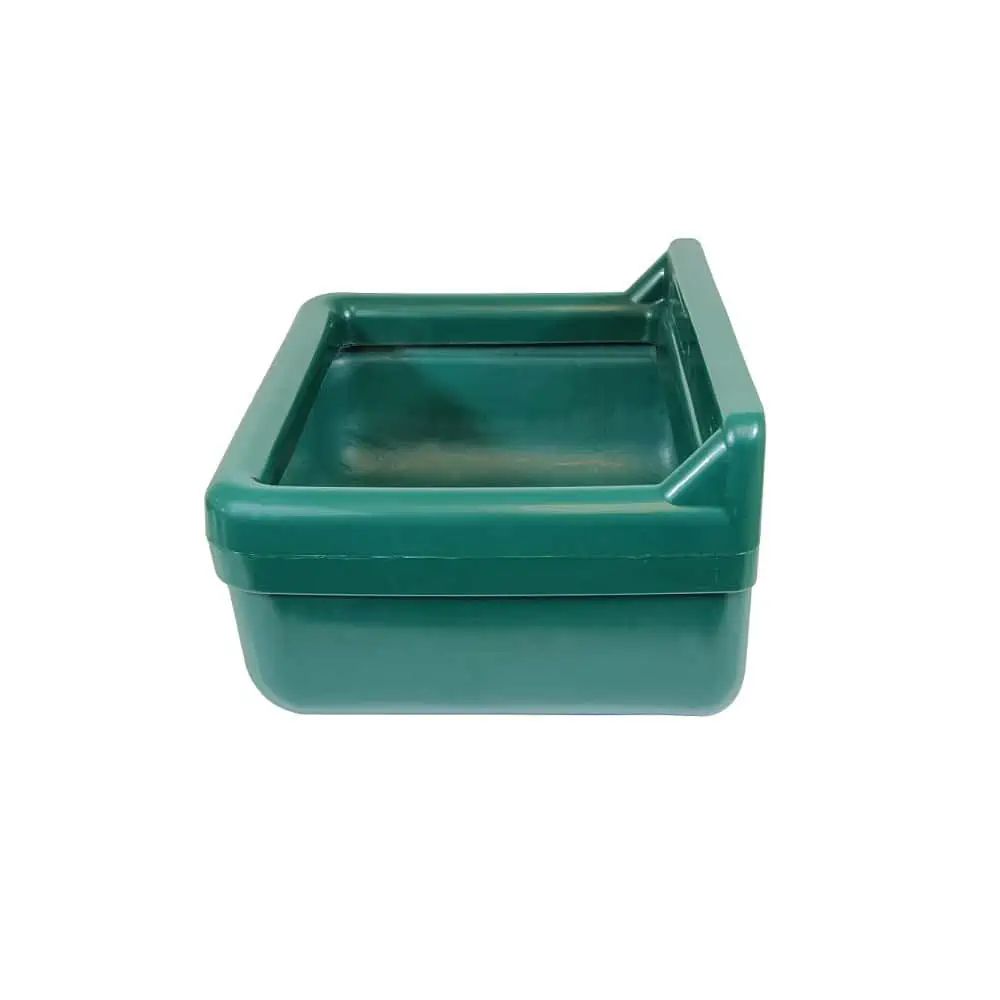 Acest jgheab de hrănire stabil din plastic deosebit de robust este potrivit atât pentru cai, cât și pentru vite. Are o margine de economisire a hranei și un dop de ieșire, ceea ce îl face ușor de curățat. Jgheabul are o latime de 500 mm, o adancime de 380 mm si o inaltime de 290 mm. Capacitatea jgheabului este de 24 de litri și cântărește 3,3 kg. Culoare: verde.