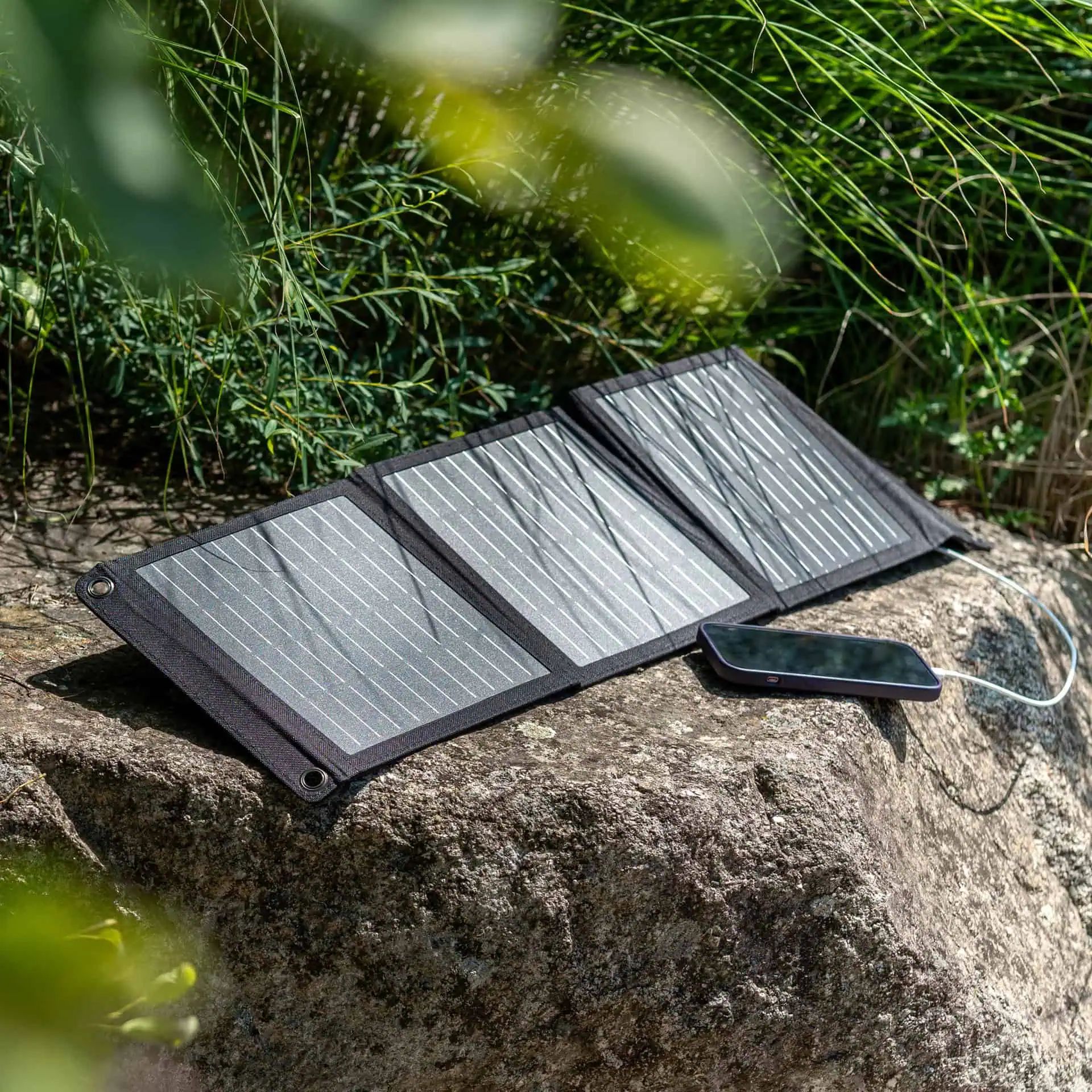 Equipped with 2 USB ports, the solar panel allows you to charge two devices at the same time. The 10,000 mAh lithium polymer power bank reliably supplies your devices with energy, even when the sun is not available.