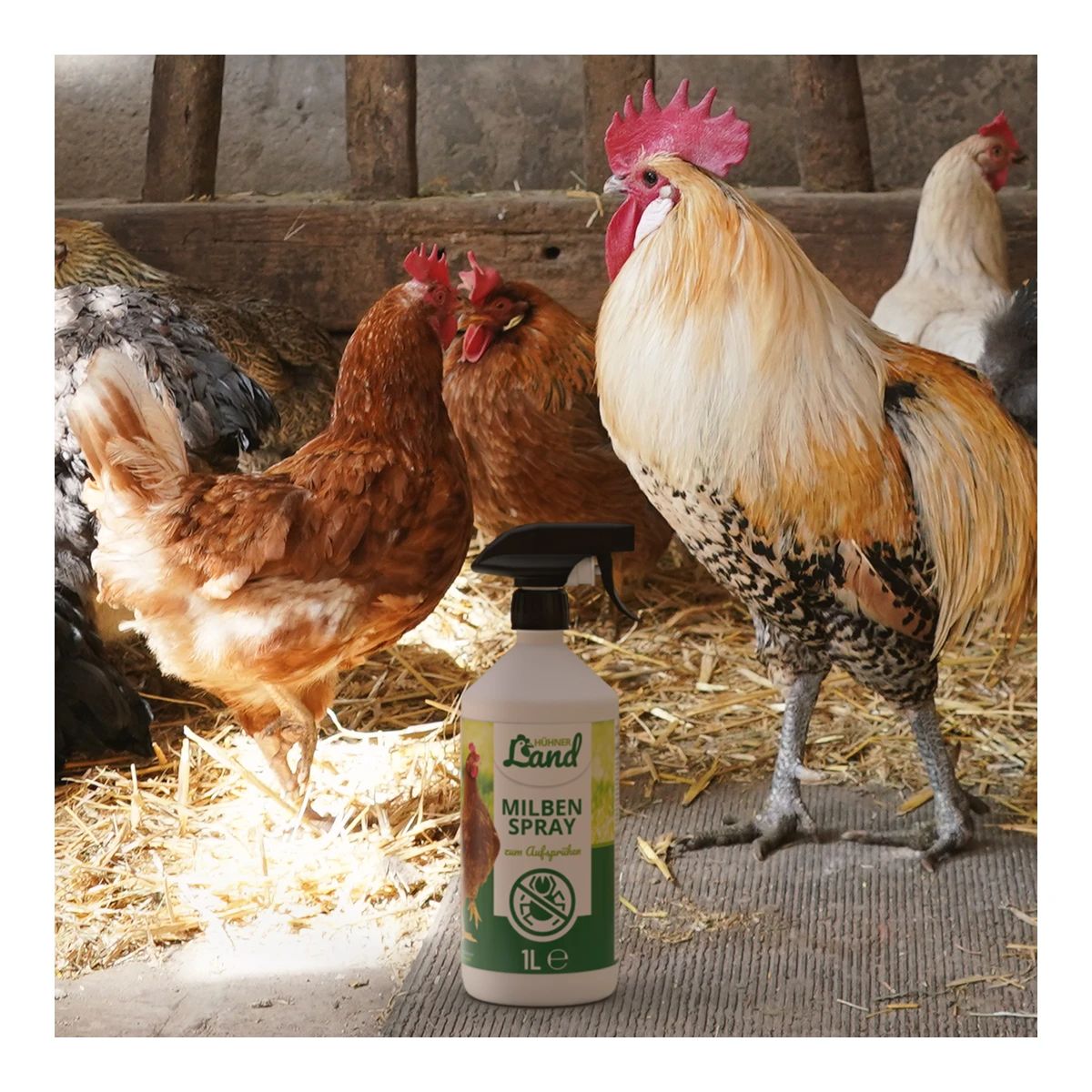 Sprayul pe bază de apă (dem.), ulei de lămâie, eucalipt, geraniol și solubilizanți este potrivit în special pentru crescătorii de pui care se bazează pe metode naturale și eficiente de combatere a dăunătorilor.