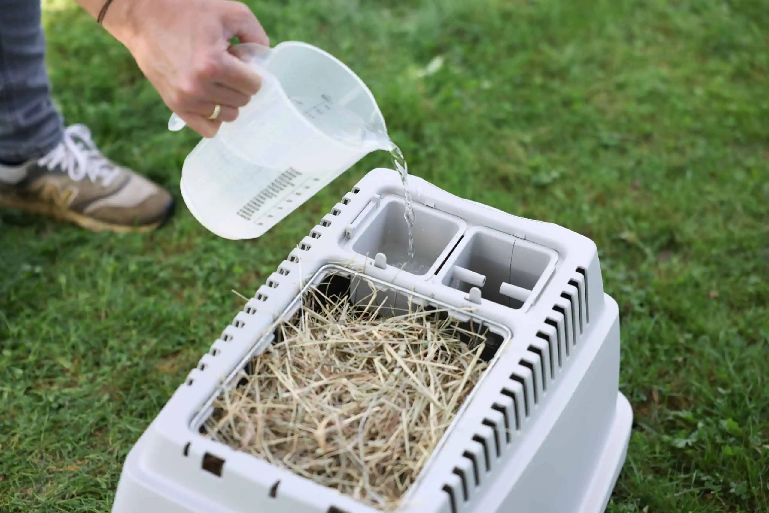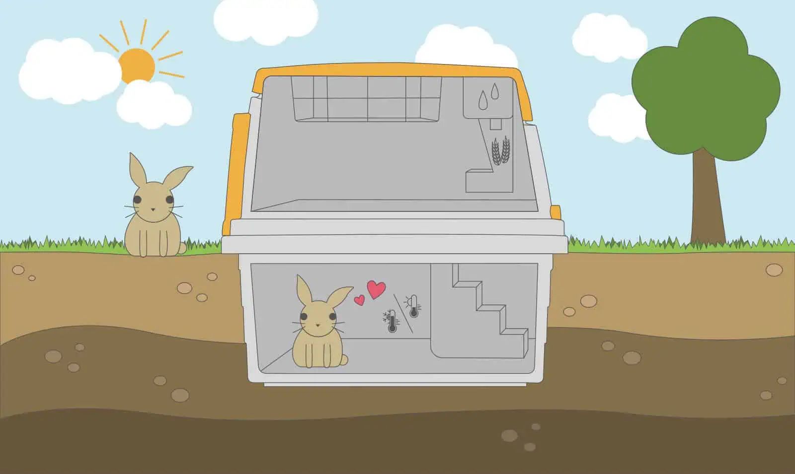 This 3-in-1 product impresses with its versatility. It can serve as a burrow and shelter but also as a transport box for on the go. Above all, the integrated hay rack, water, and food dispenser ensure that the rabbits are well taken care of even over longer periods. To meet the demands of a natural habitat, the product features two up/down entrances that prevent pressure within the burrow and create a harmonious atmosphere.