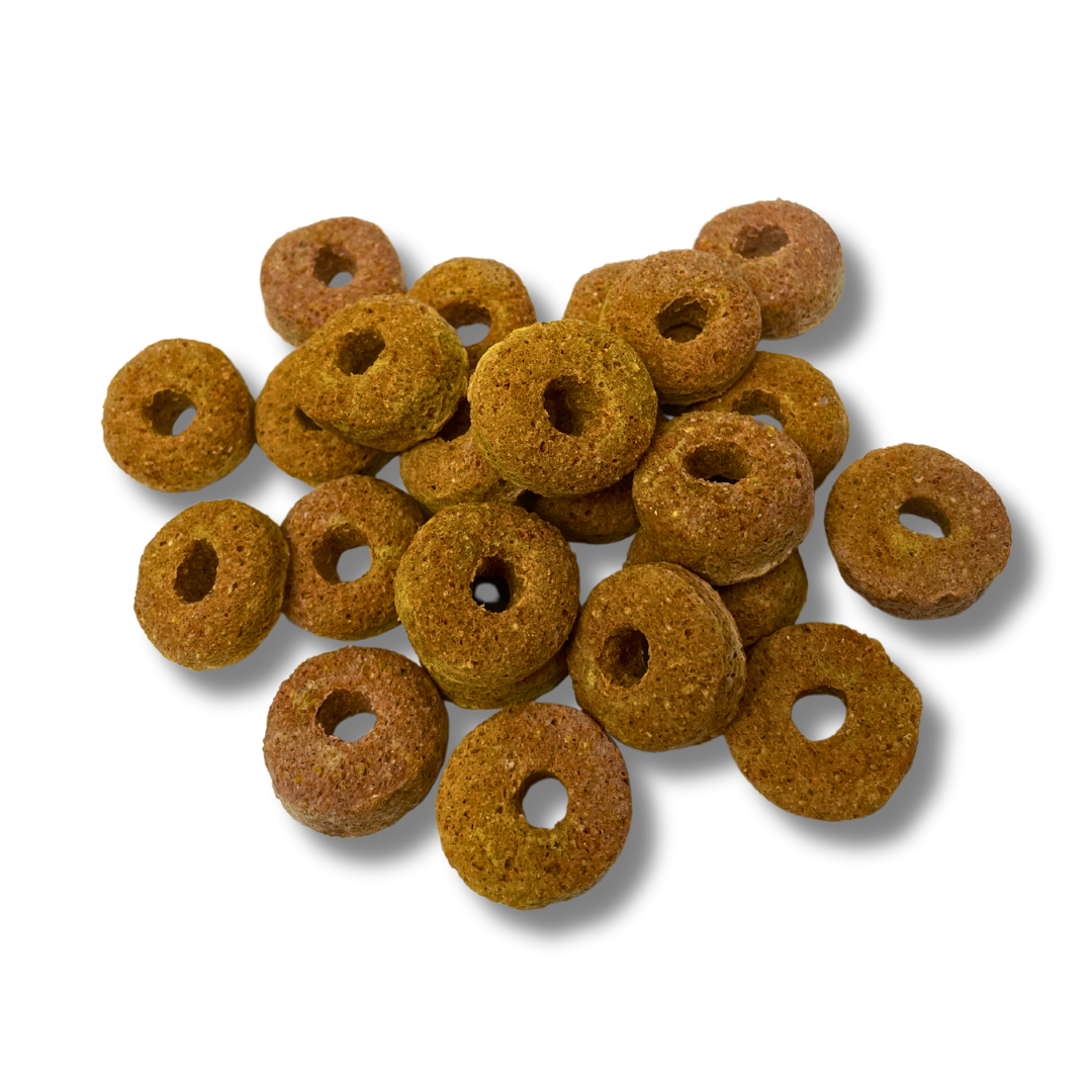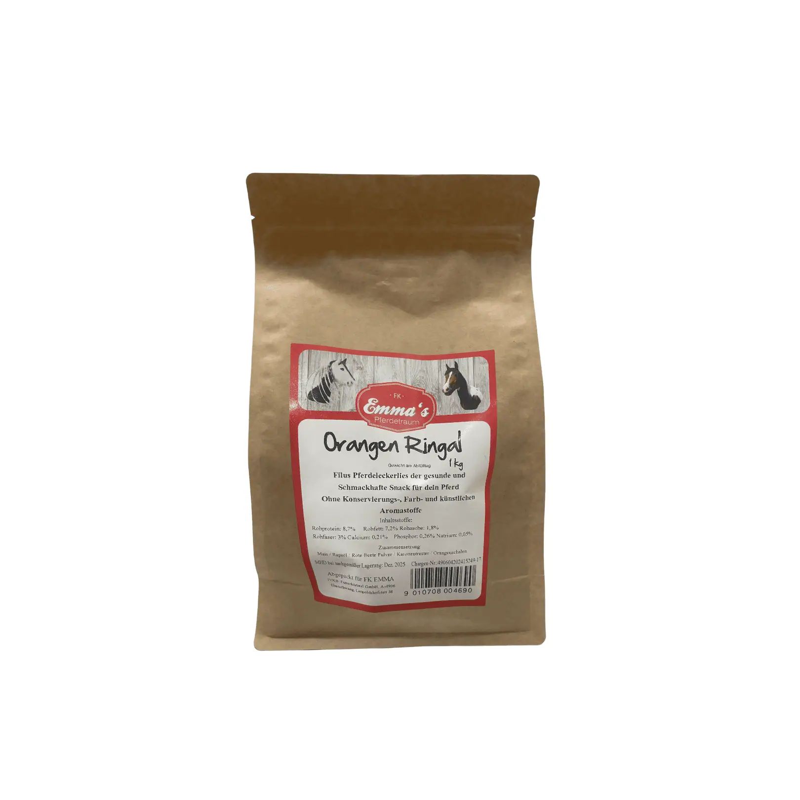 Emma's Horse Treats Orange Rings are ideal for anyone who values healthy nutrition and quality. The treats, measuring approx. 3 x 1 cm, are not only convenient but also particularly flavorful. They are perfect as a reward or small snack in between meals. The special blend of corn, rapeseed oil, carrot pomace, orange peels, and beetroot powder gives these treats an unmistakable taste and makes them especially attractive.
