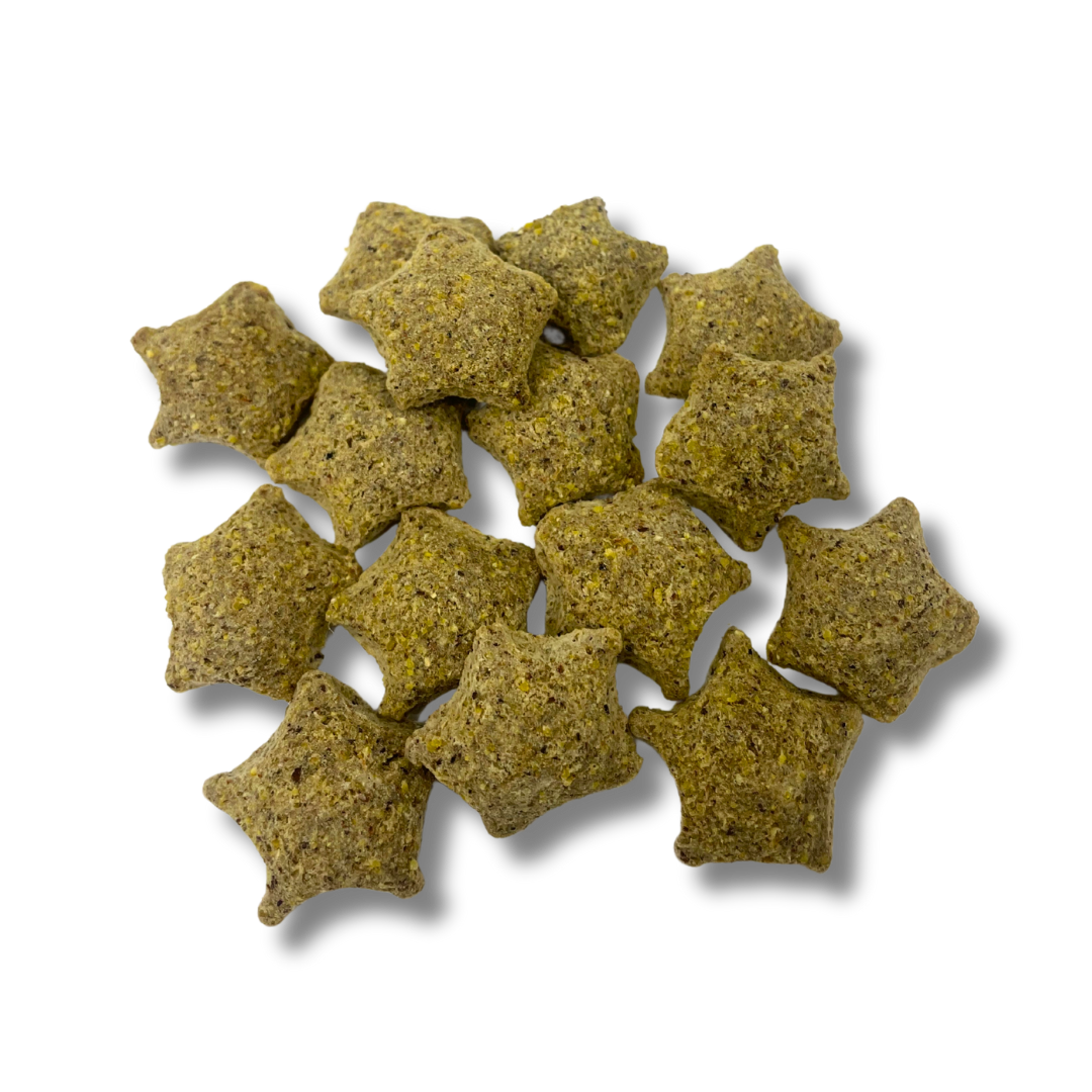 Emma's Kiwi Star Horse Treats are the perfect reward for your horse. These treats are made from 100% natural ingredients and are free from artificial colors and preservatives as well as flavor enhancers. With a highly intense flavor and a very high acceptance among horses, they bring joy and bright eyes. Produced in Germany, in a small mill, we guarantee the highest quality and purity without any chemicals.
