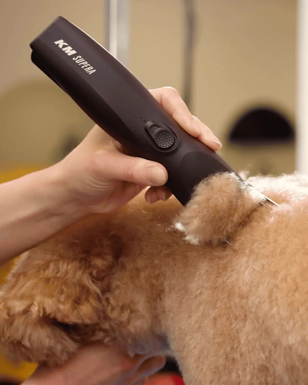 Der bürstenlose Motor der Wahl KM Supera bietet eine beeindruckende Leistung mit automatischer Drehzahlregelung. Mit Geschwindigkeiten von bis zu 3700 U/min sorgt er für eine gründliche und schnelle Schur, selbst bei dichtem Fell. Diese Kraft ermöglicht eine effizientere Schur und minimiert das Risiko von Hautirritationen.