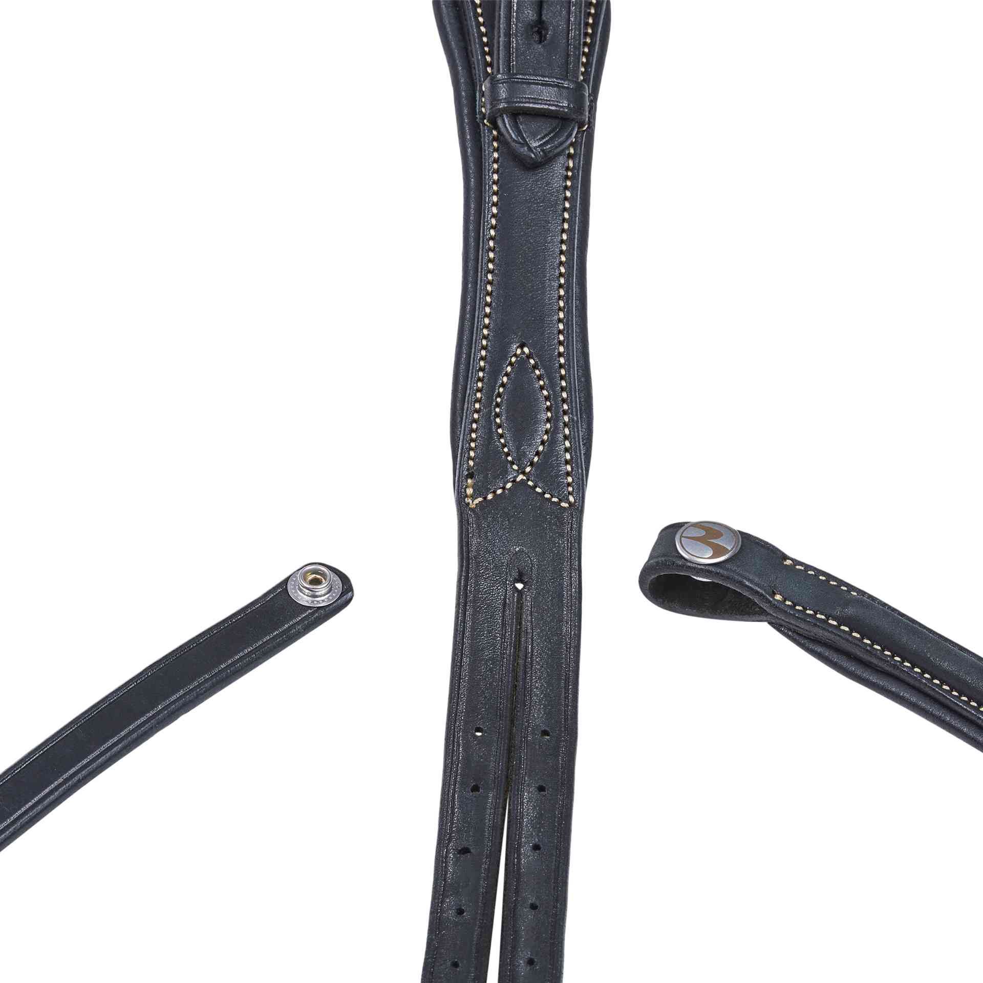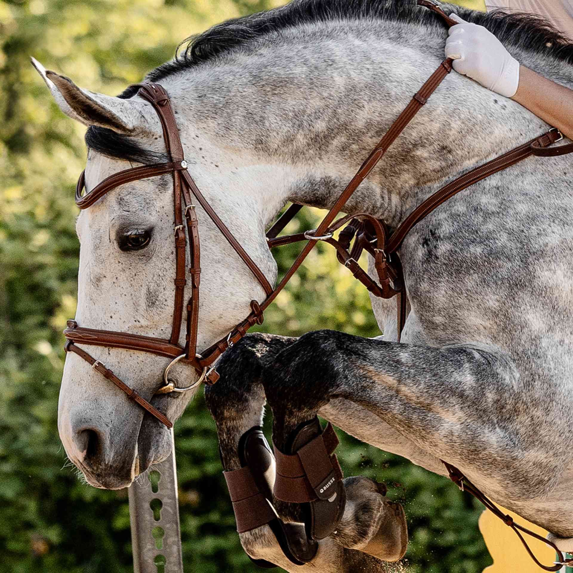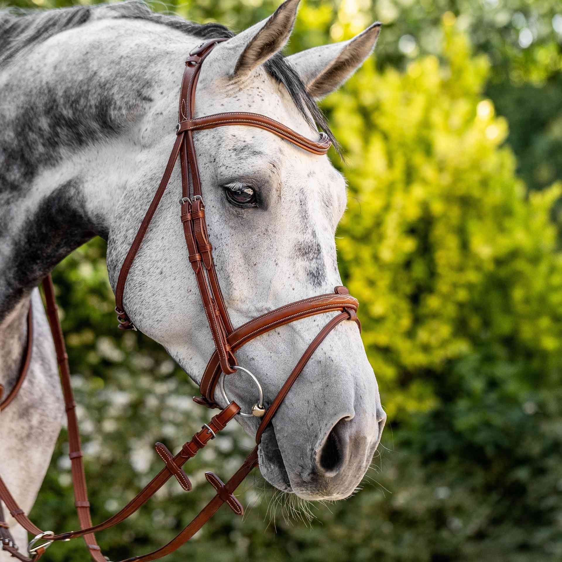 Regular care with suitable leather care products keeps the leather supple and extends the life of the bridle. Avoid contact with water and thoroughly dry the leather after each use.