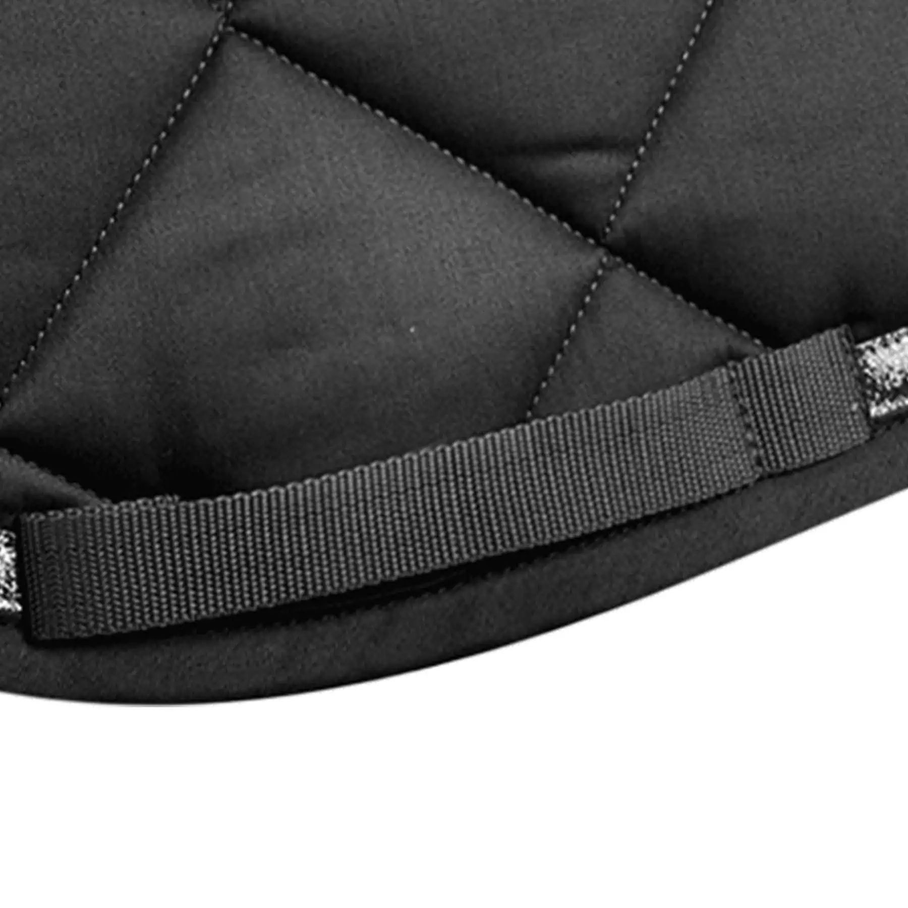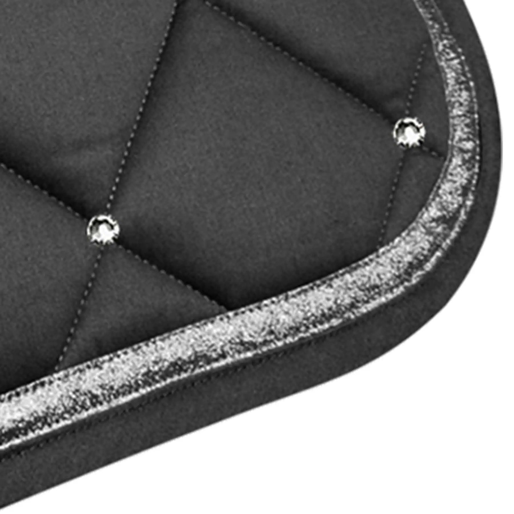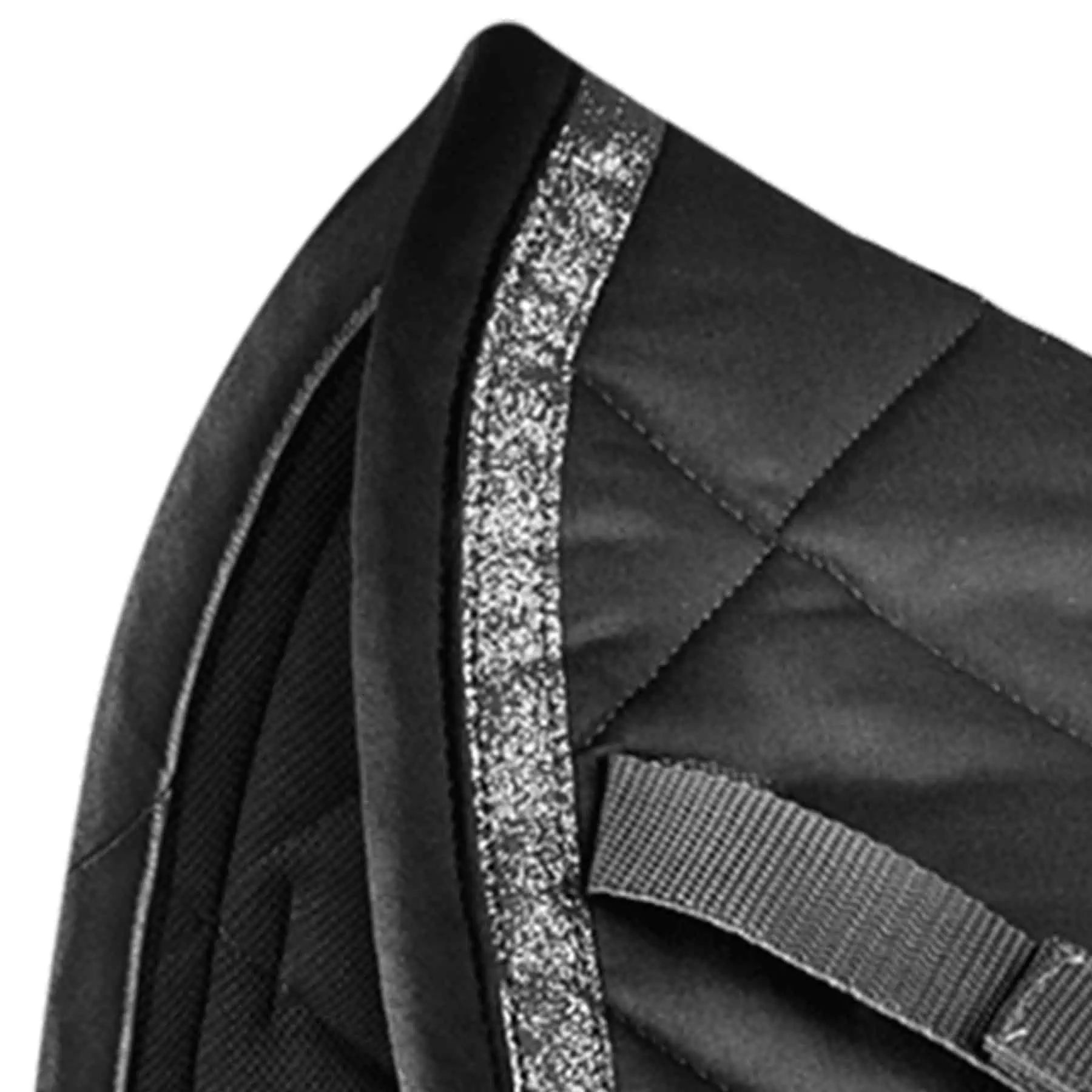 Classy, premium saddle pad featuring glitter trim. The additional rhinestones make this saddle pad a real eye-catcher. The functional underside ensures optimum breathability. 8mm foam and 250 g/m² of padding ensure ideal pressure distribution.
