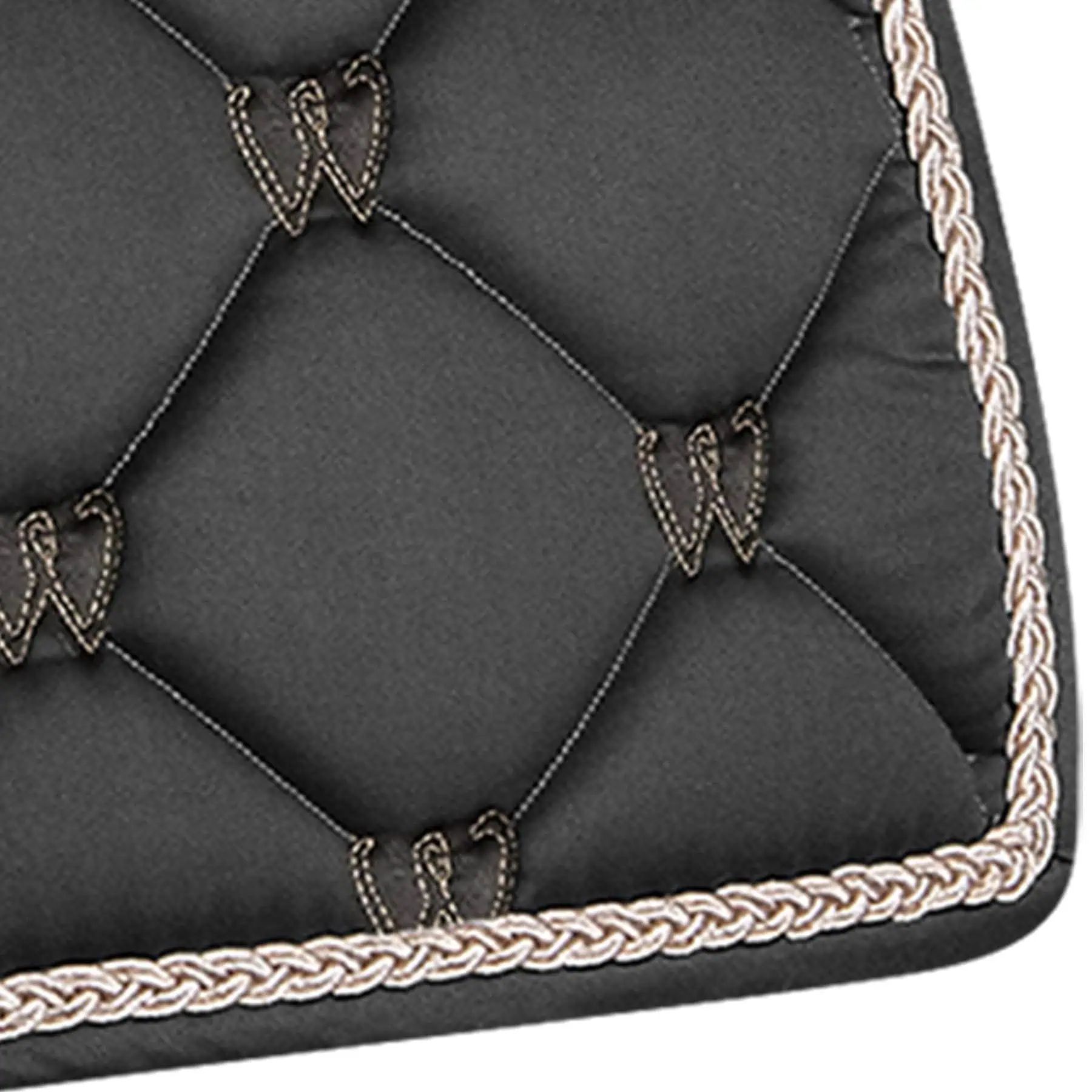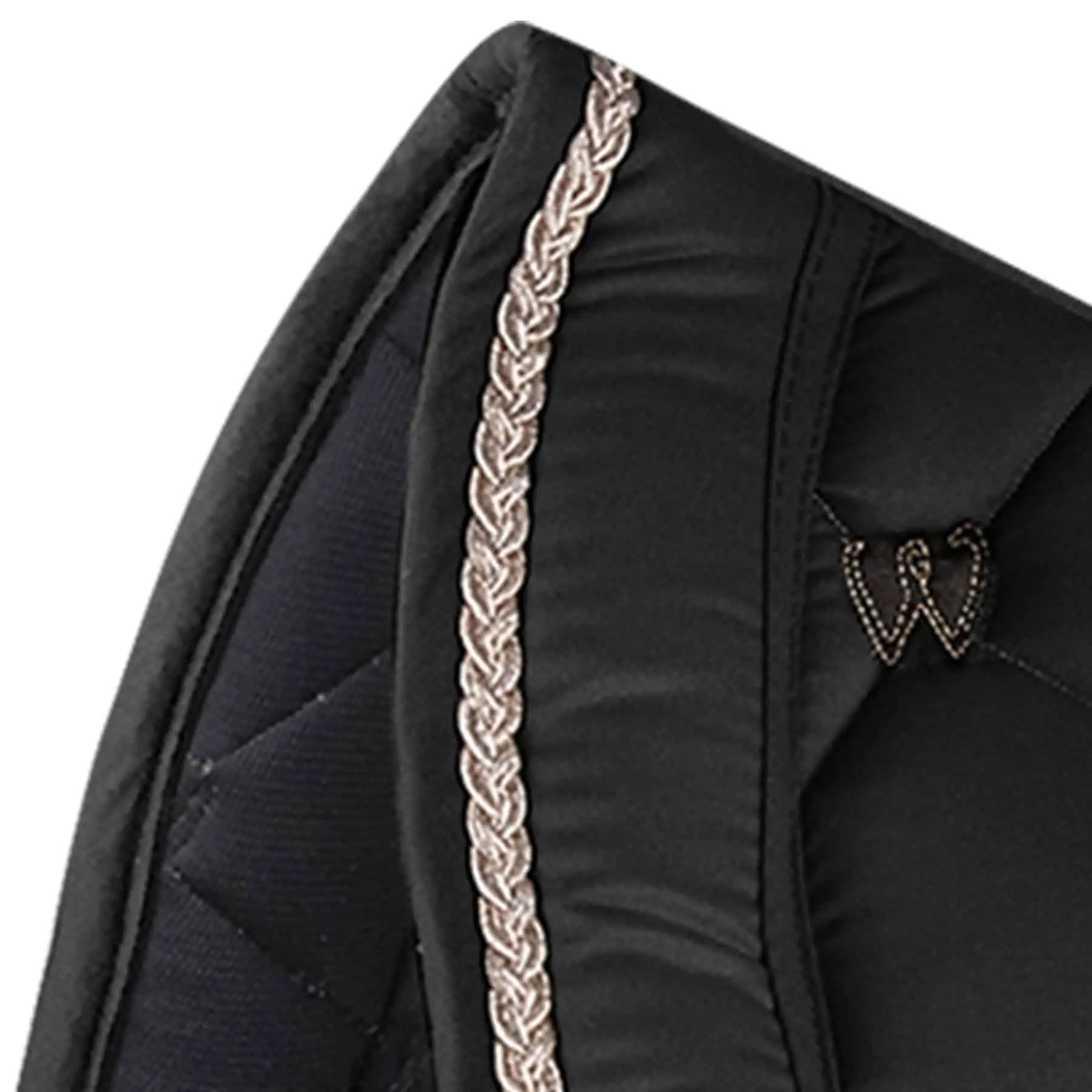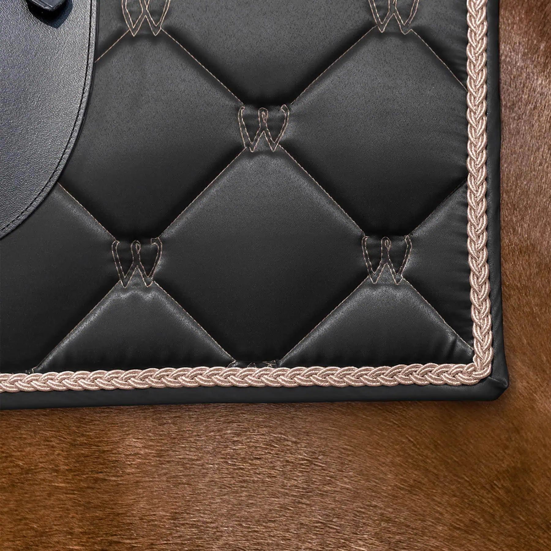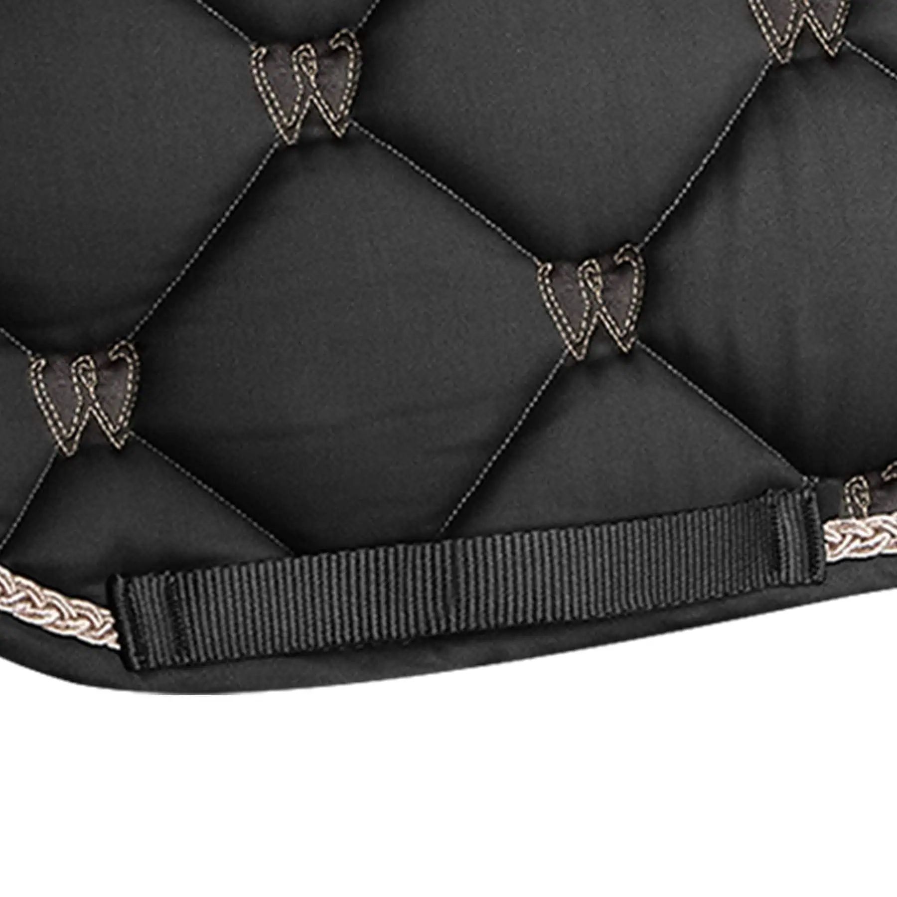 Elegant, high quality saddle pad in silk look. The functional underside ensures optimum breathability. 10 mm foam and 200 g/ m² padding ensure optimum pressure distribution.