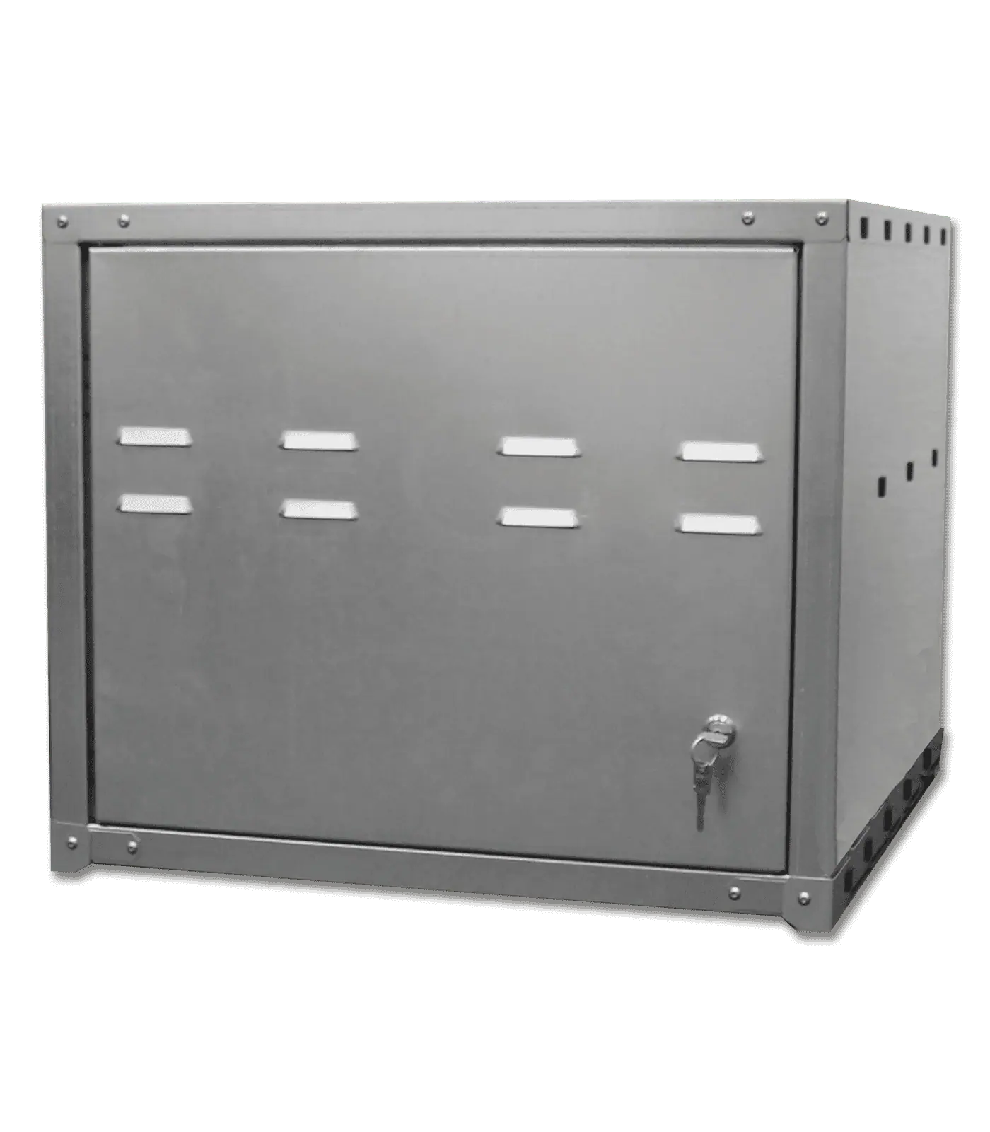 Cabinet made of Sendzimir-galvanized steel plate. Fits the large or small saddle locker for self-mounting. The cabinet is aligned with the assistance of 4 galvanised mounting corners.