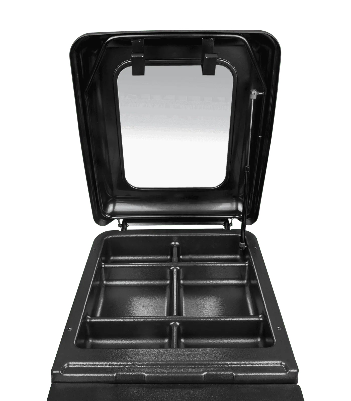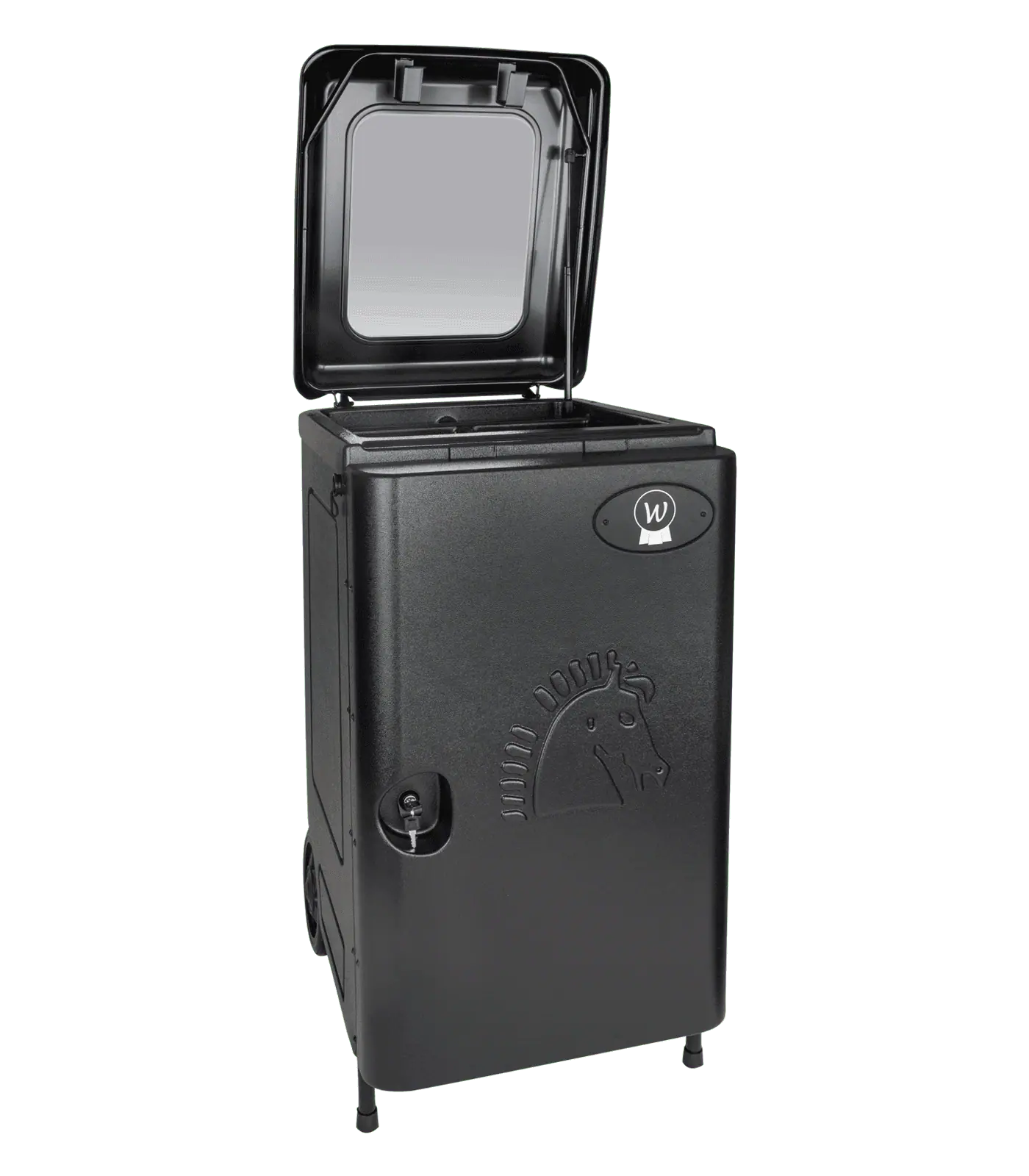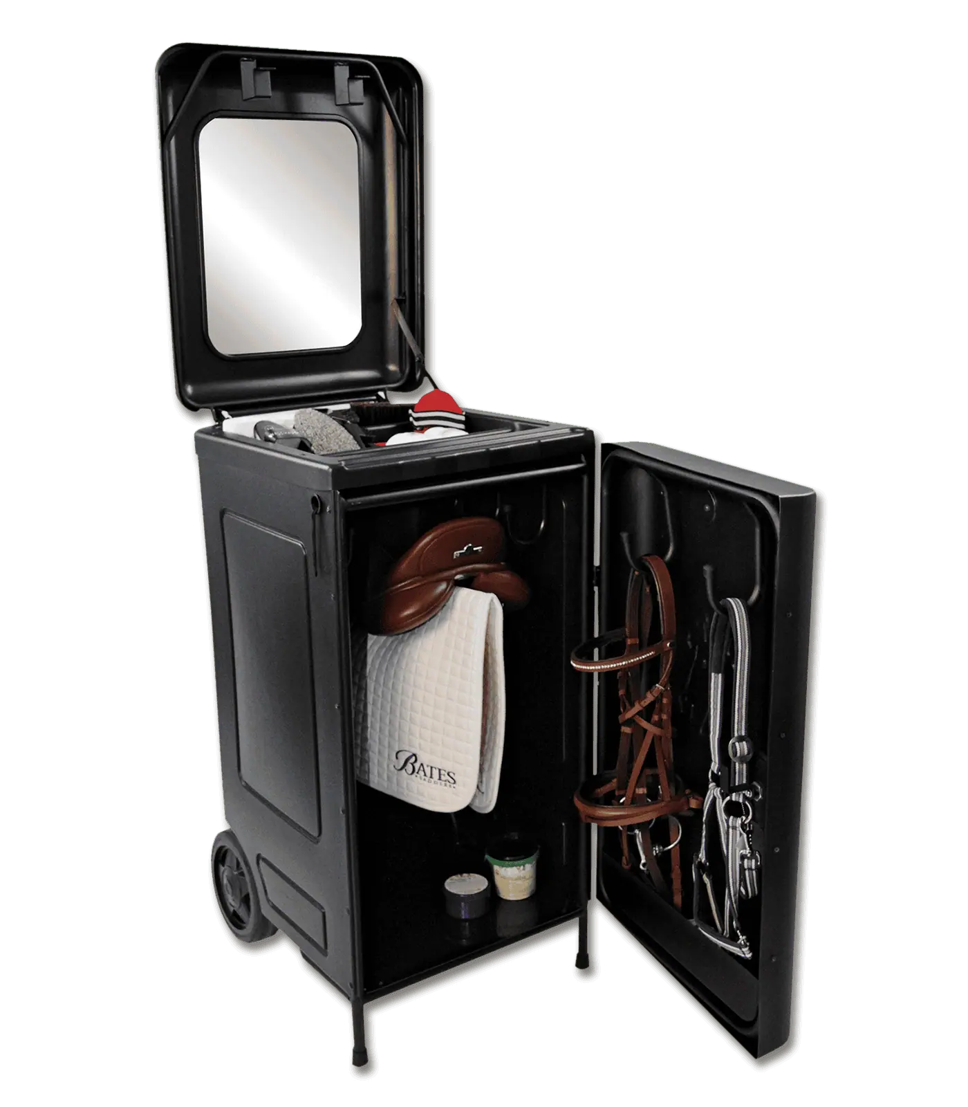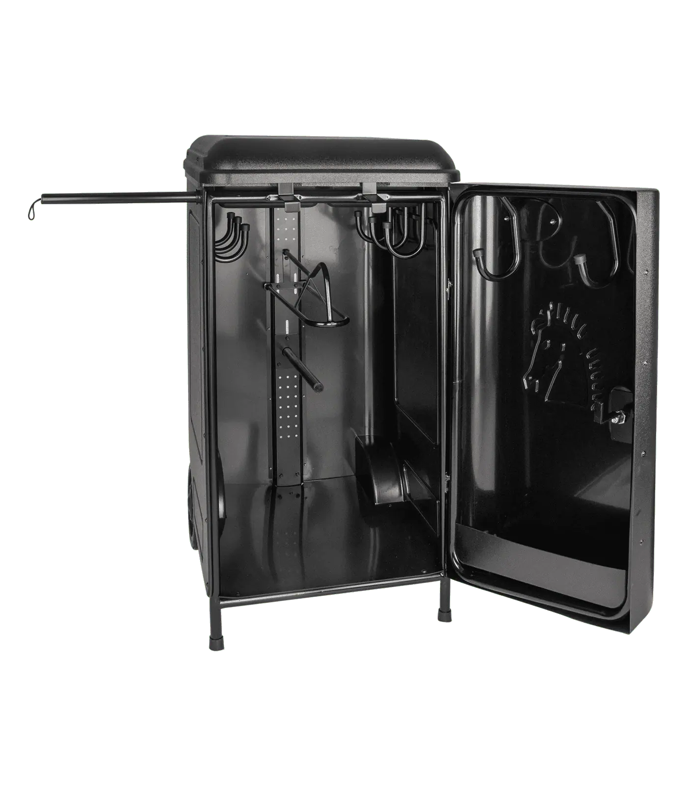 Lockable locker, includes a saddle and bridle holder. Easy to move and clean. Under the lid with its integrated mirror is a practical storage compartment for grooming kit and other small items.