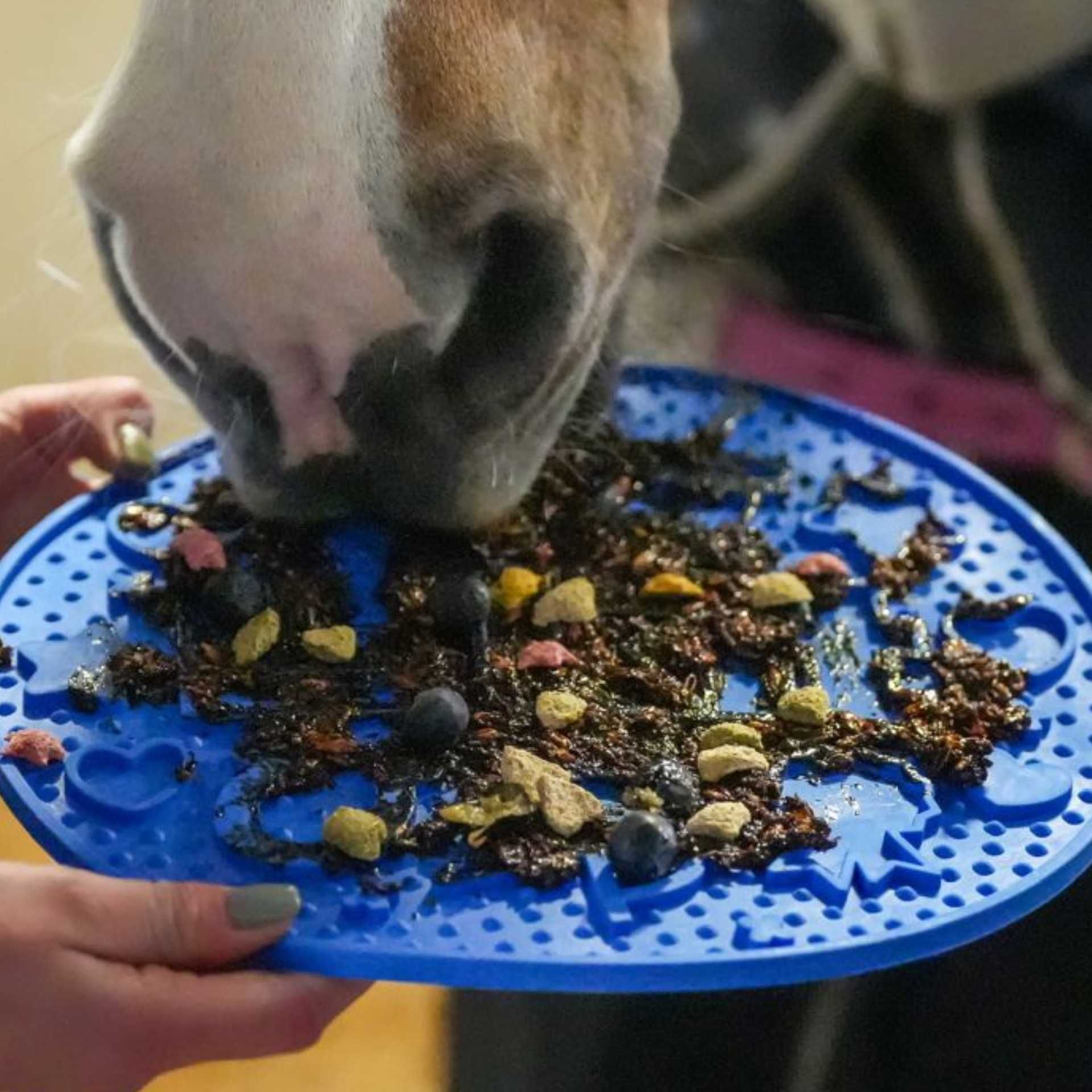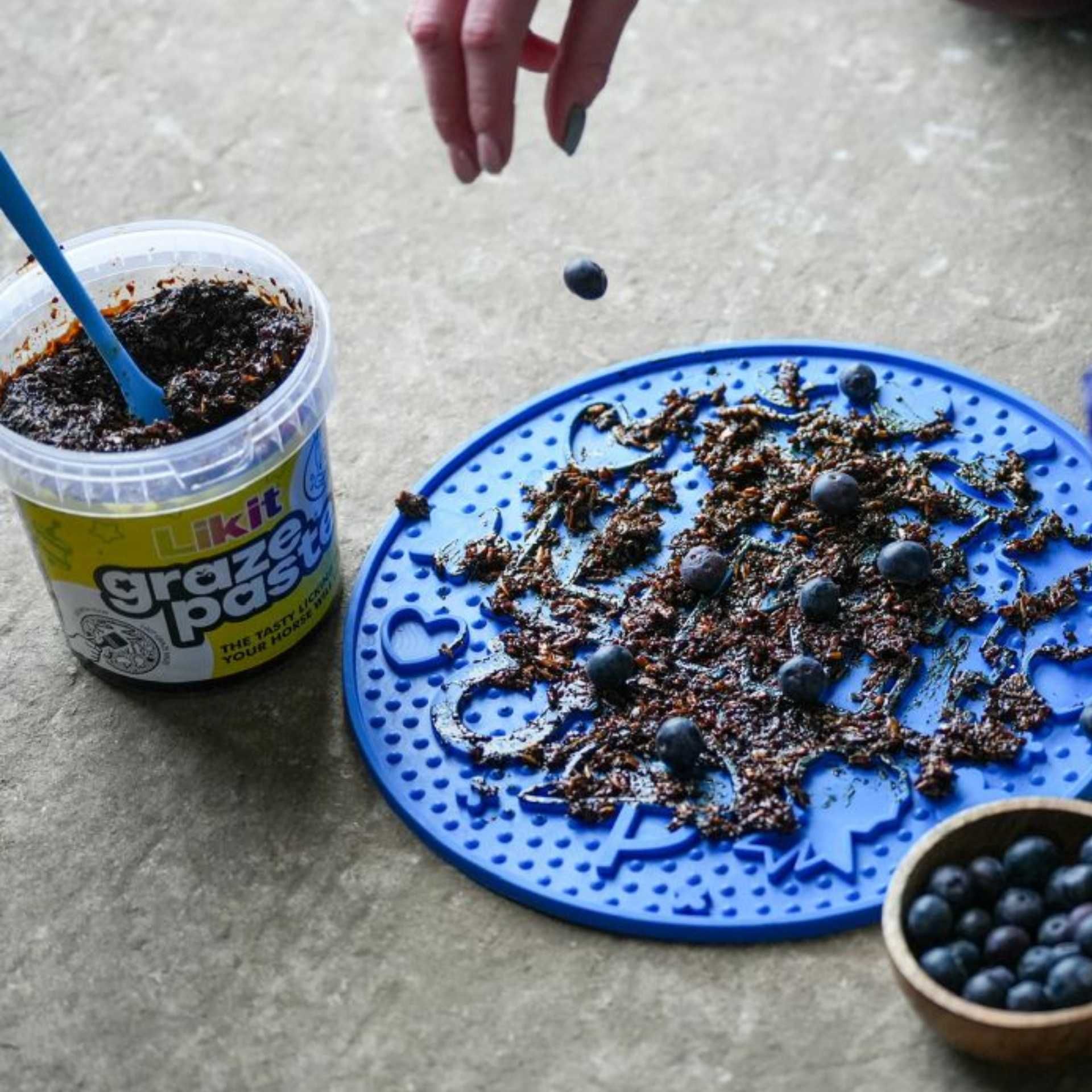 Simply spread with the Likit Graze Paste or mash and sprinkle on any feed or treats that you like, the possibilities for different recipes are endless. Alternatively, place in a feed bucket and use as a slow feeder.