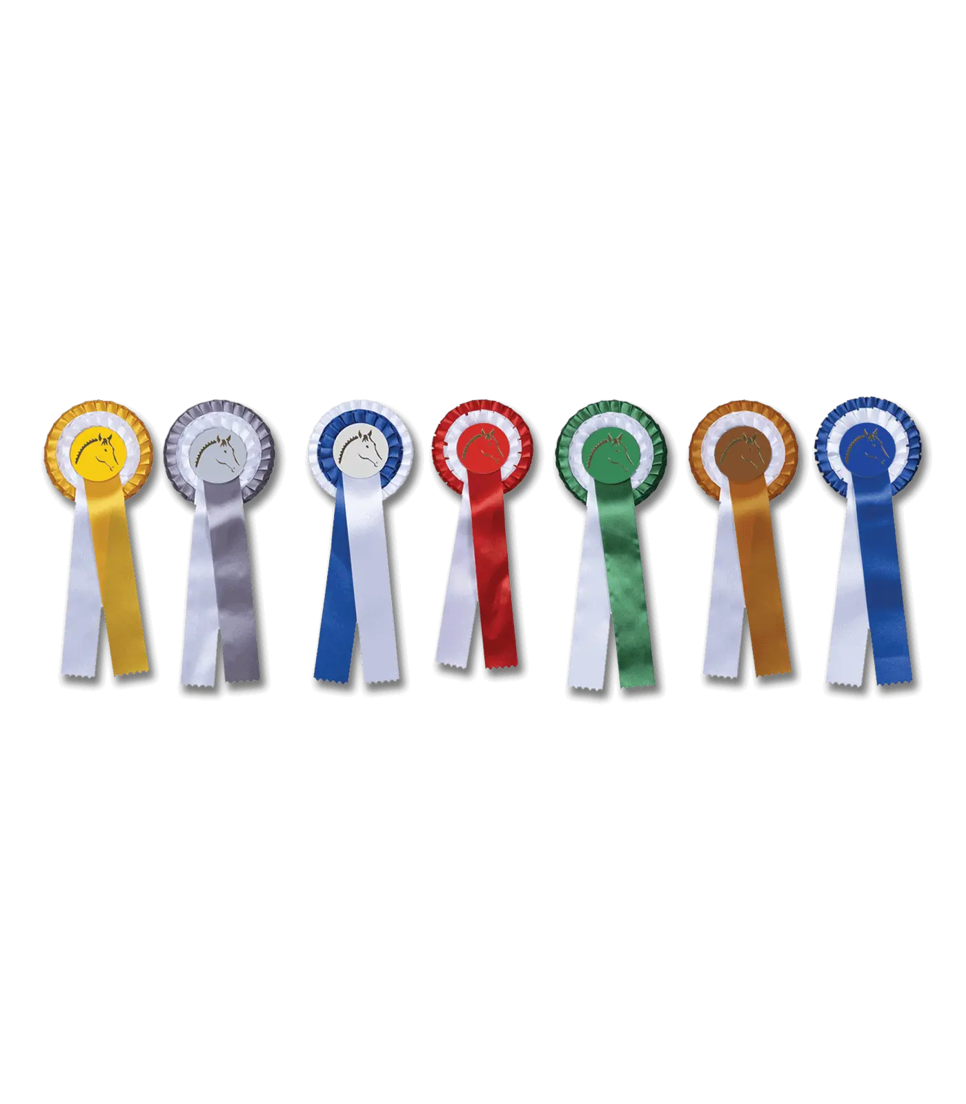 European finest quality! uniColoured double-layer rosette with unique horsehead application in the centre.