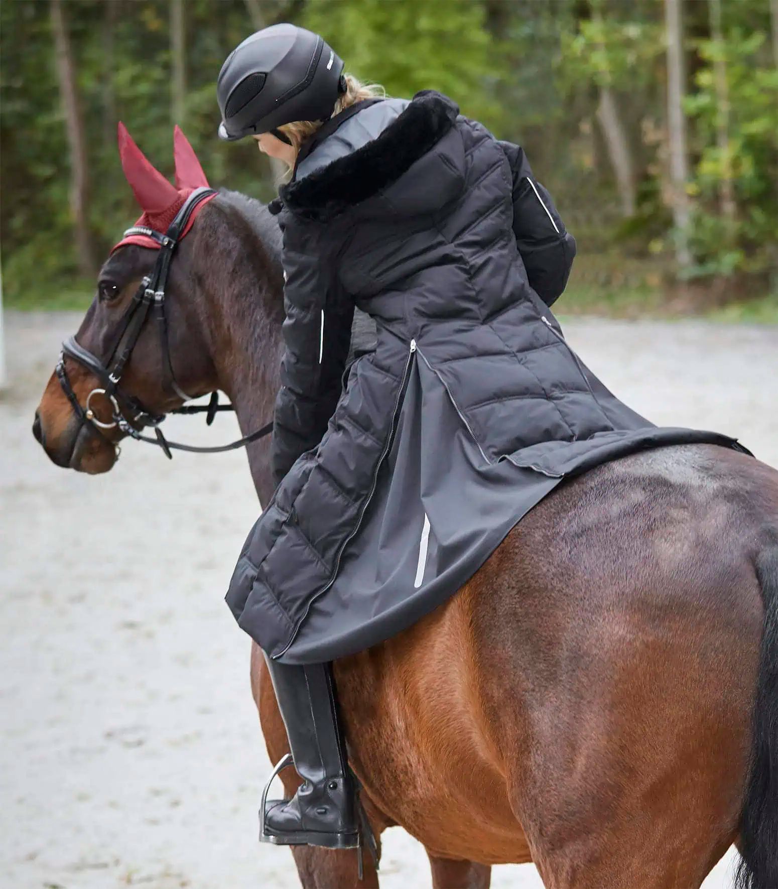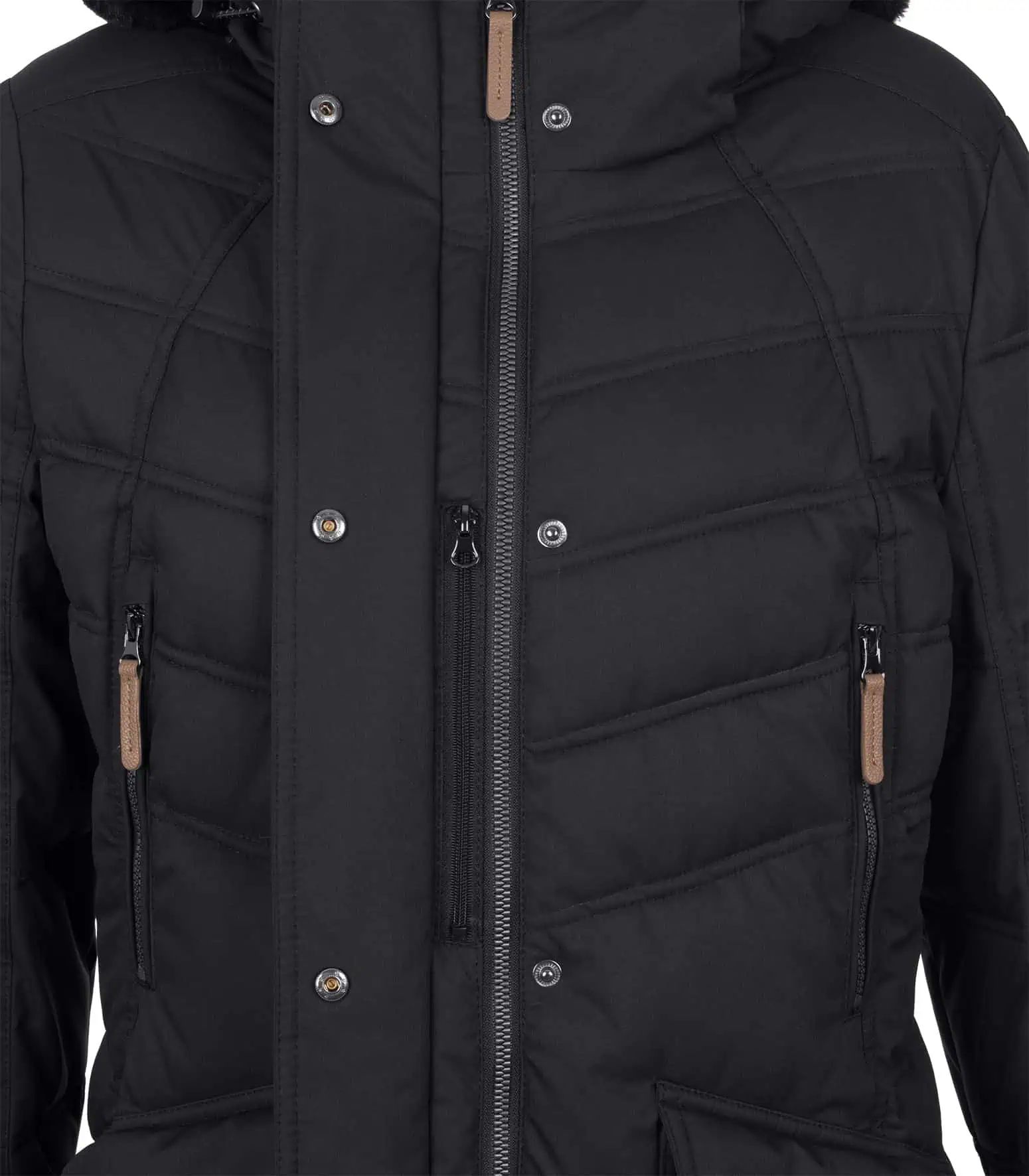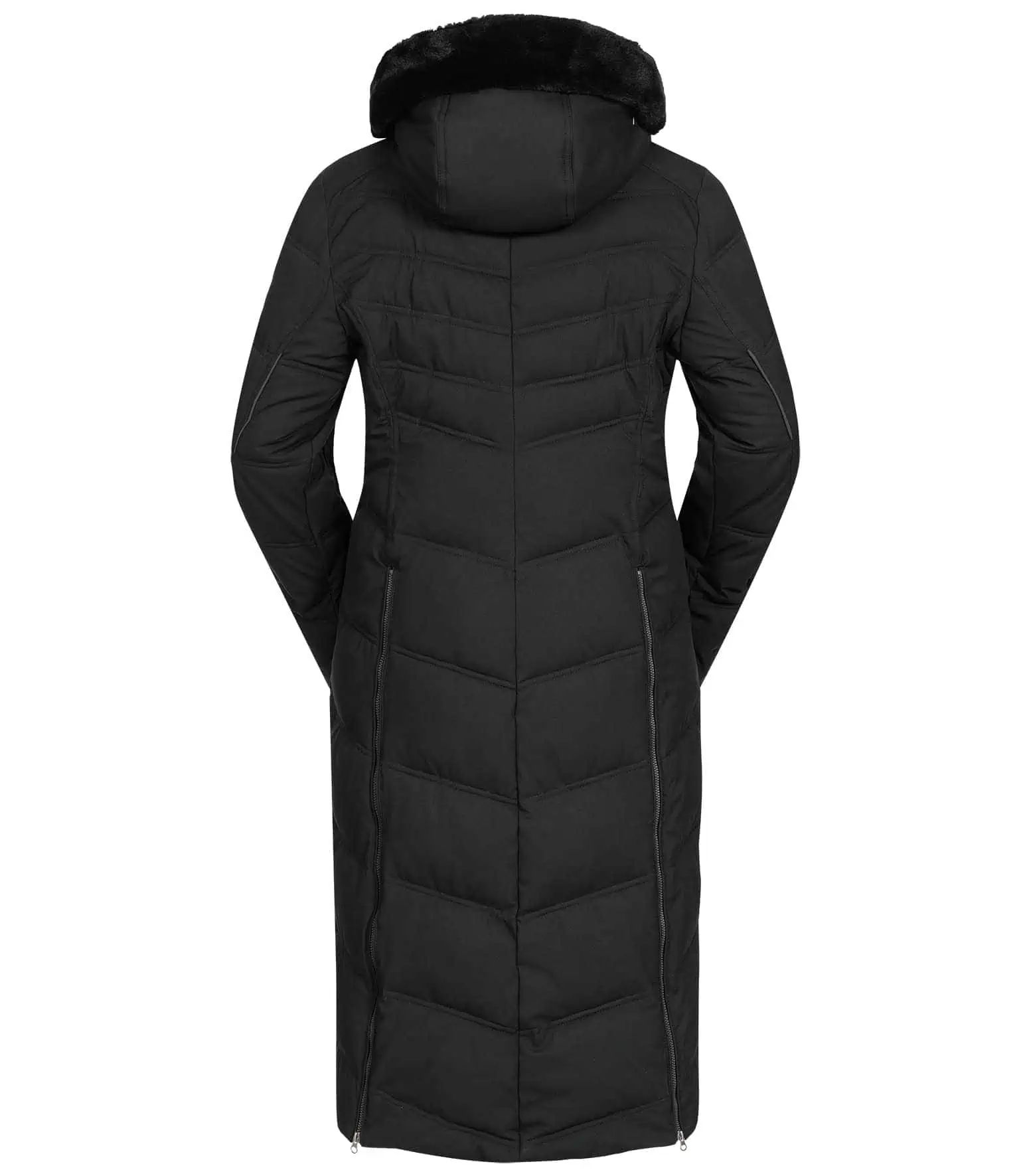 Long, quilted coat with downtype filling, ideal for cold winter days